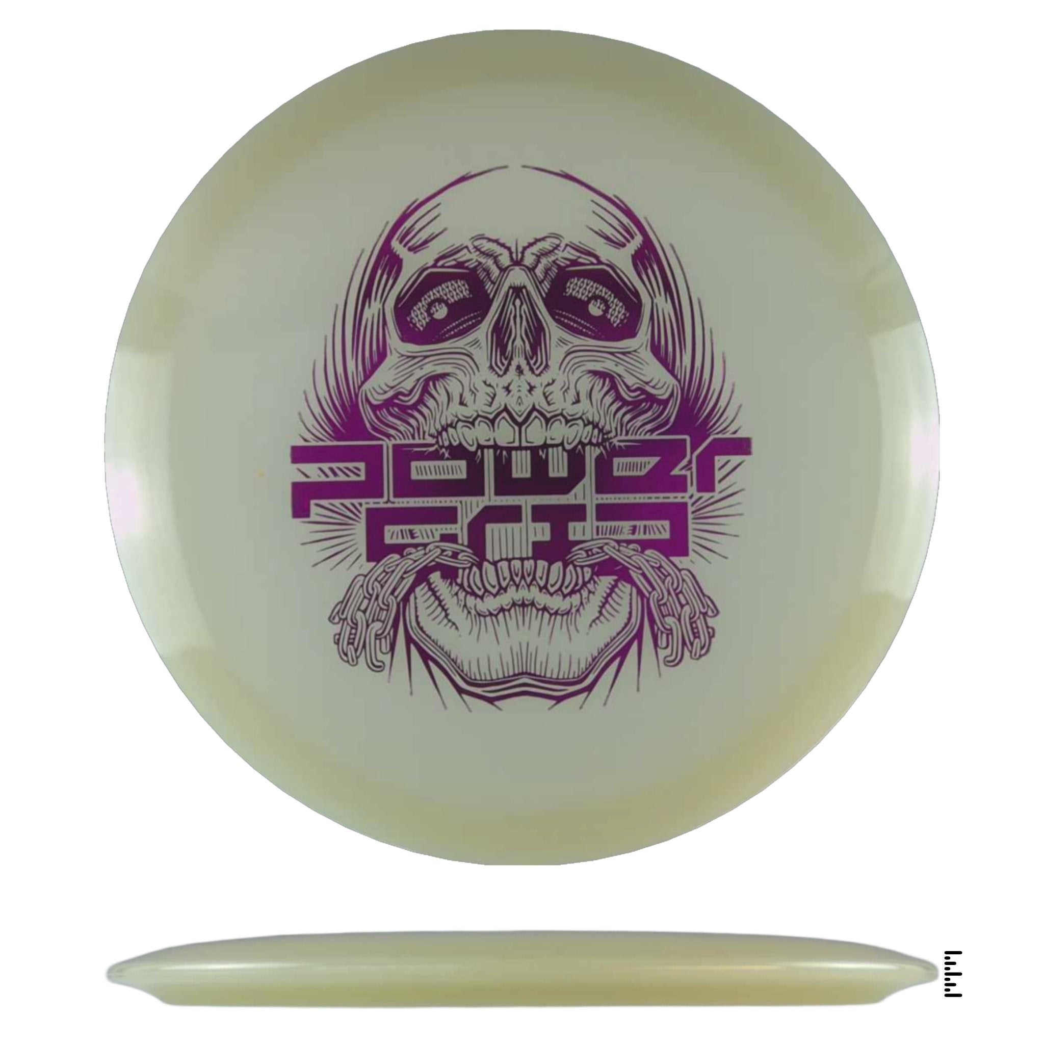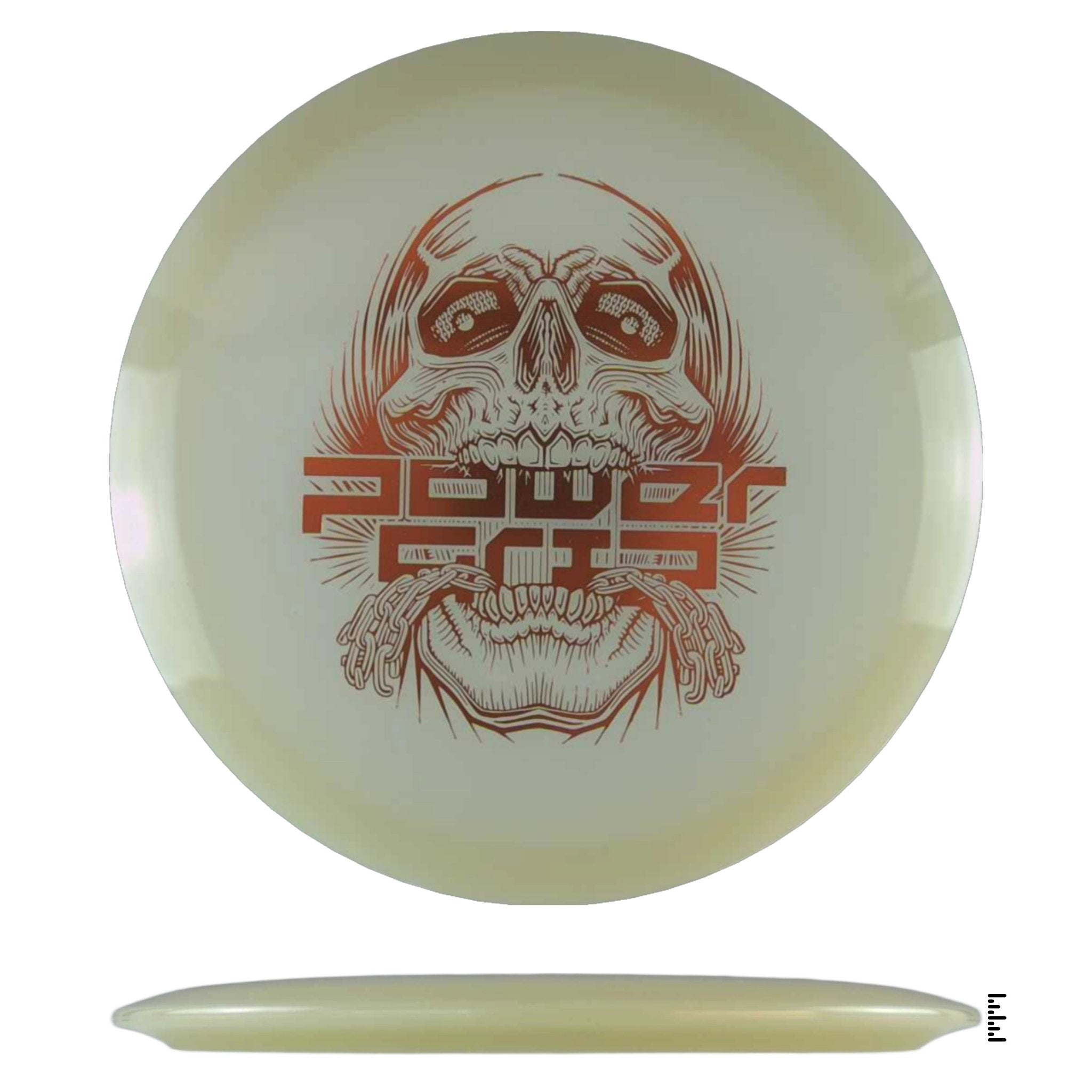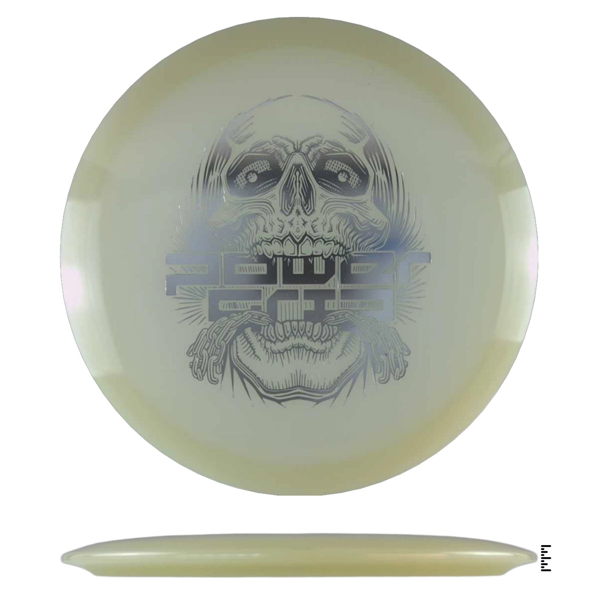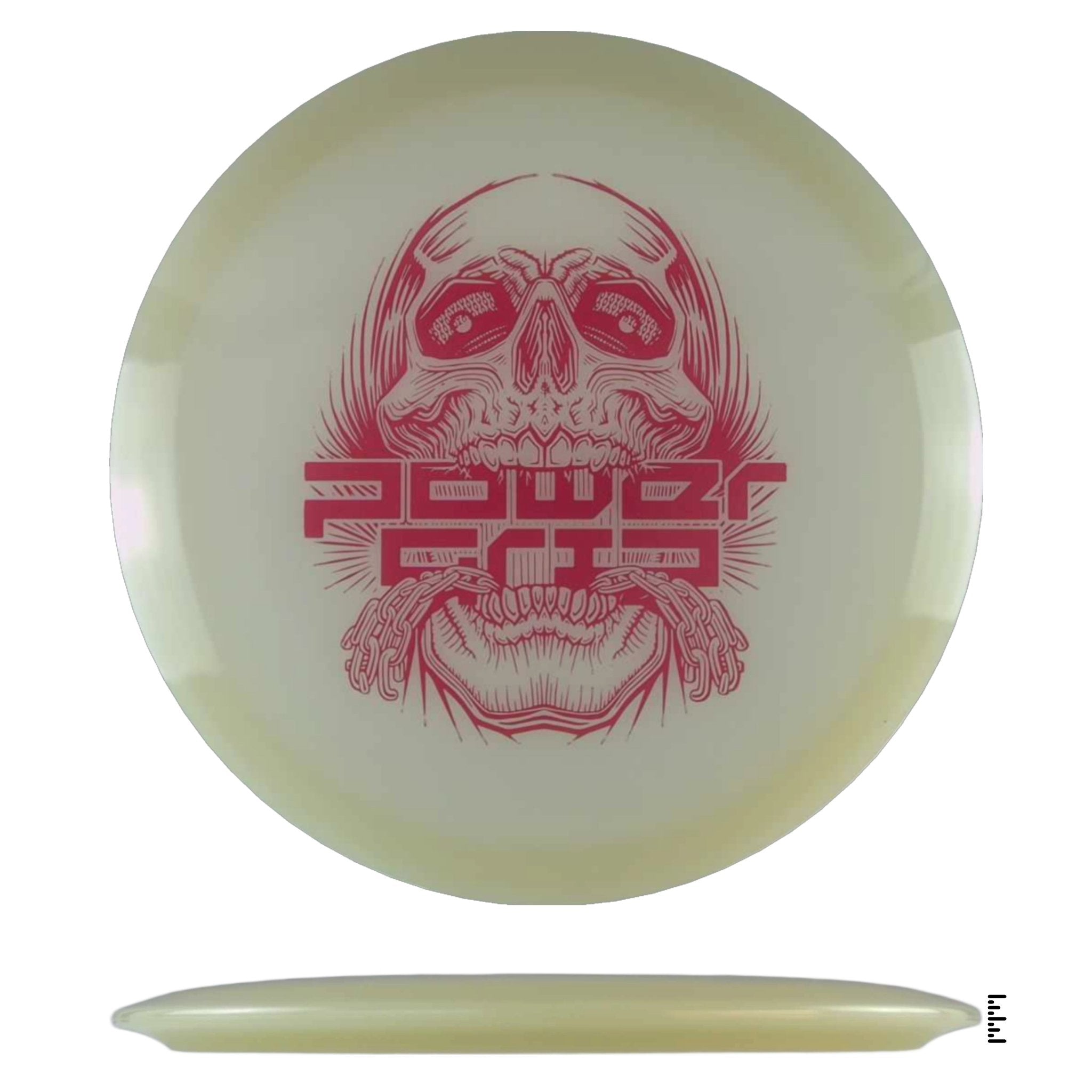 We took our popular skull stamp by disc golf artist Skeet Scienski to the brand new 5x Glow Streak by Climo Disc Golf. 5x Glow plastic is named after Ken Climo's five USDGC titles and really brings the energy to the glow technology. These charge up quickly, shine brightly, and have great staying power.