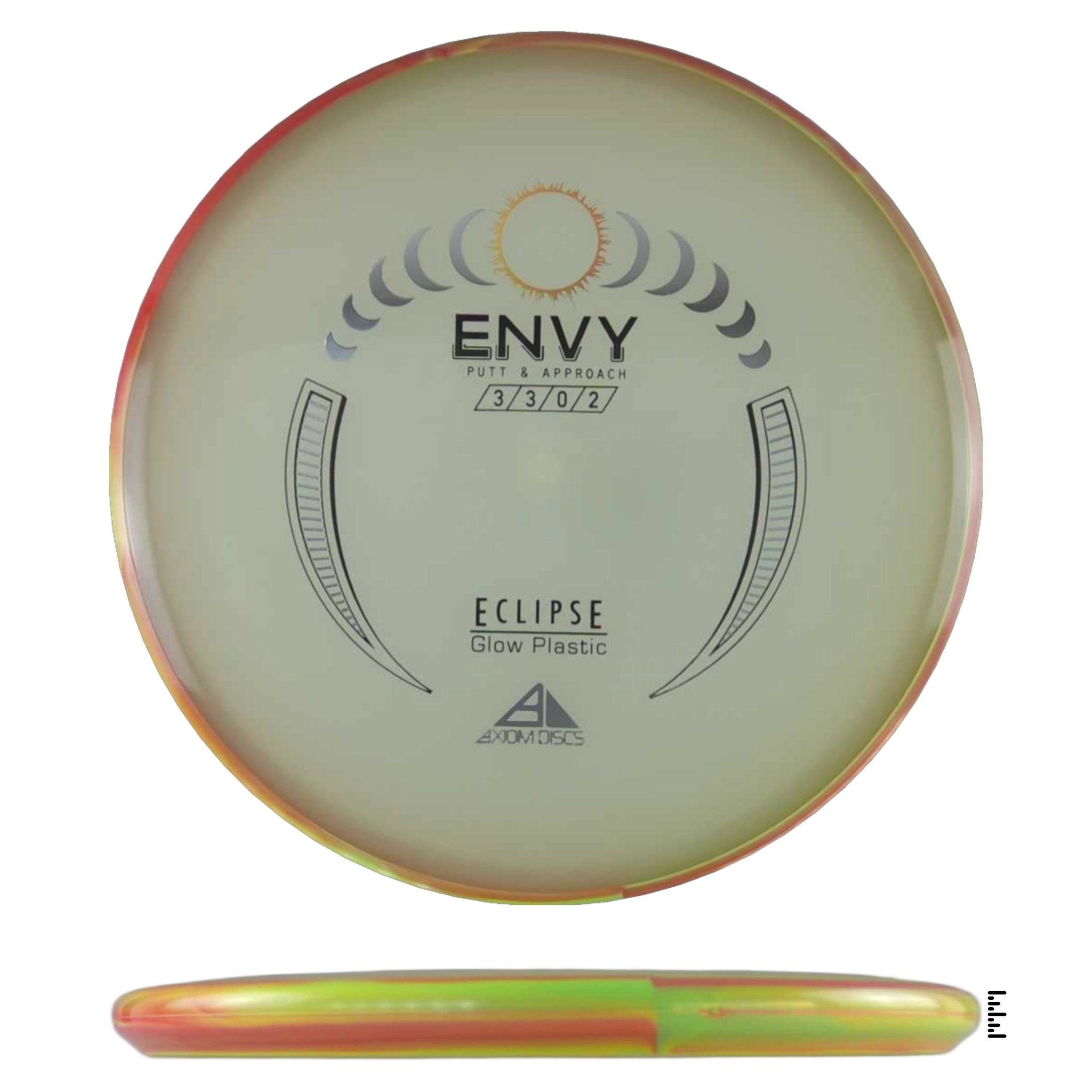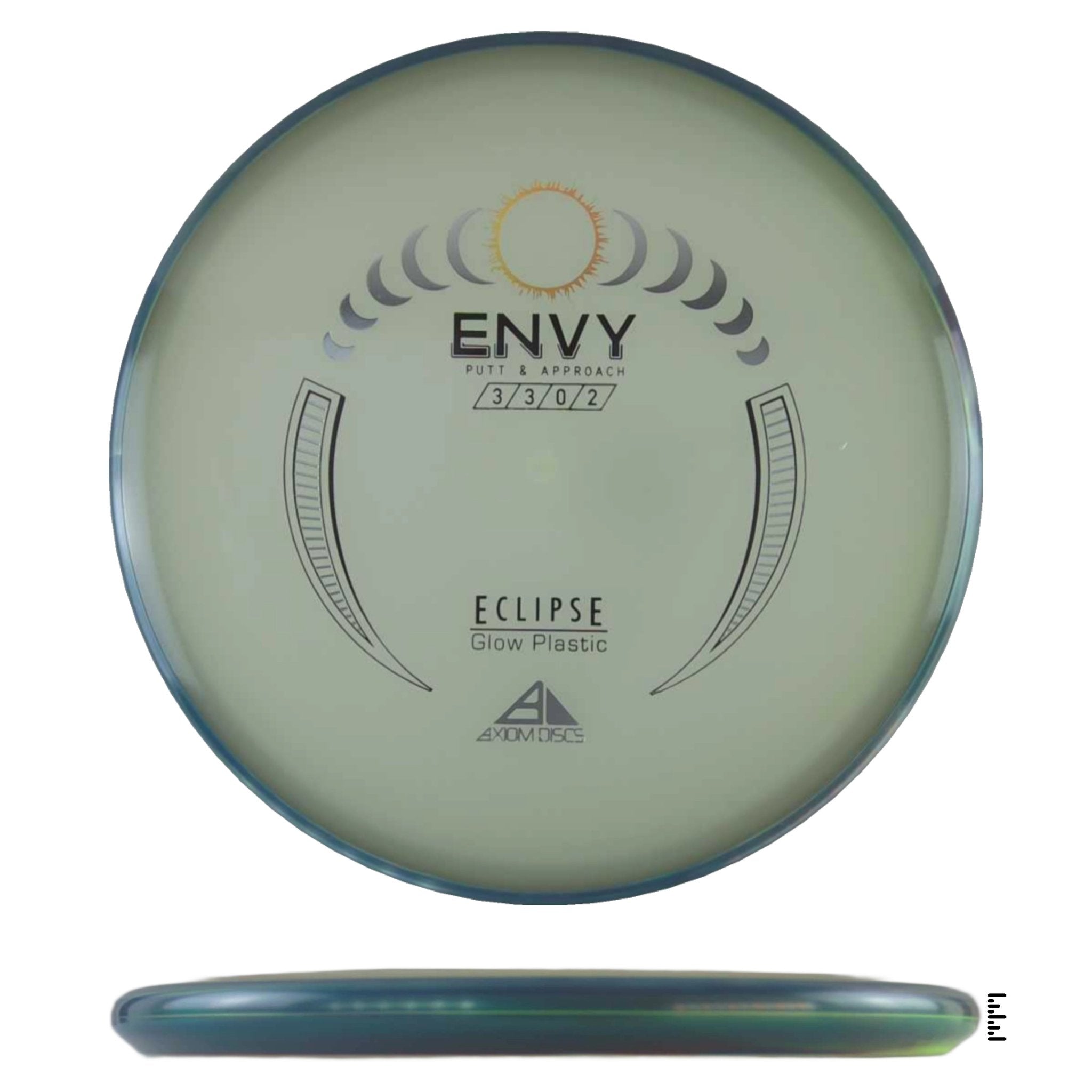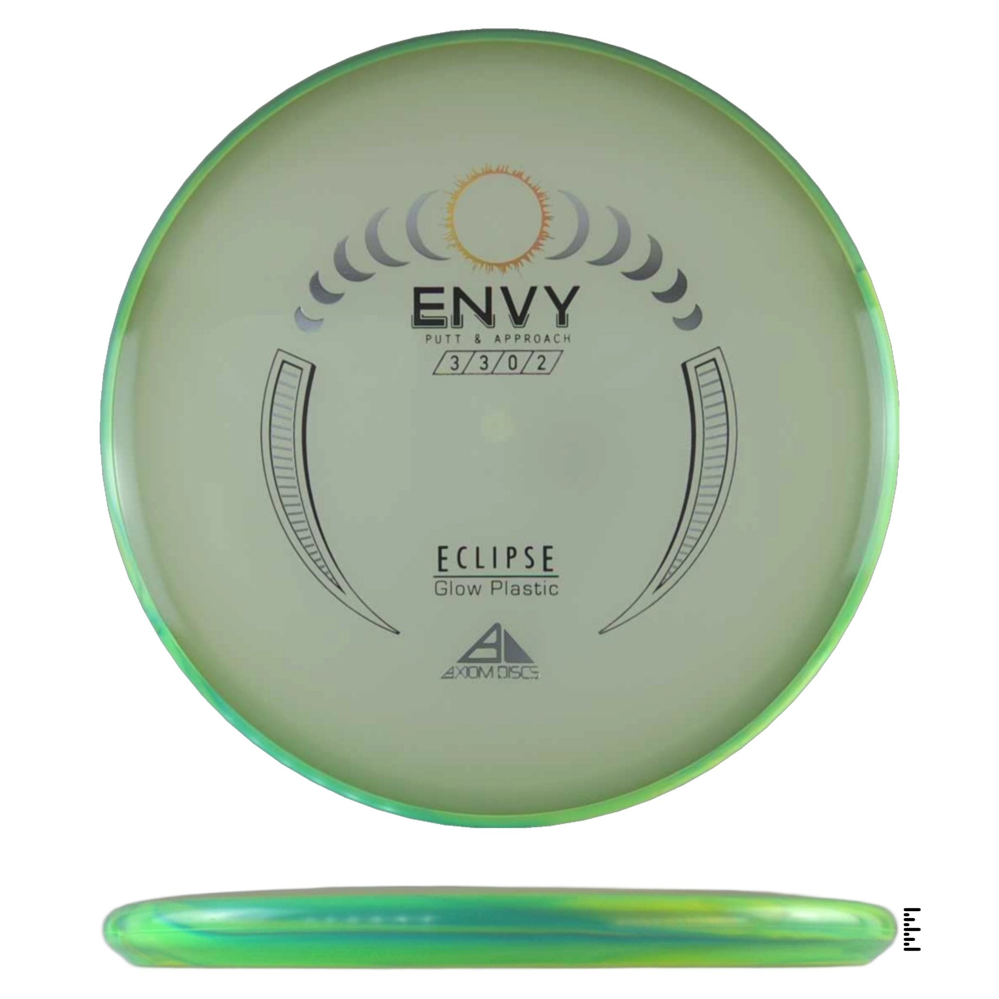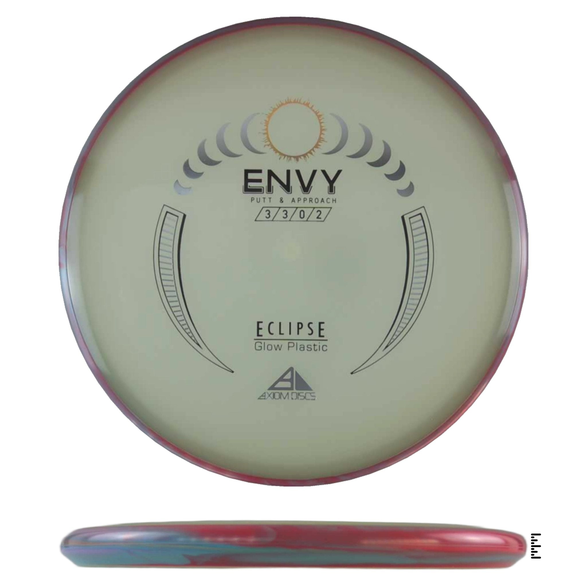 The Envy is a slightly overstable putt and approach disc. The Envy has a smooth modern feel that fits in the hand perfectly, lending confidence for both putt and approach duties. The Envy exhibits reliable high-speed stability and a minimal fade. With a slightly lower profile and cruising speed than the Ion and Anode class, the Envy is a uniquely 'lid-like' stable putter.