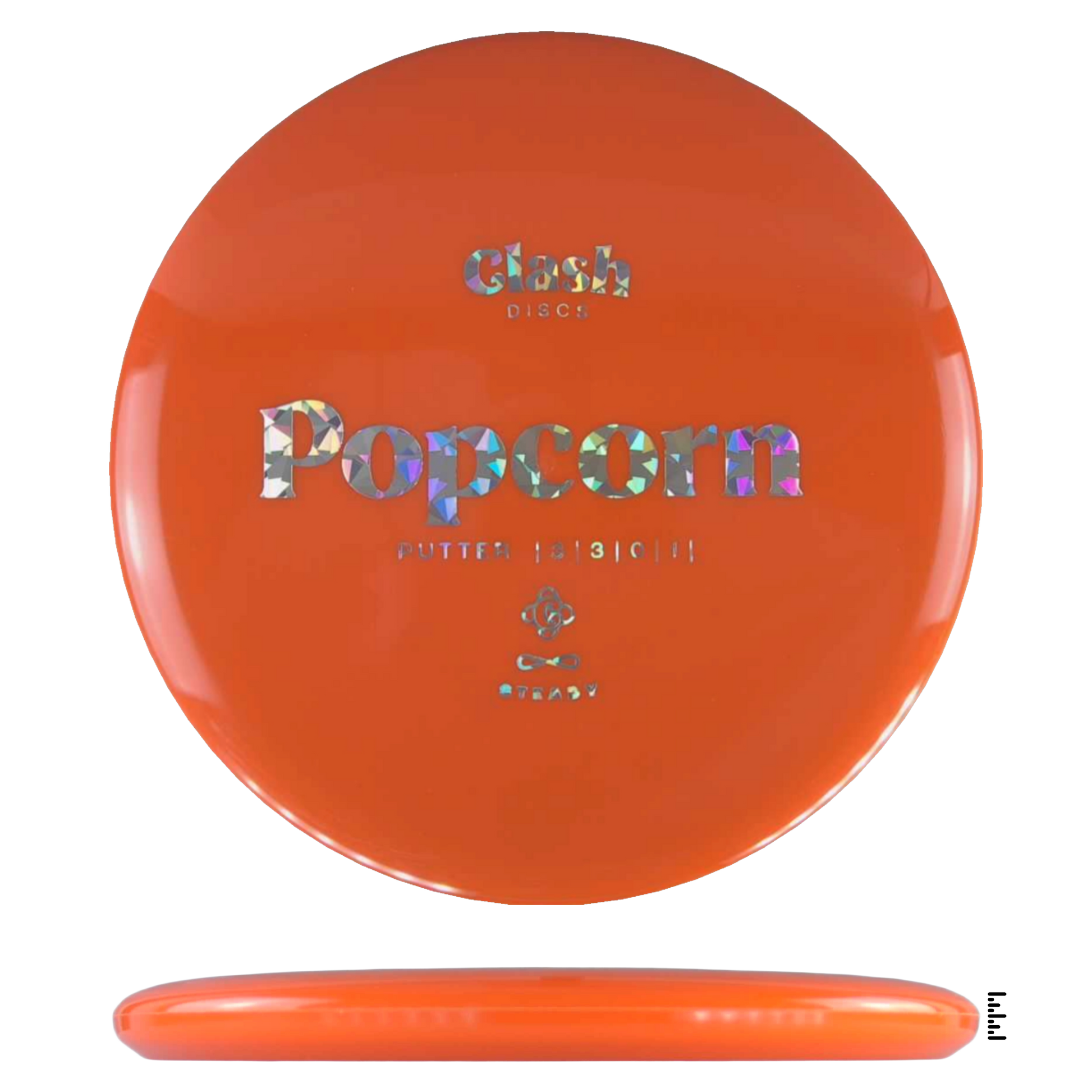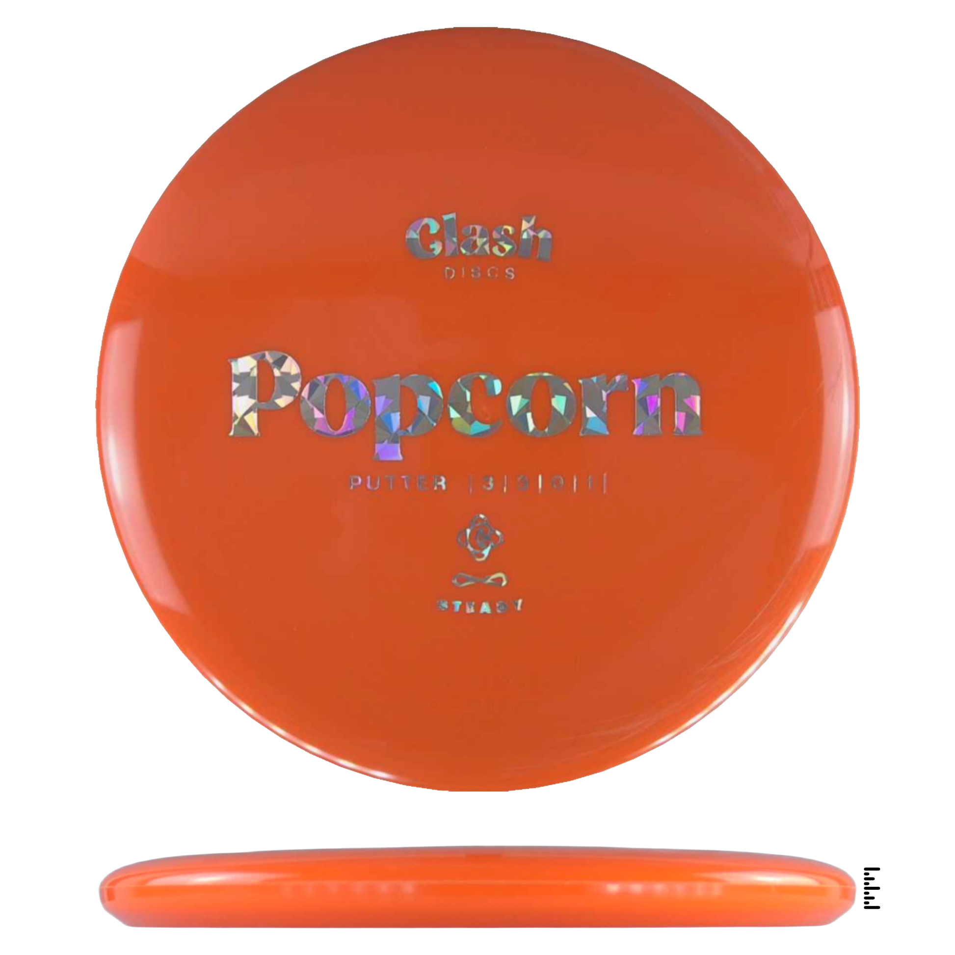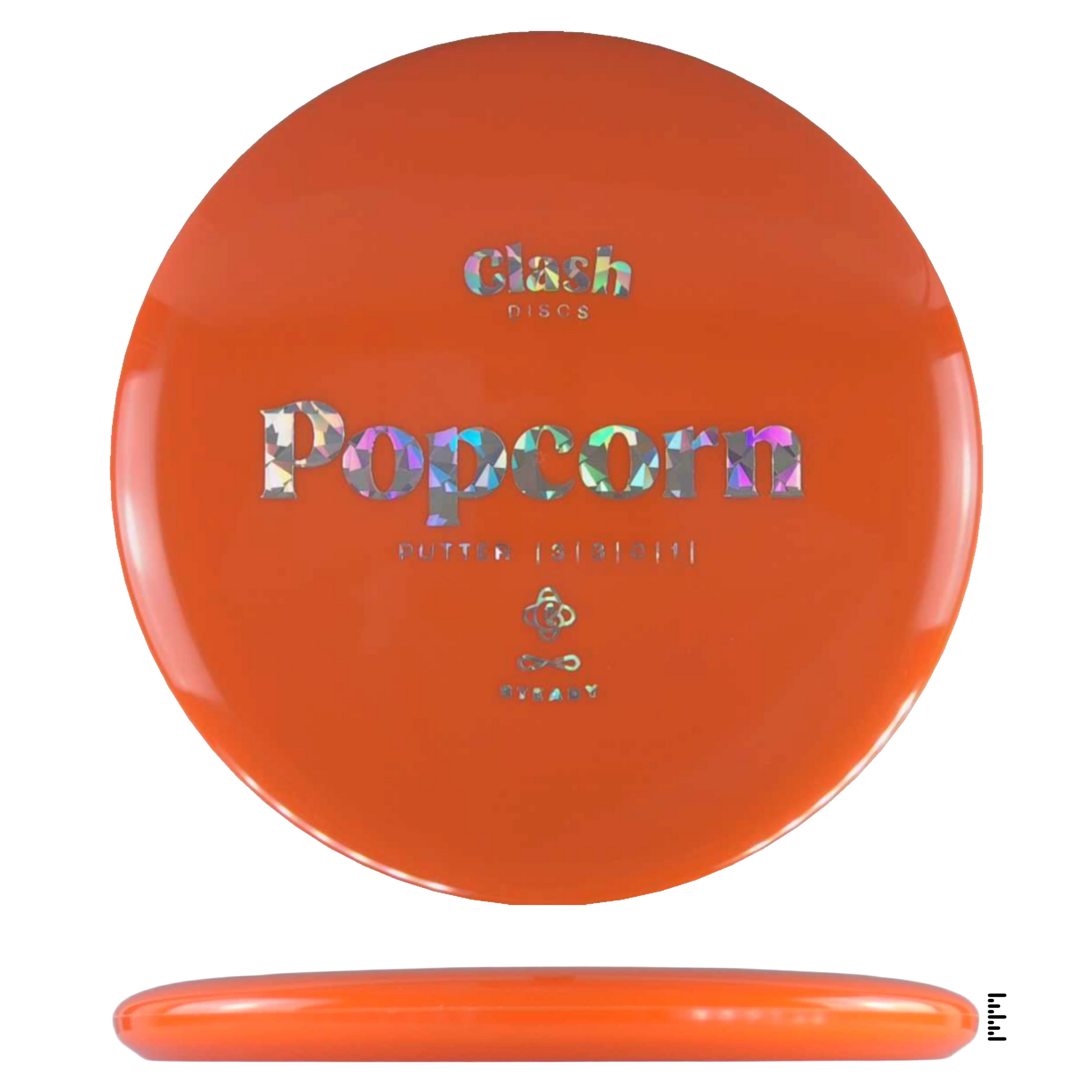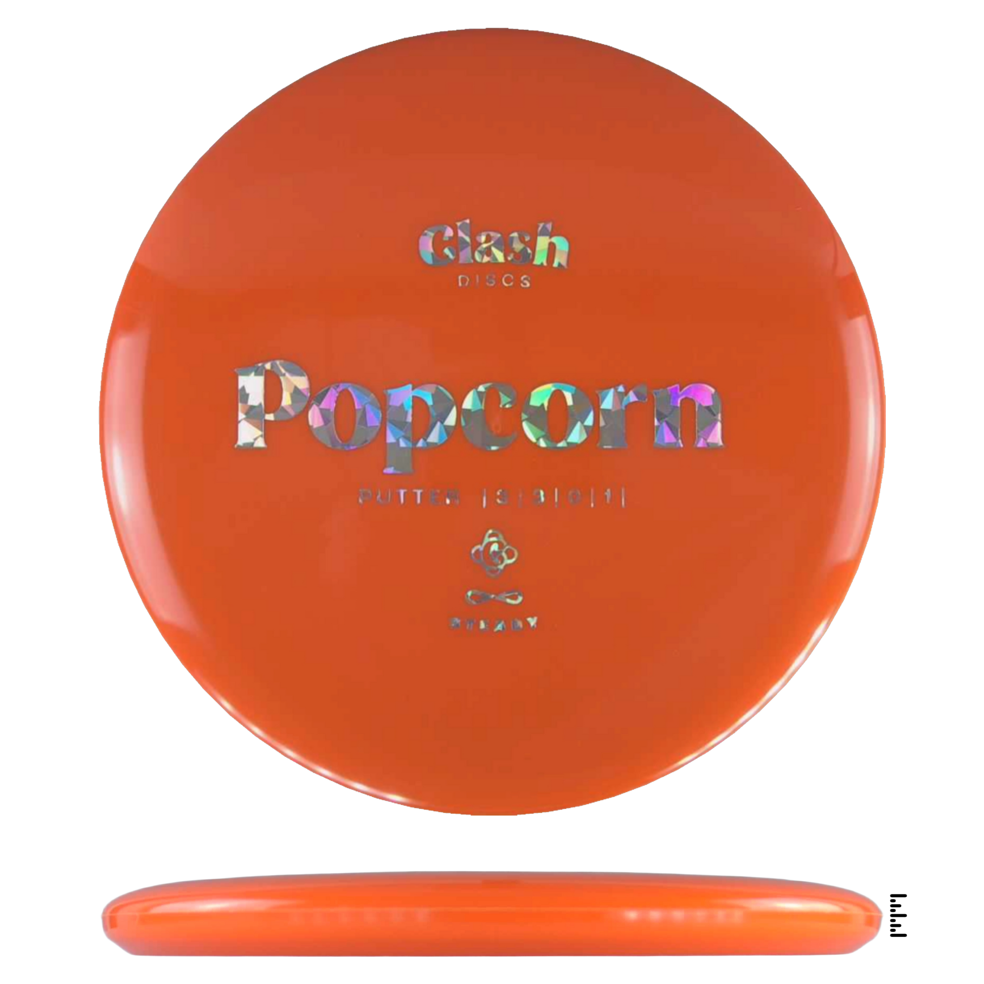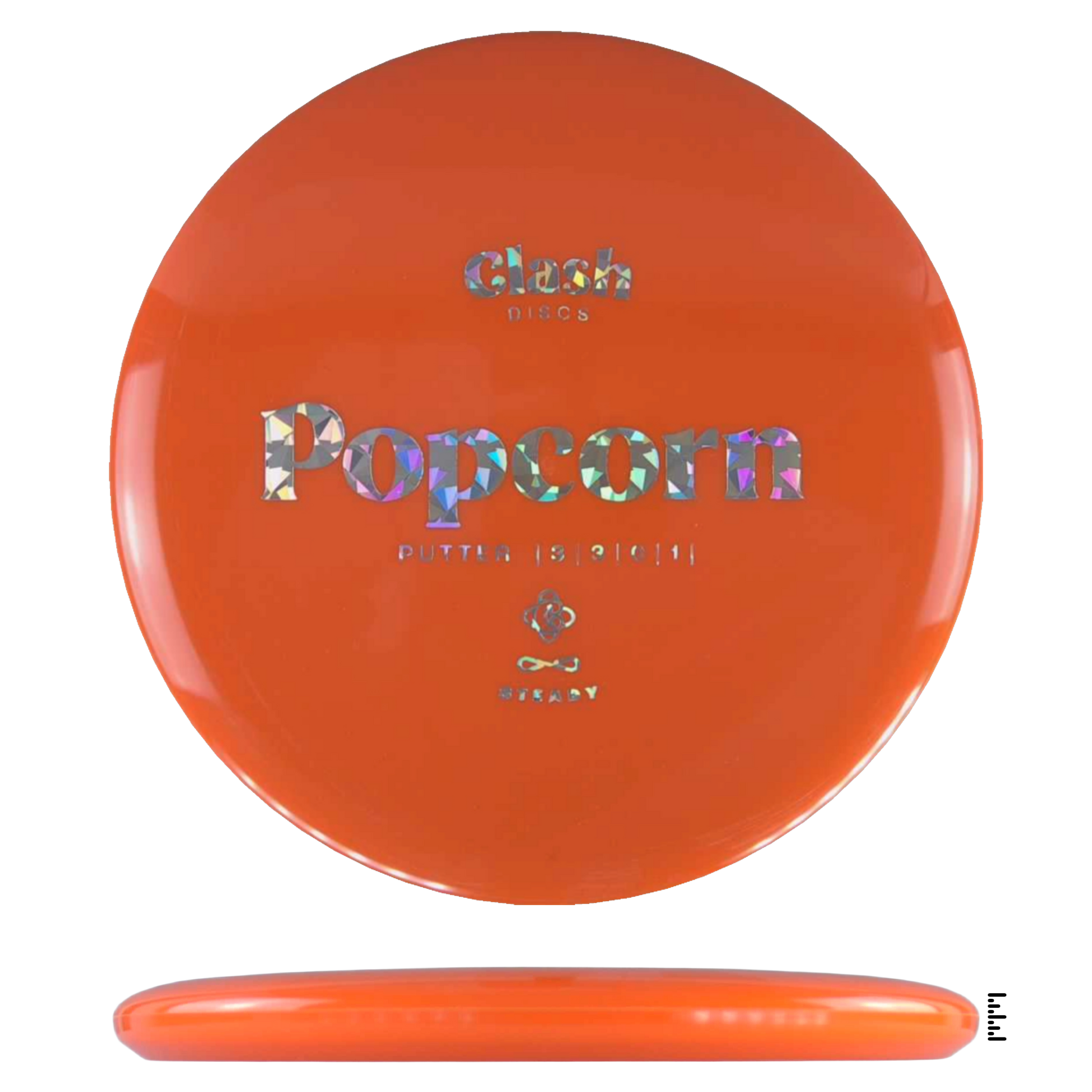 Popcorn is a straight flyer with good glide. It features a comfortable grip and a medium deep rim with minimum fade for the best putting experience. Popcorn will hold any line on your approach shots.