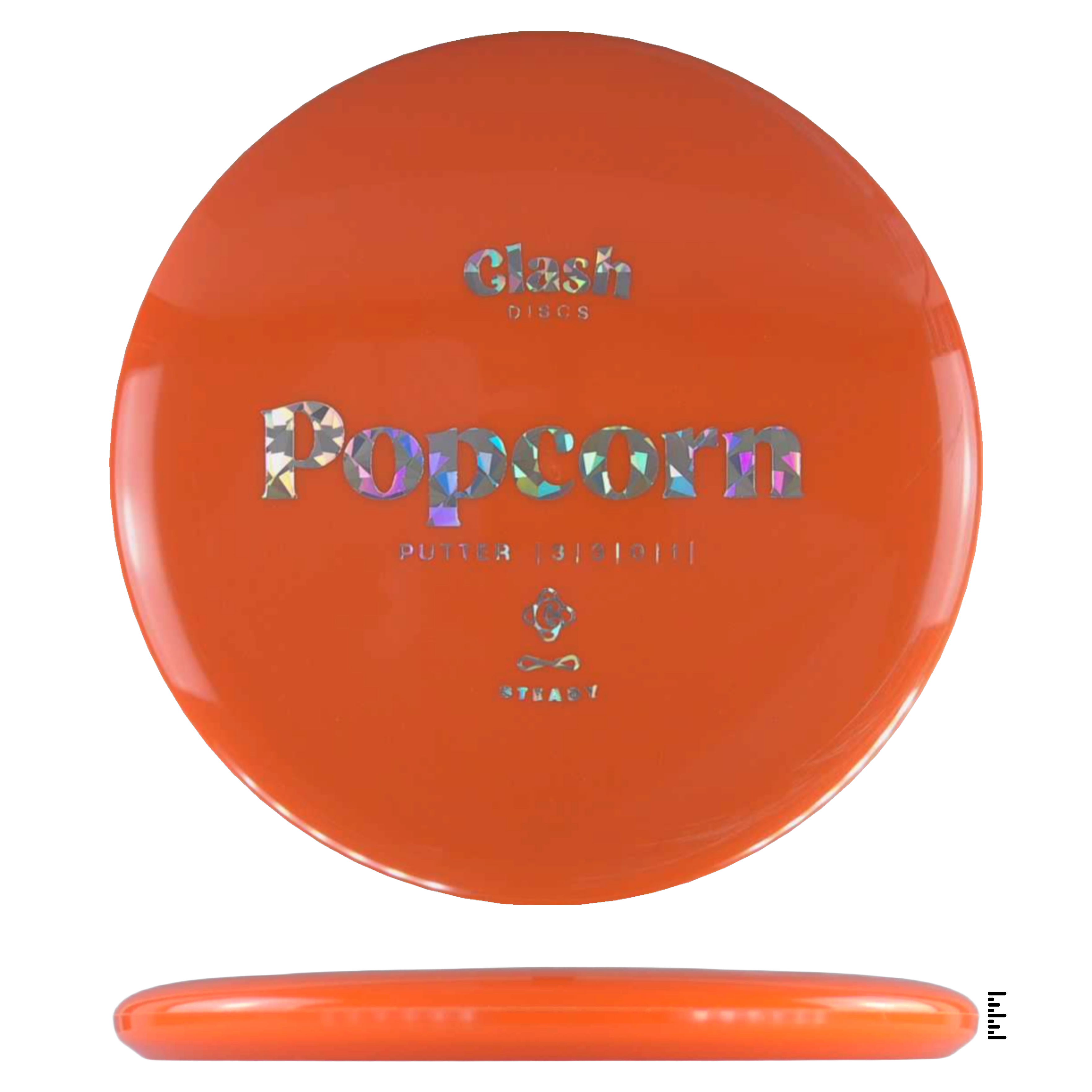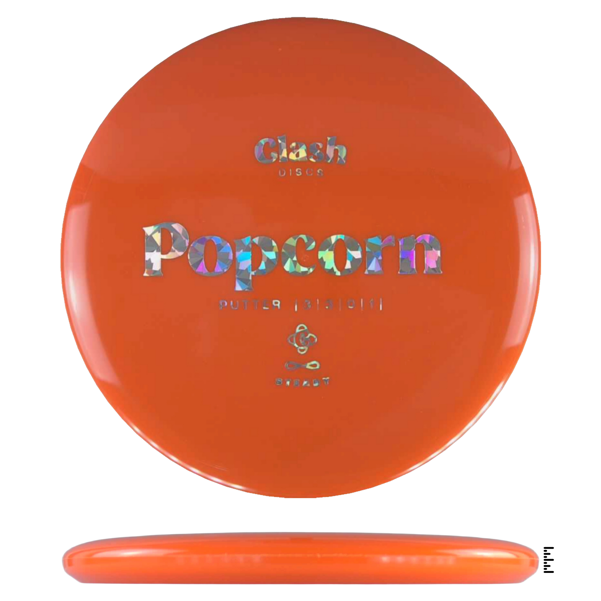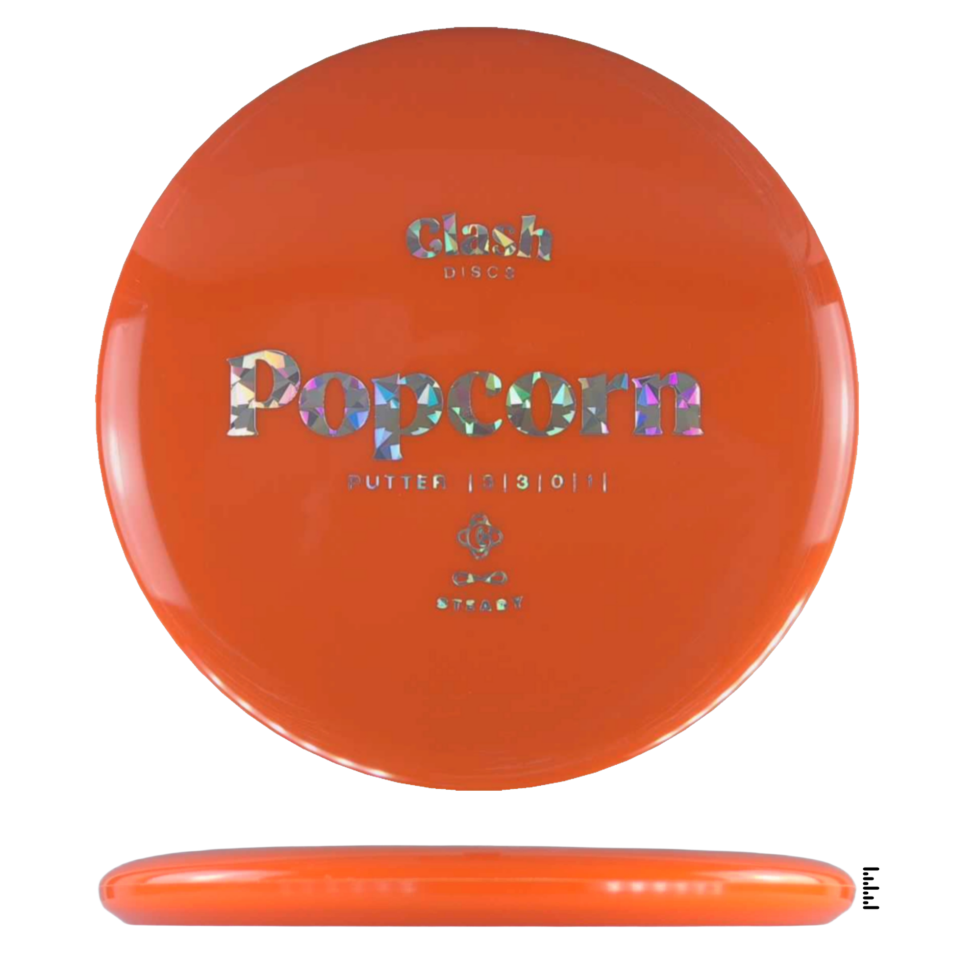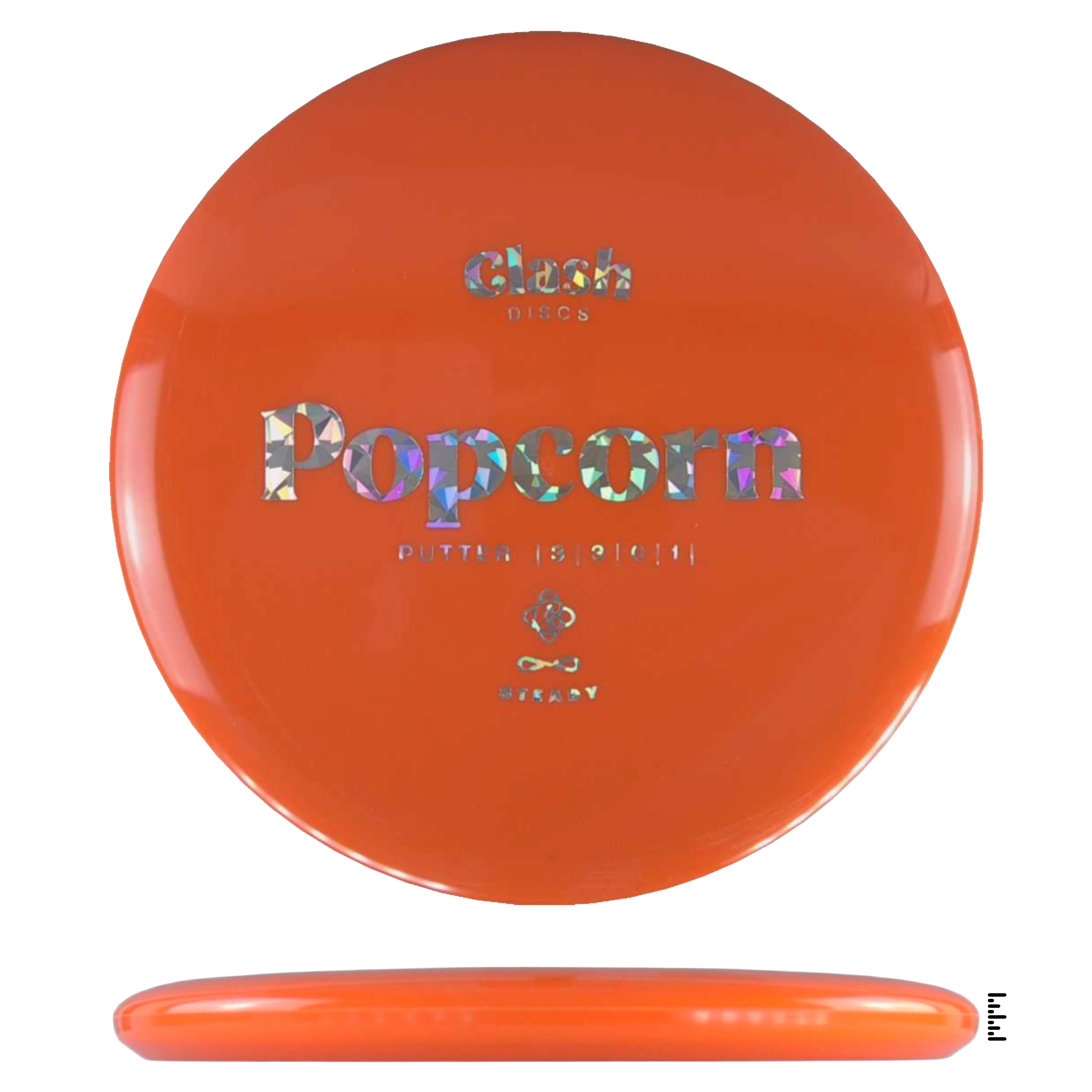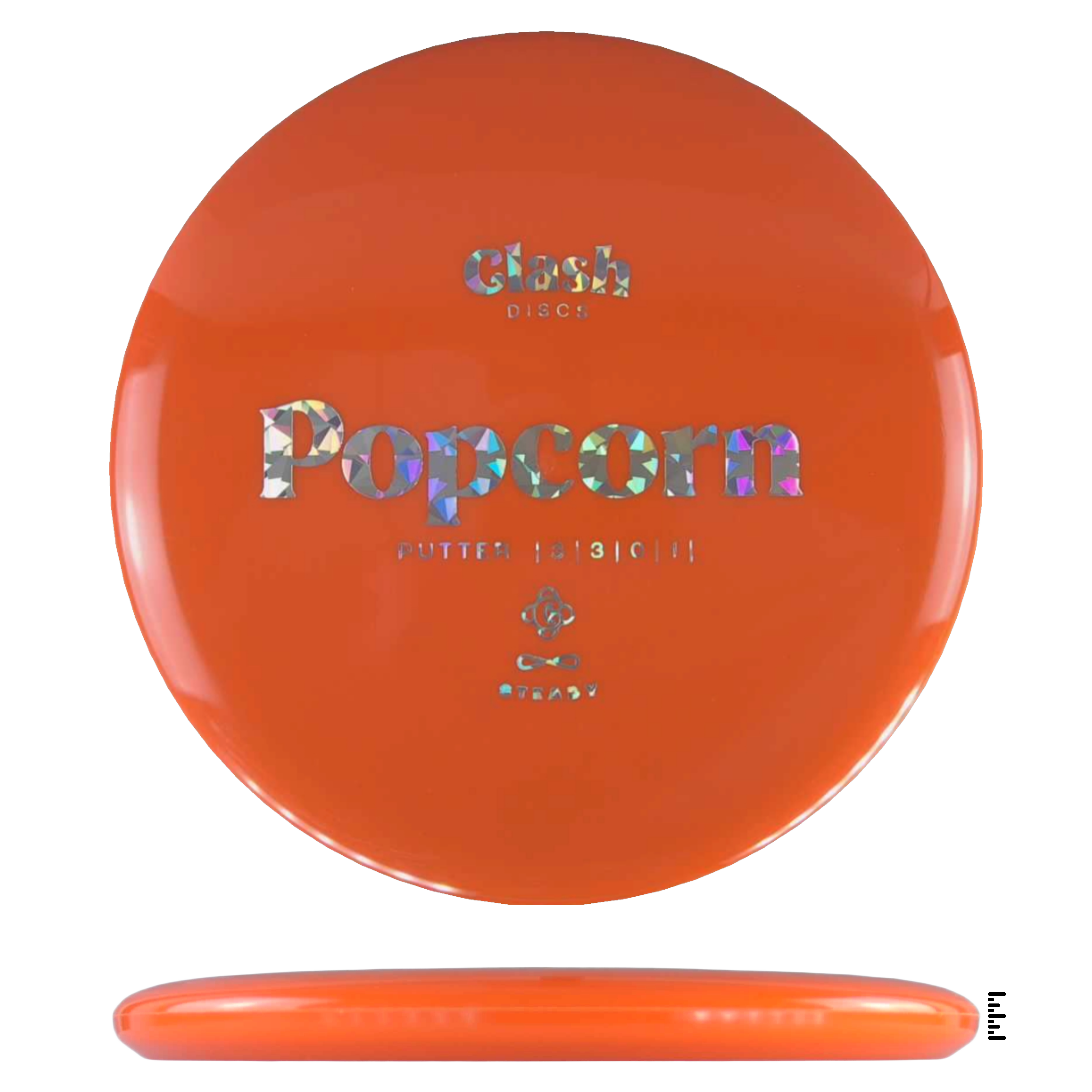 Popcorn is a straight flyer with good glide. It features a comfortable grip and a medium deep rim with minimum fade for the best putting experience. Popcorn will hold any line on your approach shots.