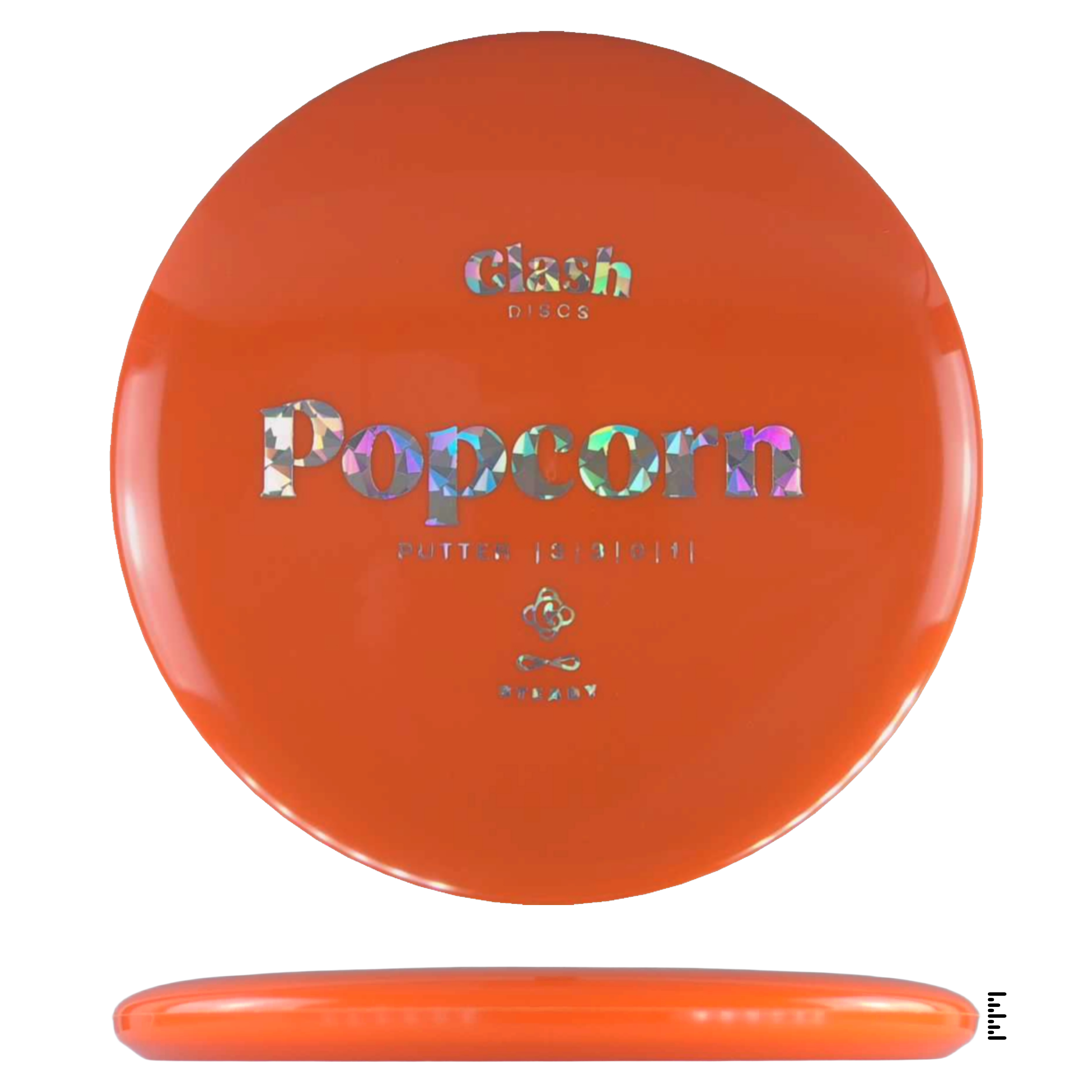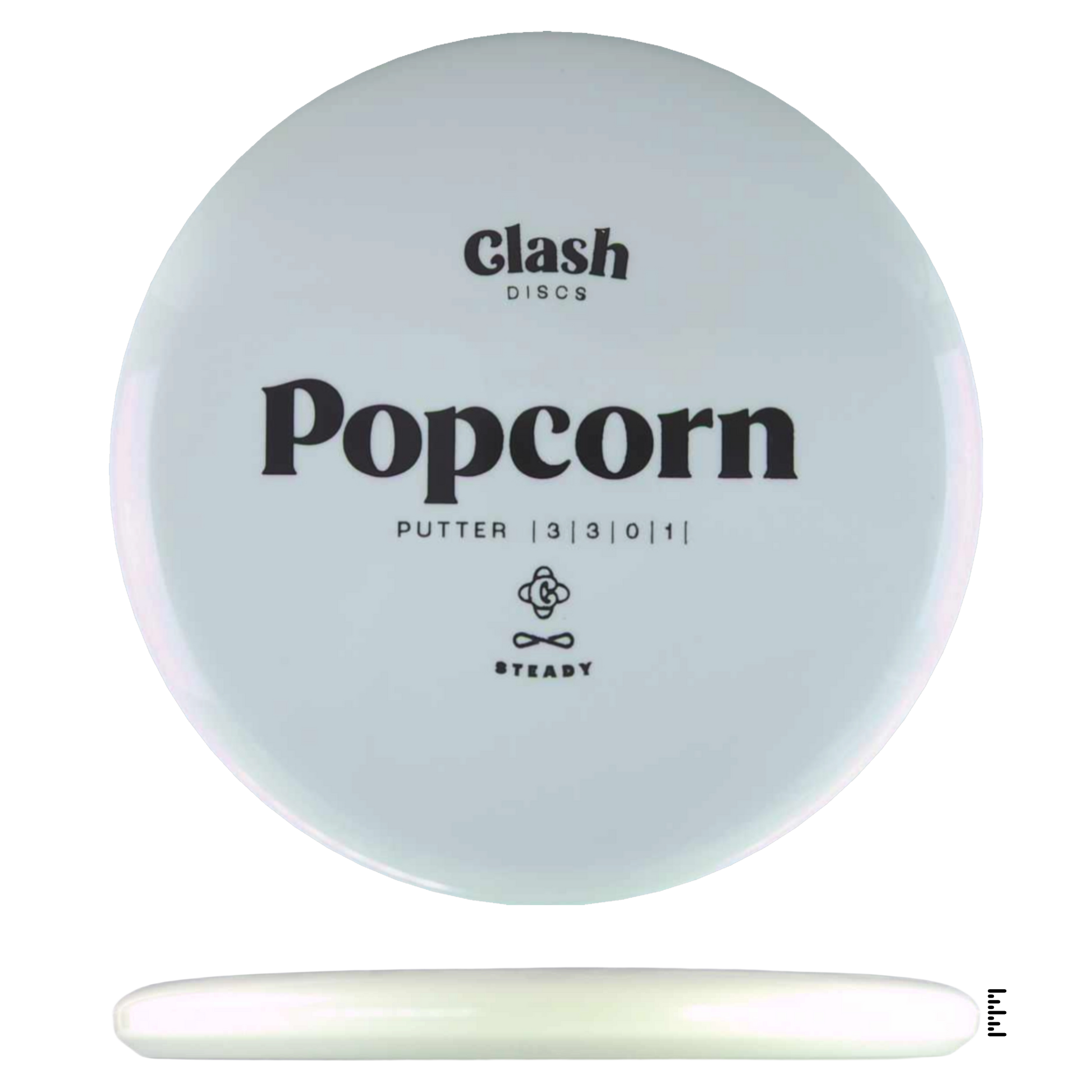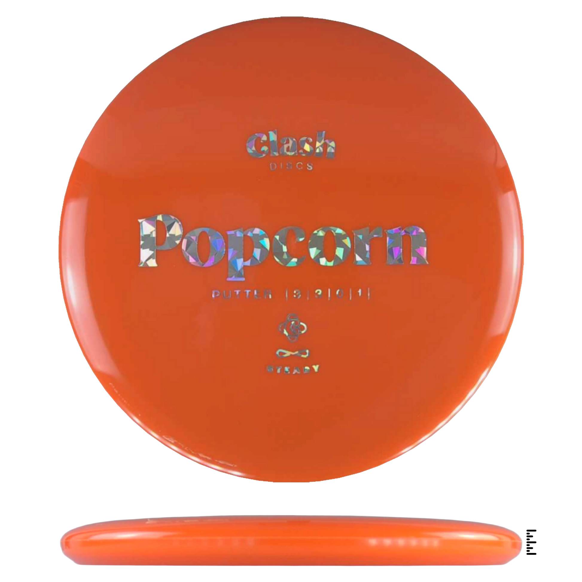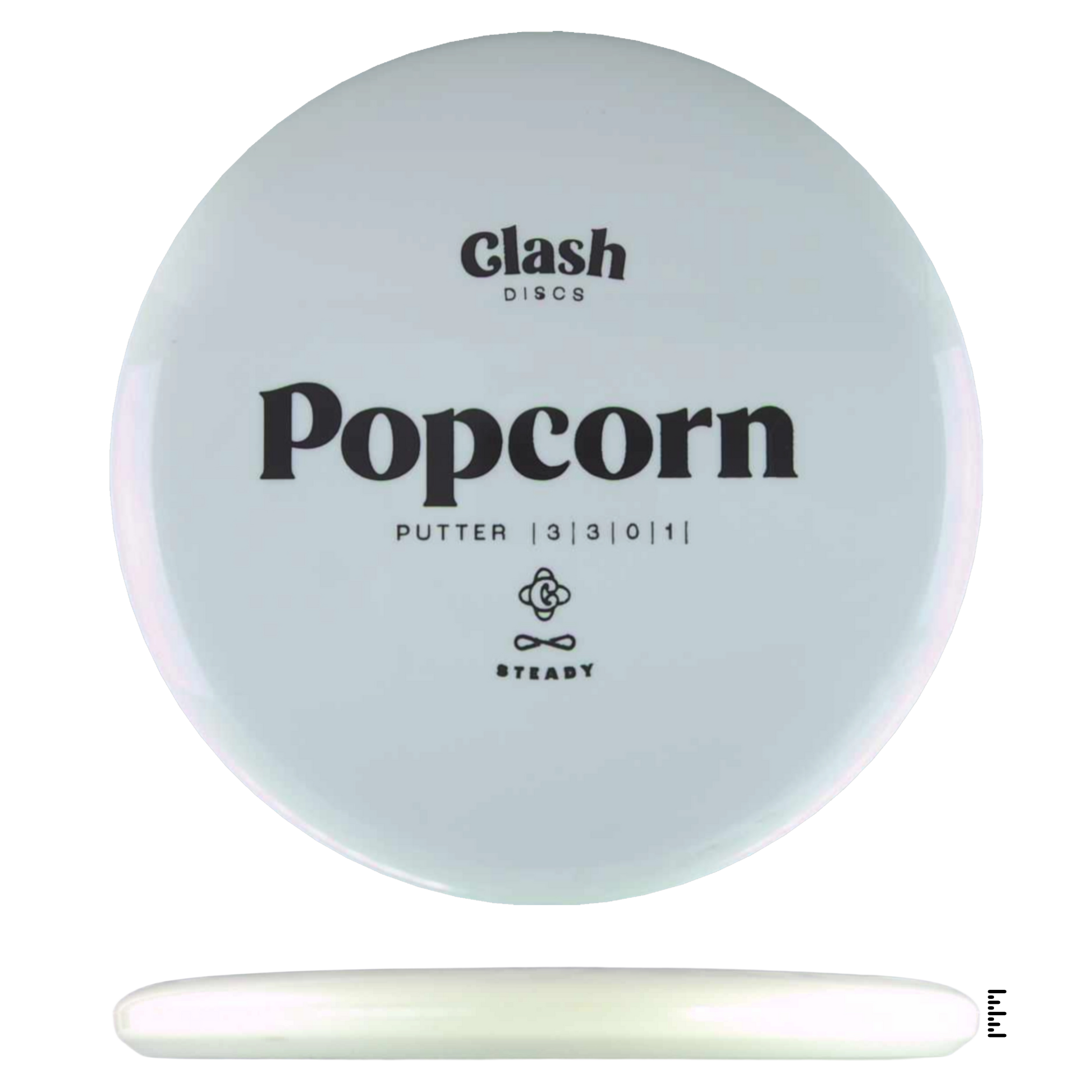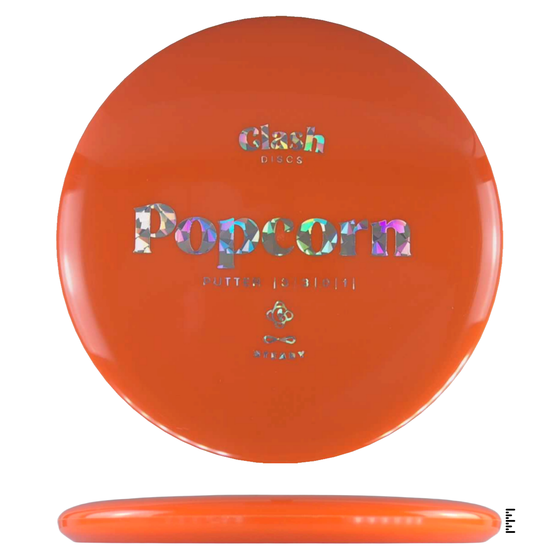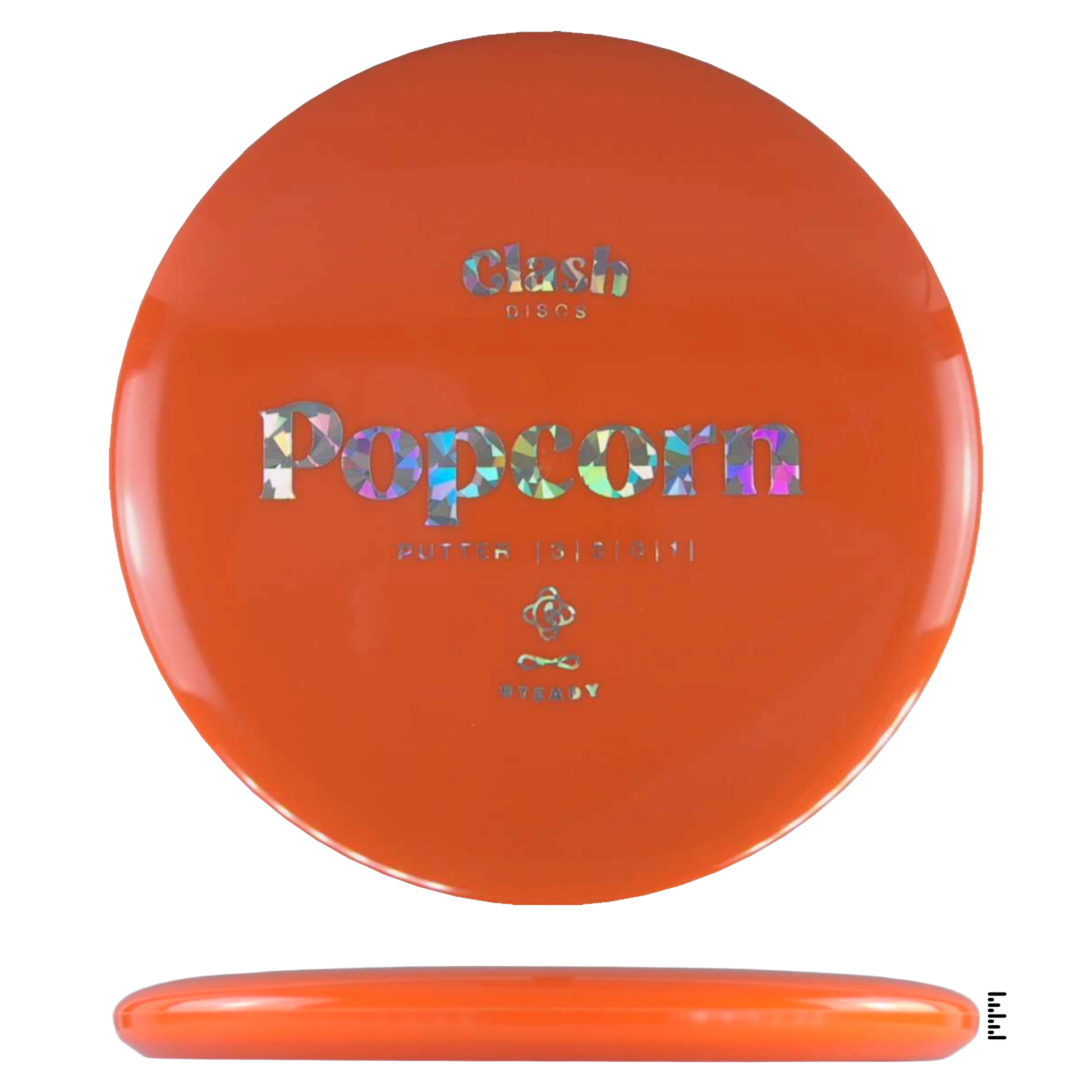 Popcorn is a straight flyer with good glide. It features a comfortable grip and a medium deep rim with minimum fade for the best putting experience. Popcorn will hold any line on your approach shots.