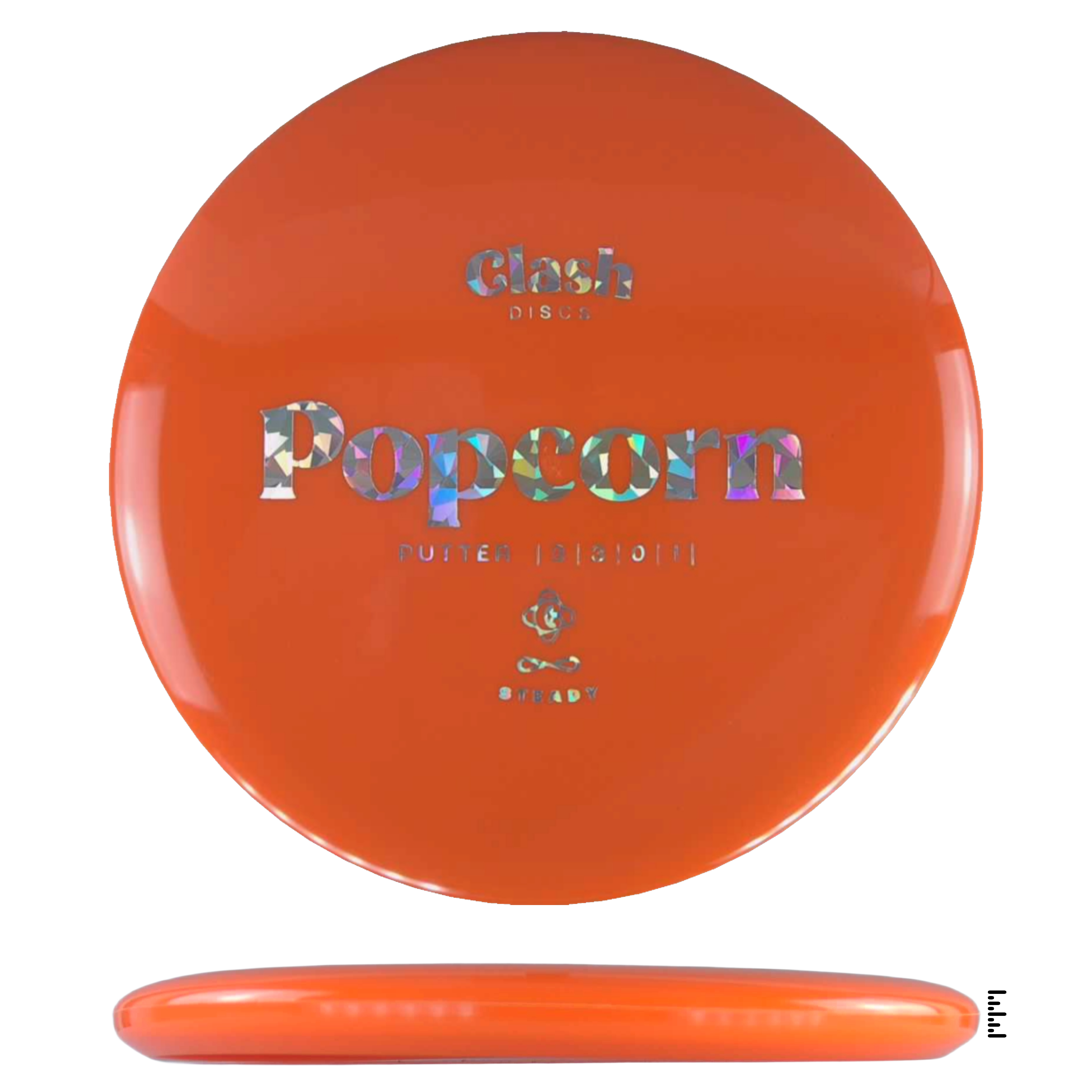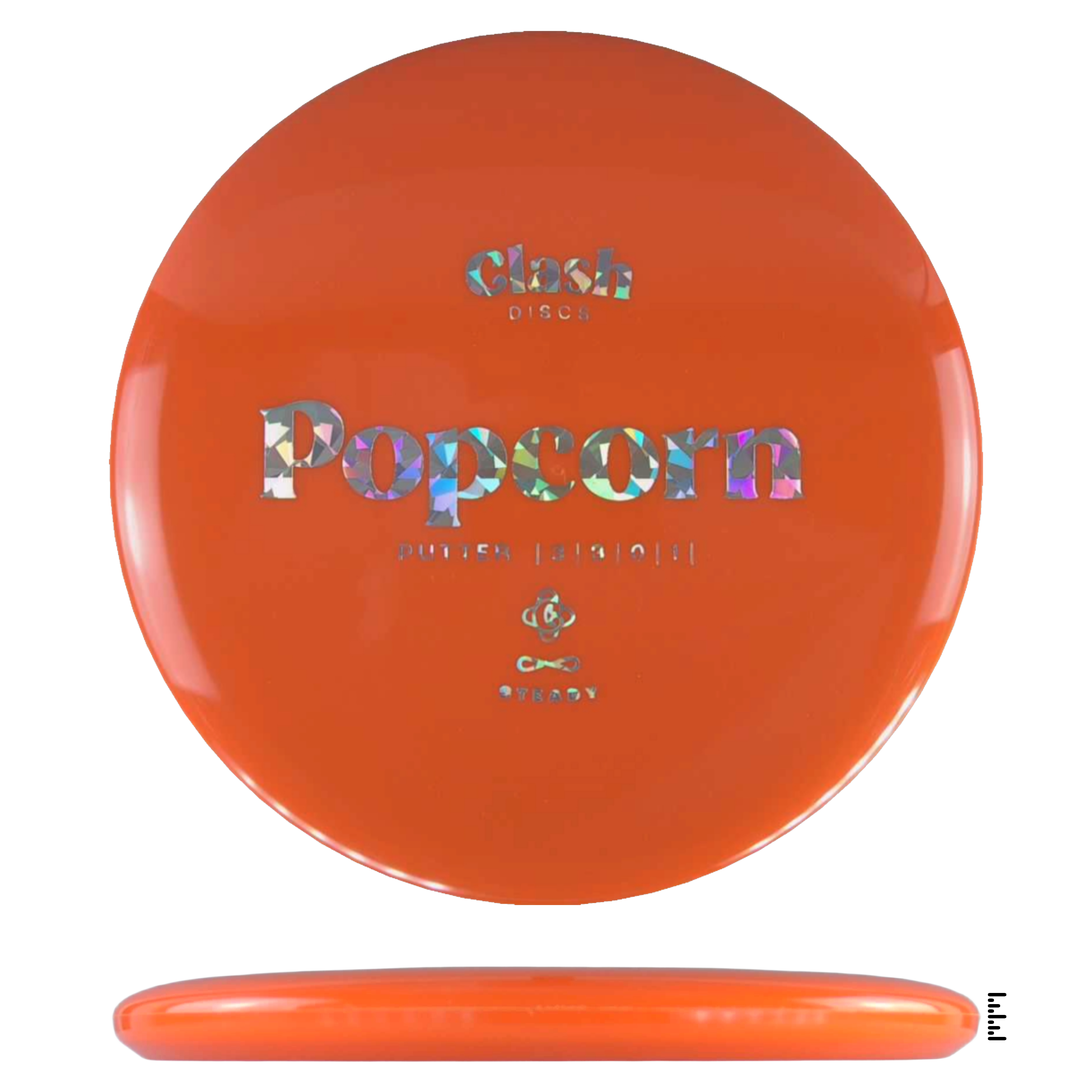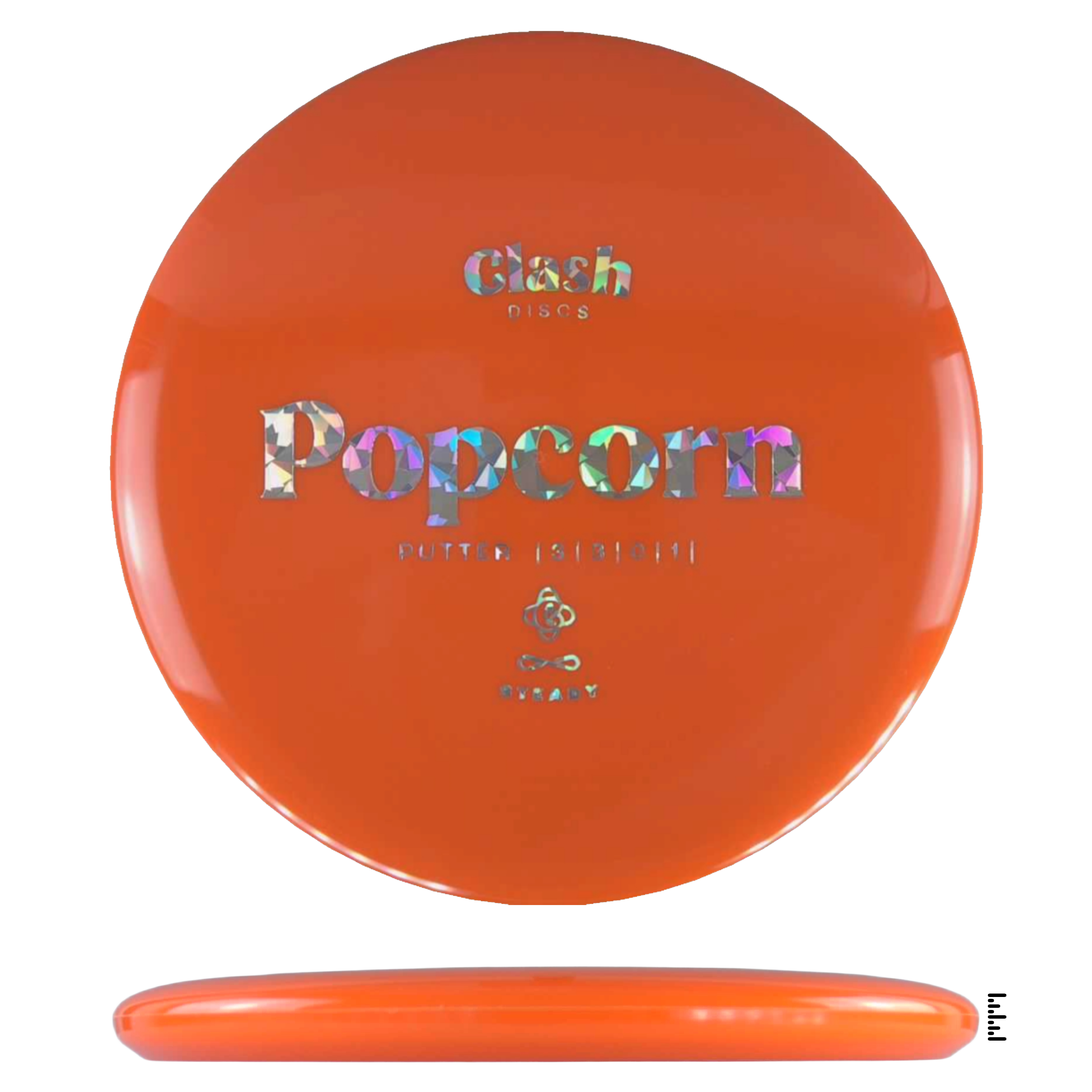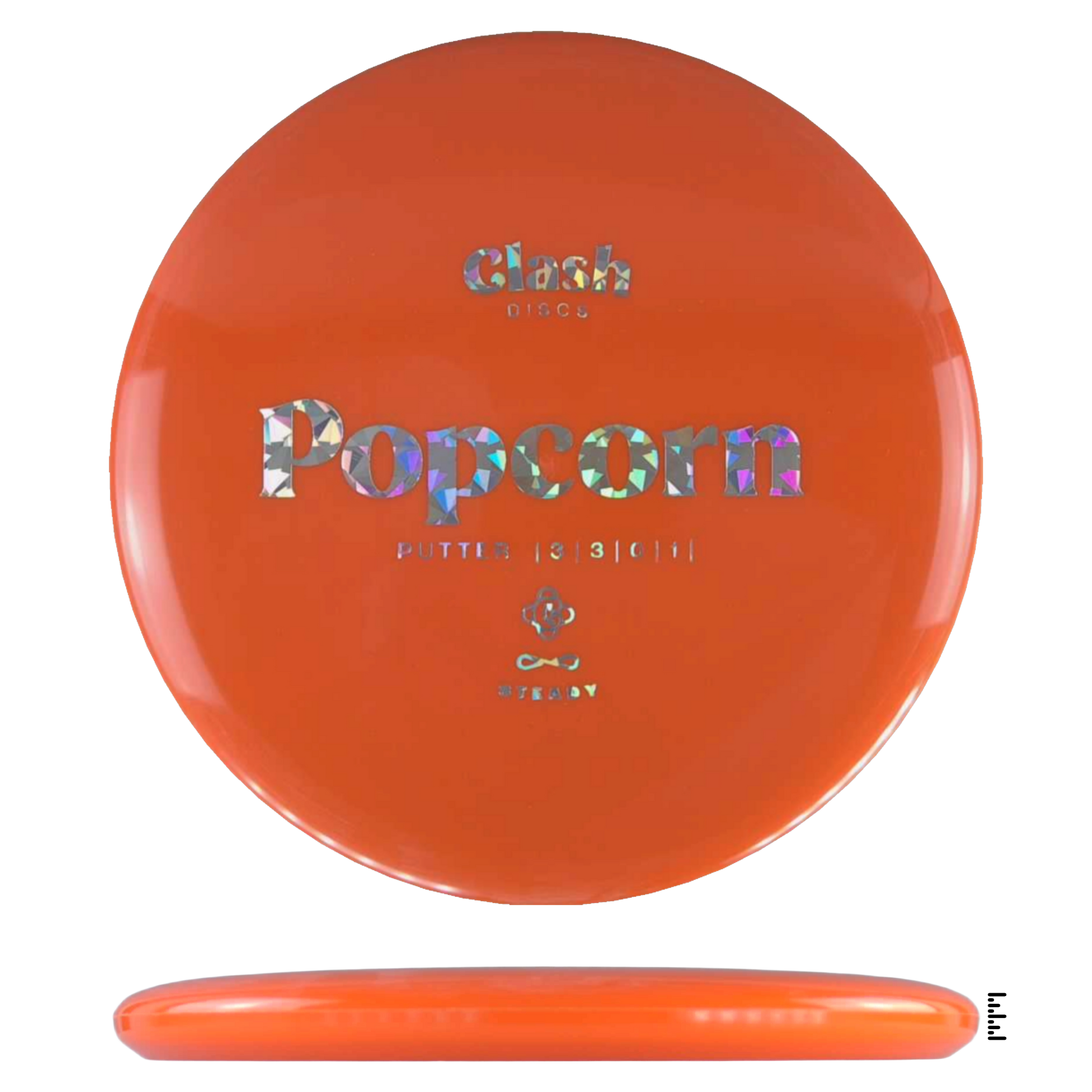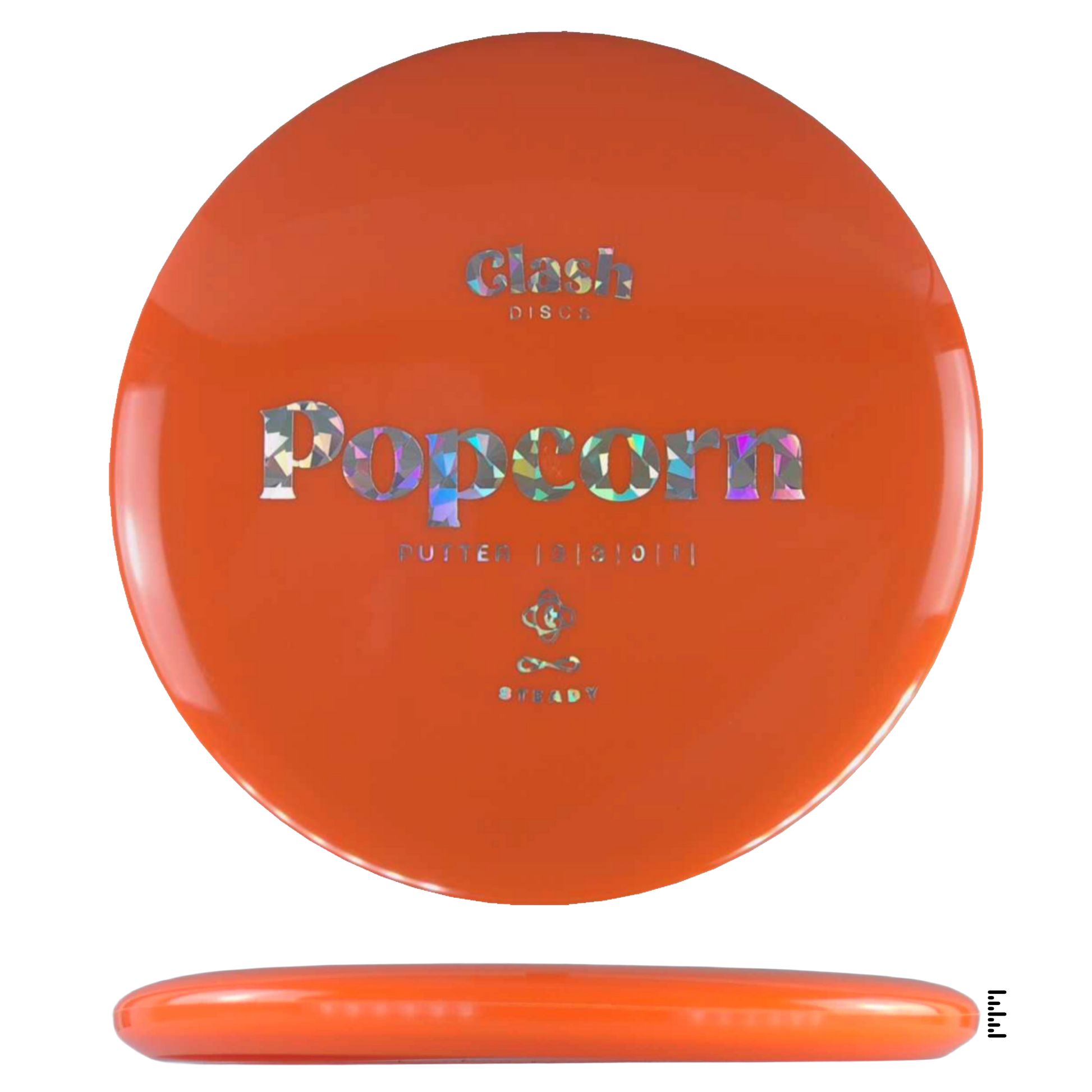 Popcorn is a straight flyer with good glide. It features a comfortable grip and a medium deep rim with minimum fade for the best putting experience. Popcorn will hold any line on your approach shots.