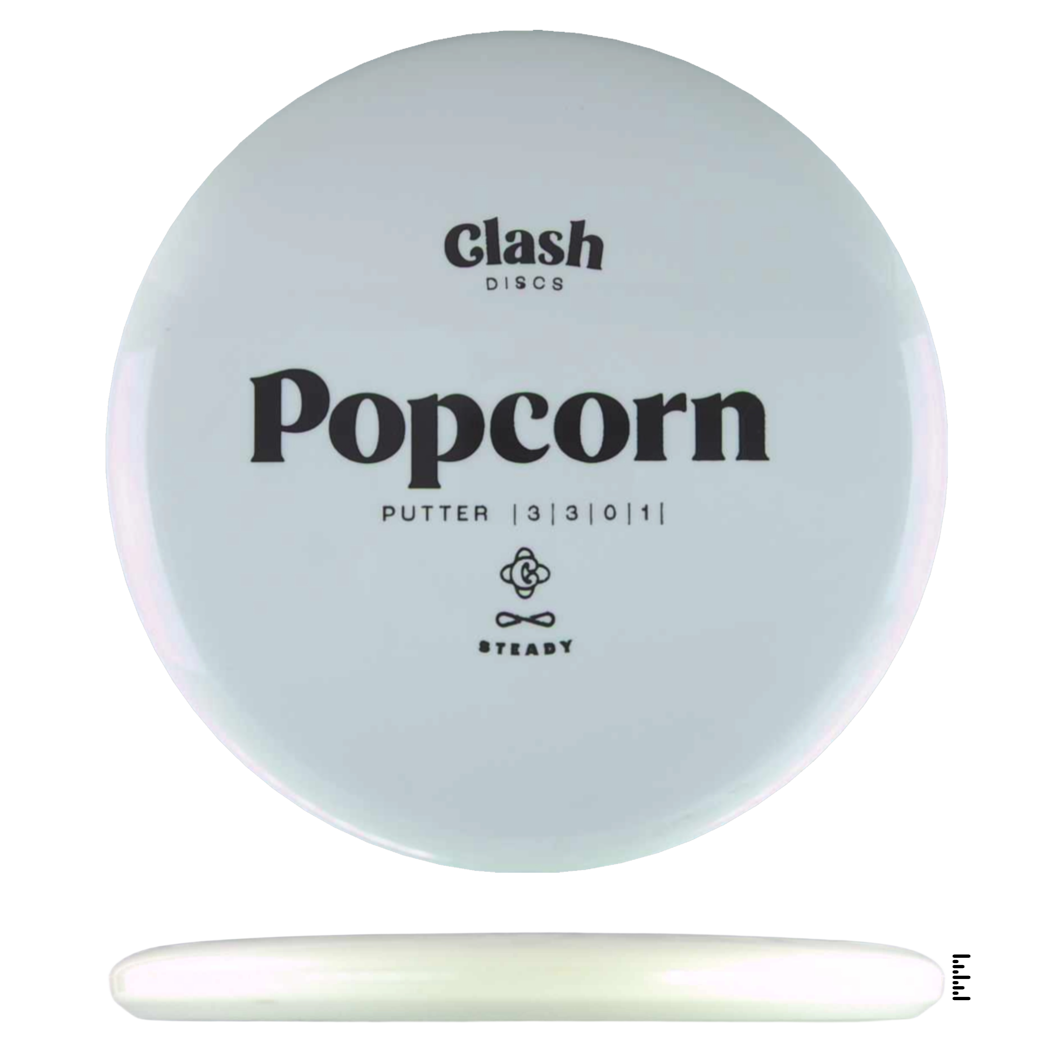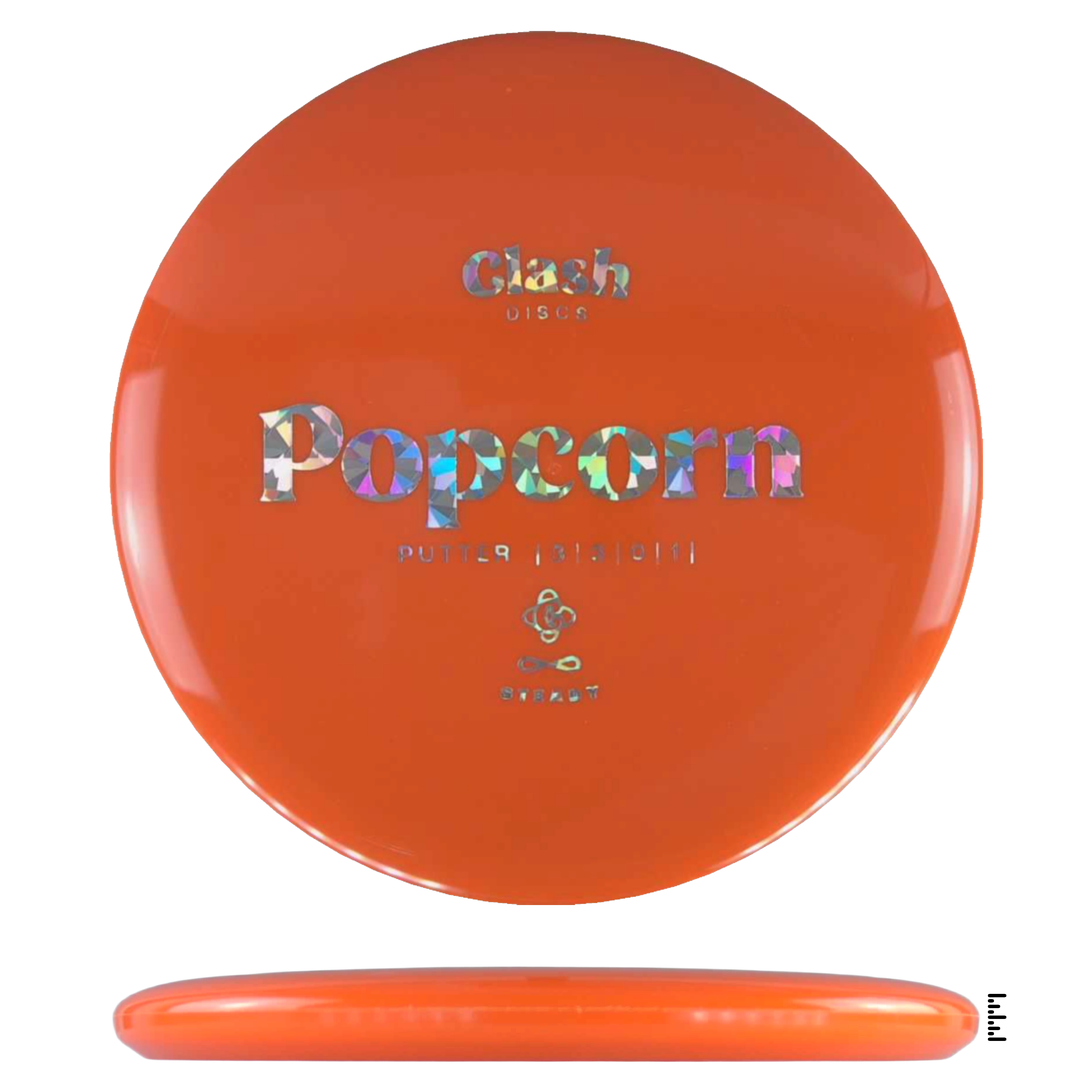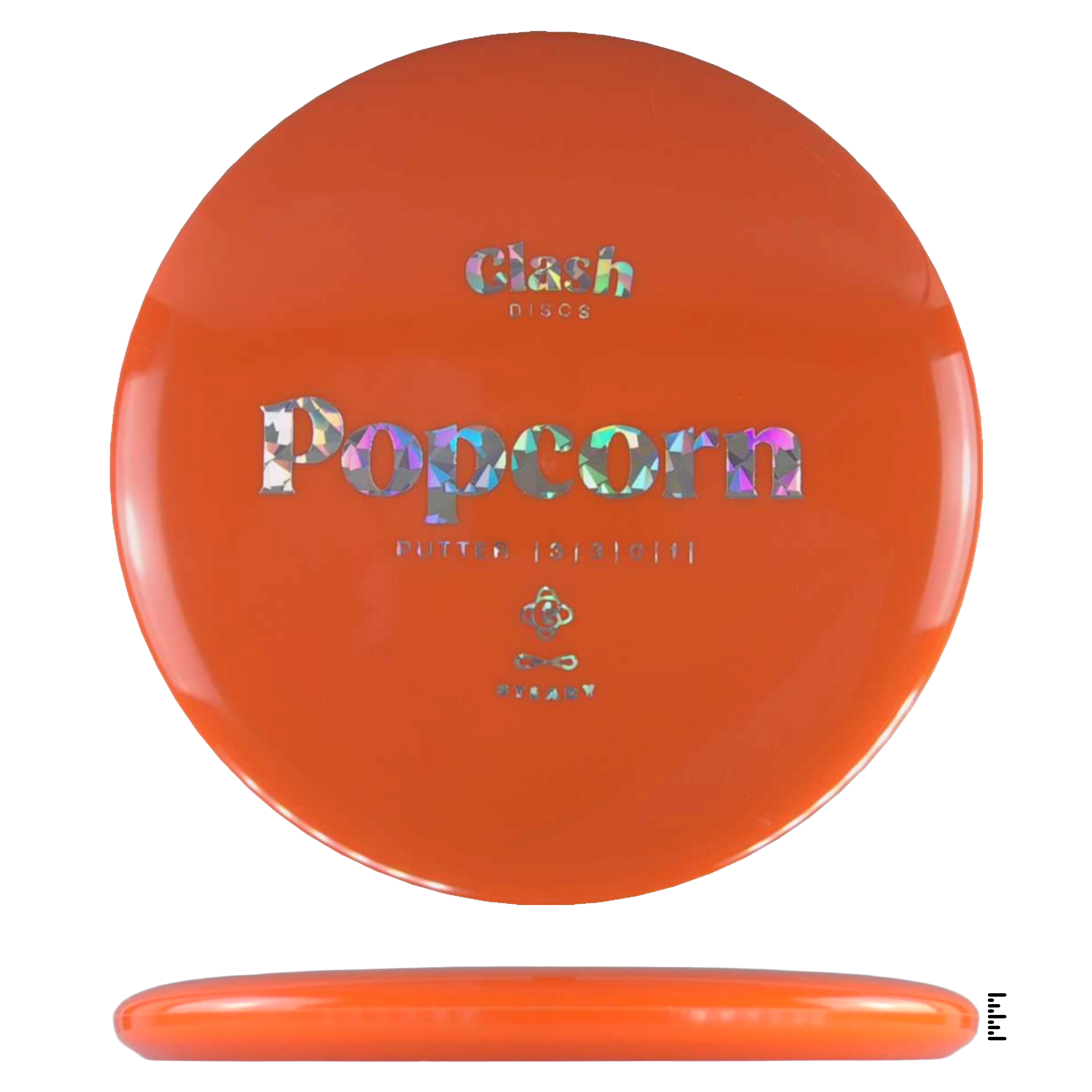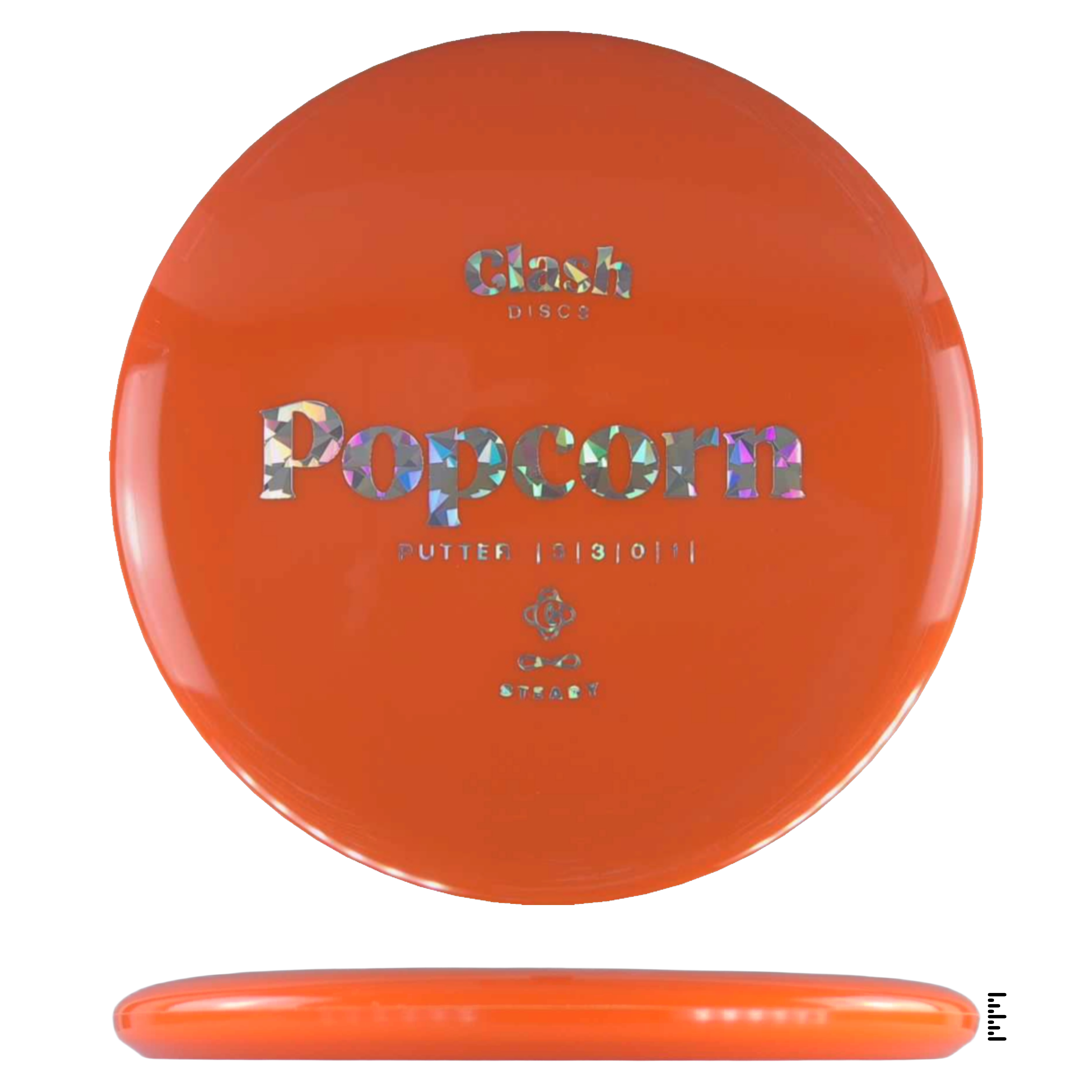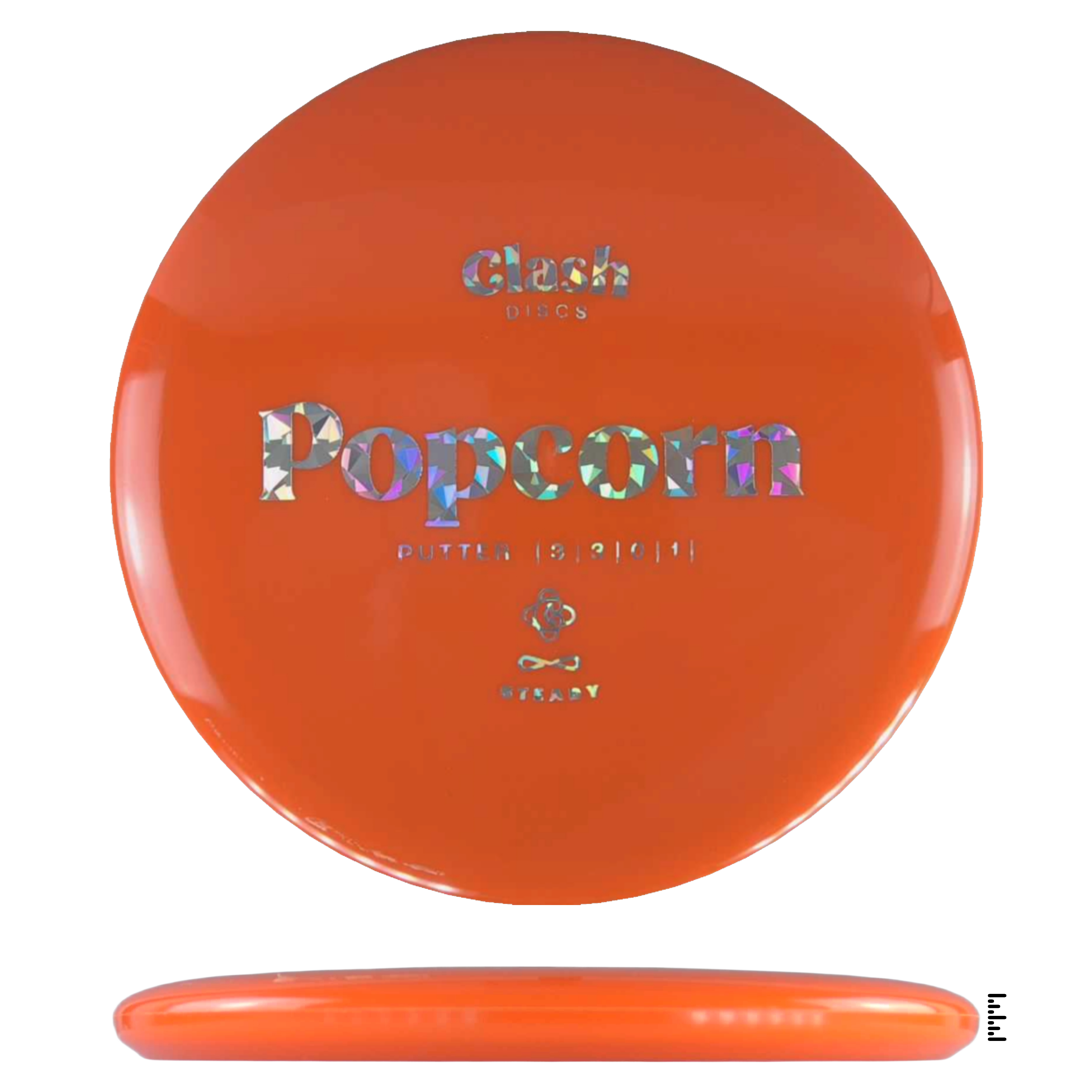 Popcorn is a straight flyer with good glide. It features a comfortable grip and a medium deep rim with minimum fade for the best putting experience. Popcorn will hold any line on your approach shots.