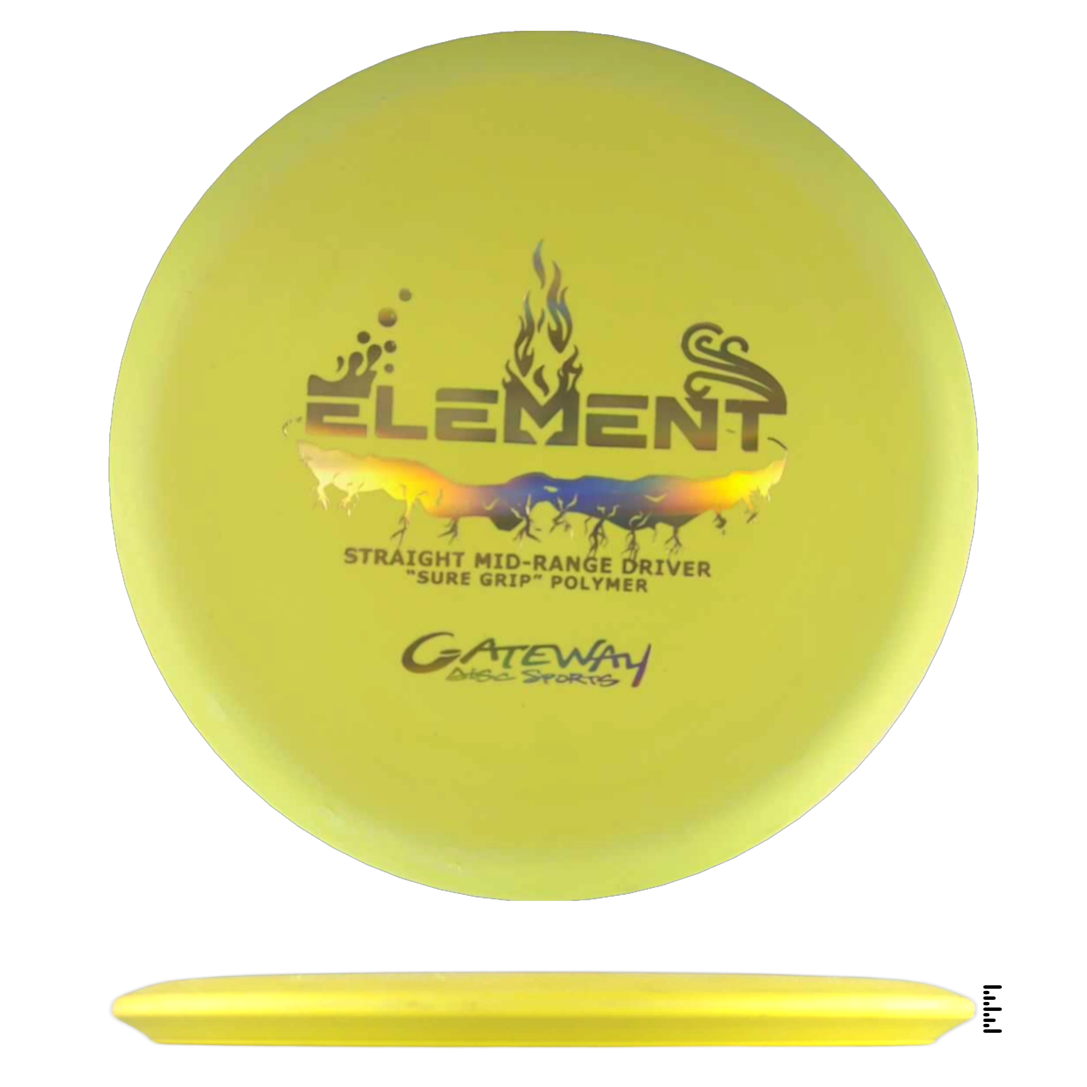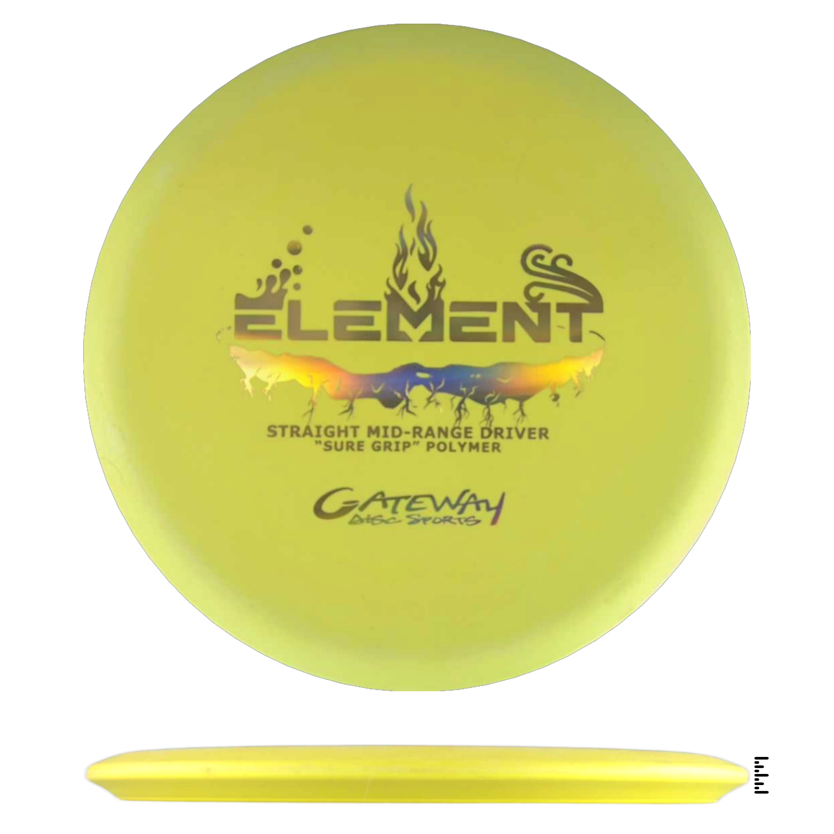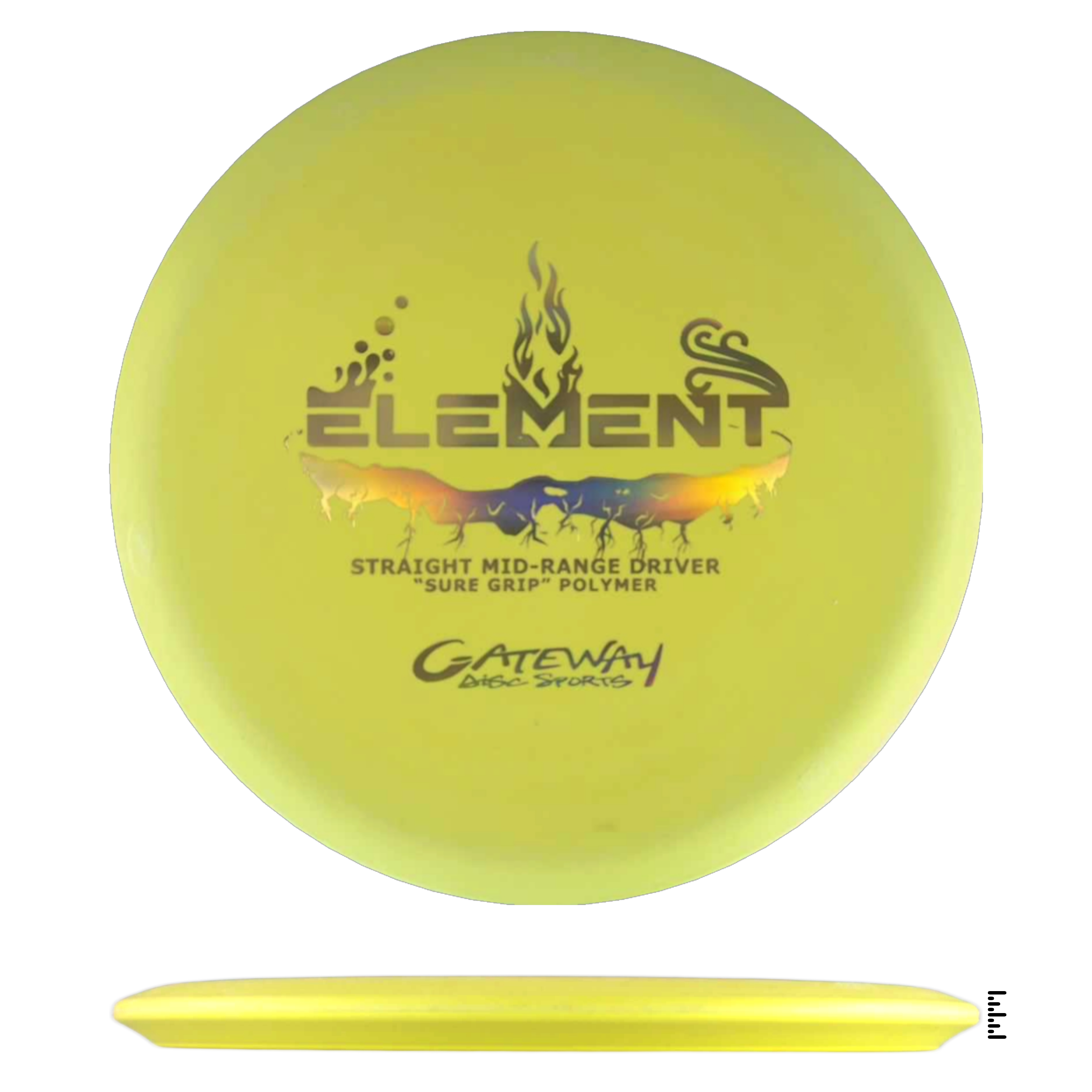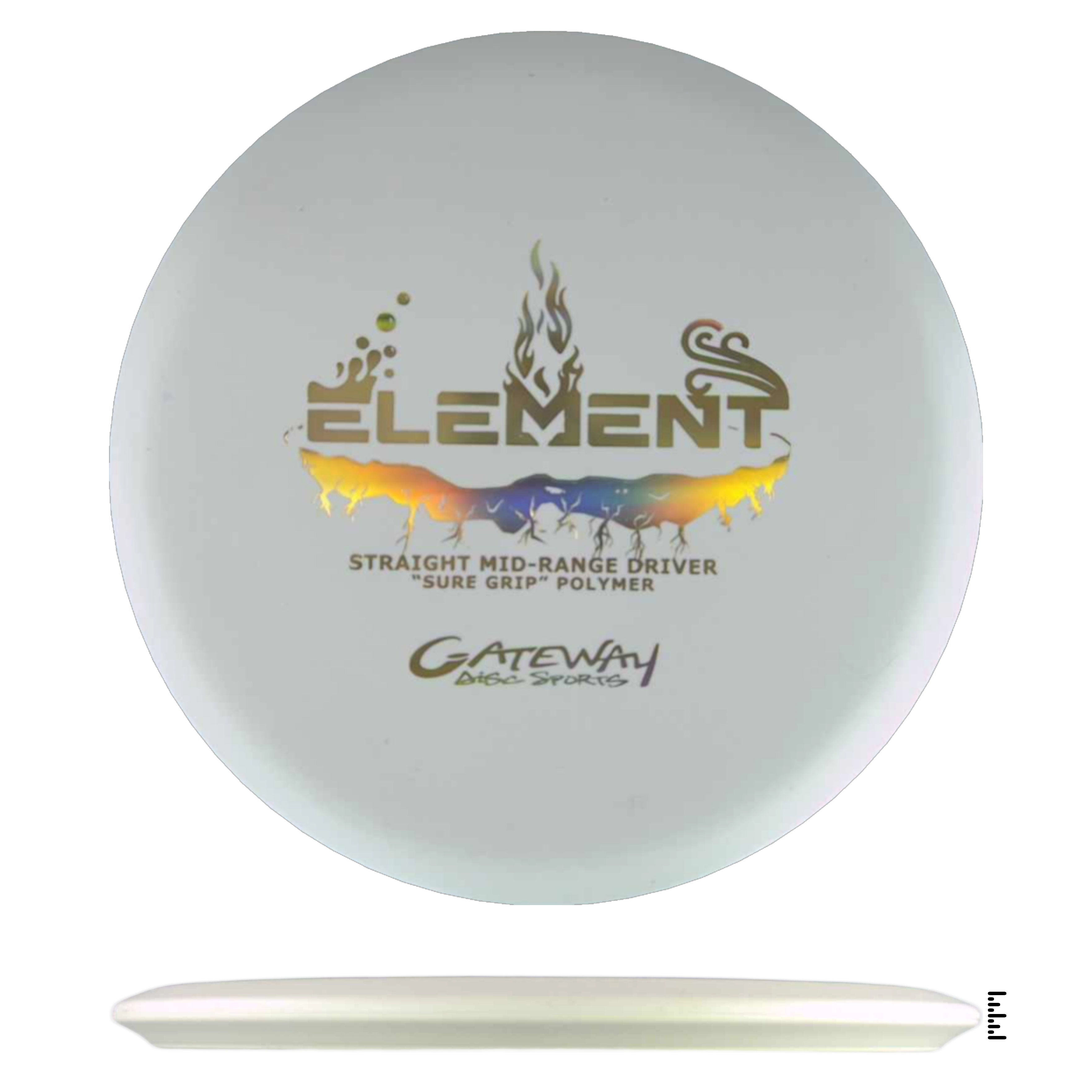 The Gateway Element is a great all around midrange disc. This disc will hold any angle you put it on with unbelievable glide. If you throw it flat it will go extremely straight will very little fade at the end of its flight. Anhyzers will keep turning, and hard-thrown hyzers will flip up to flat.