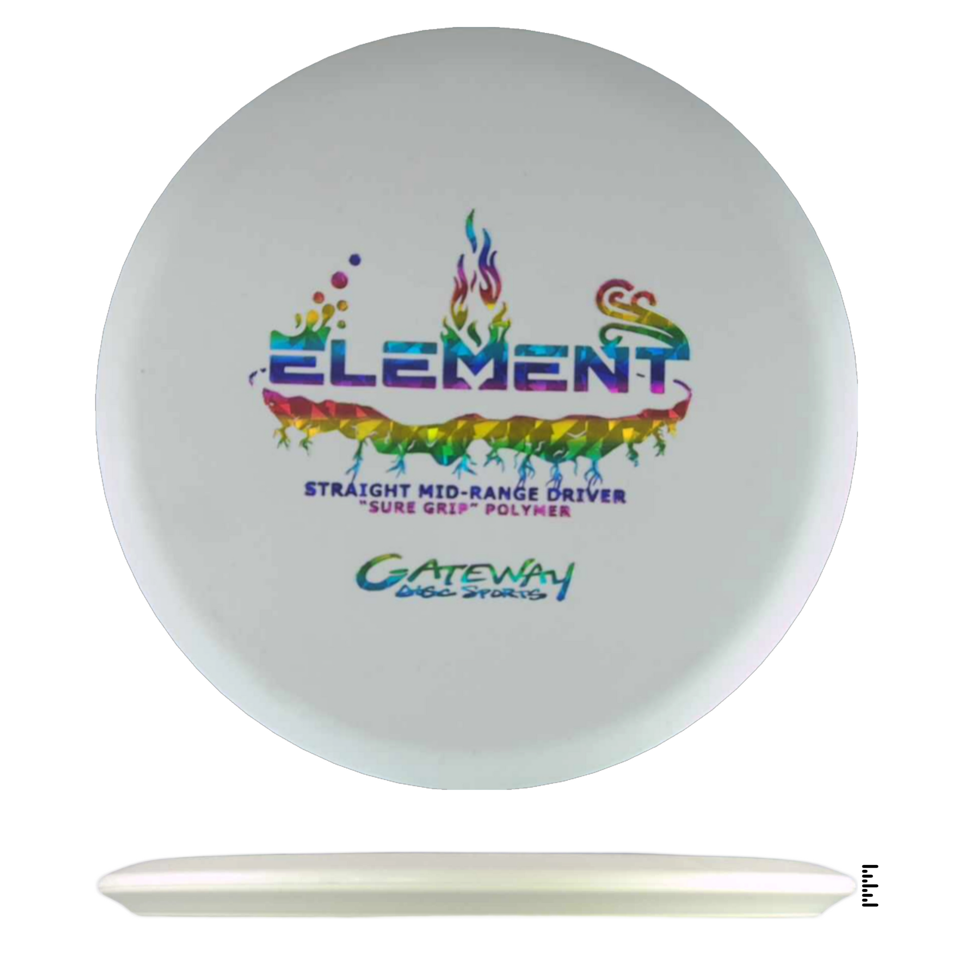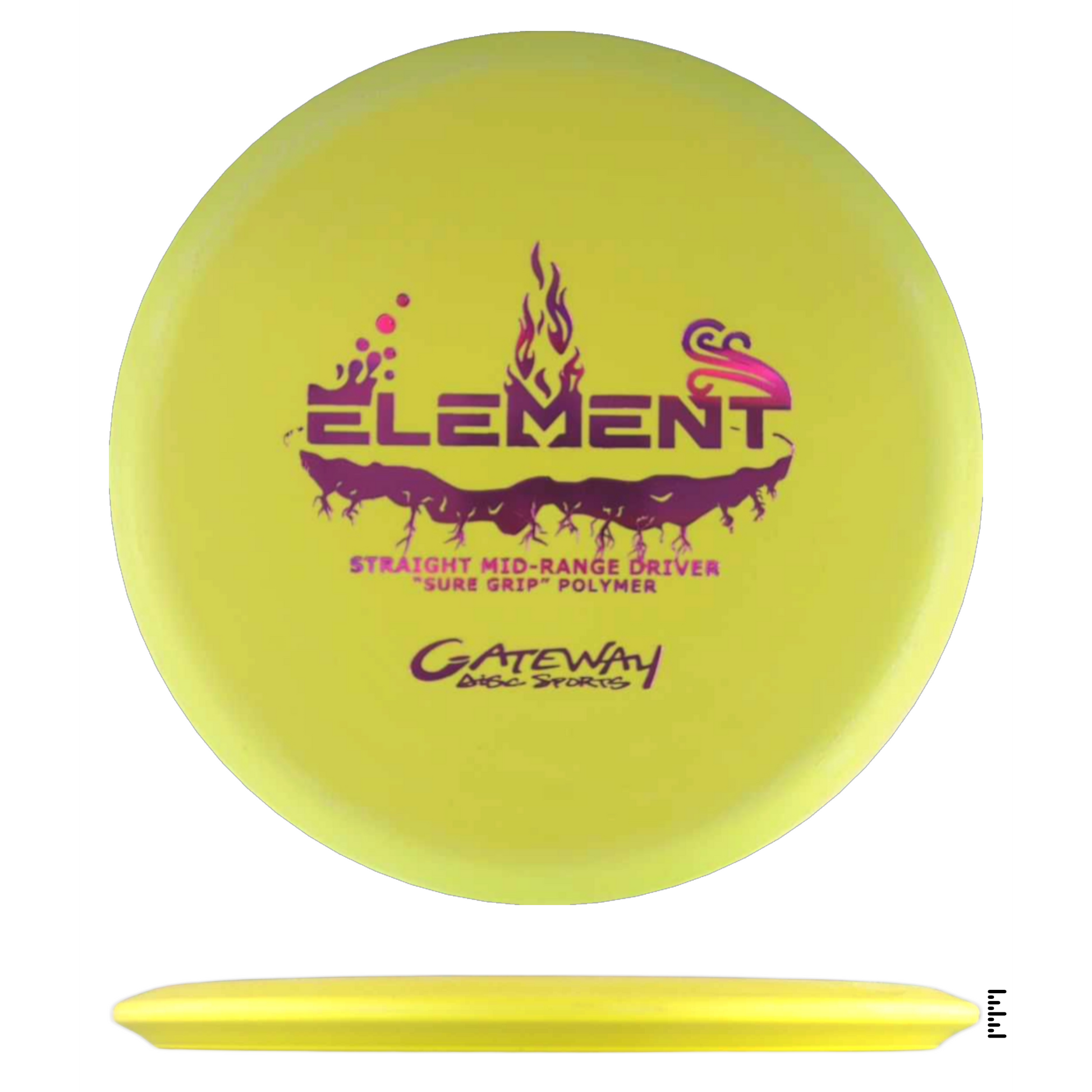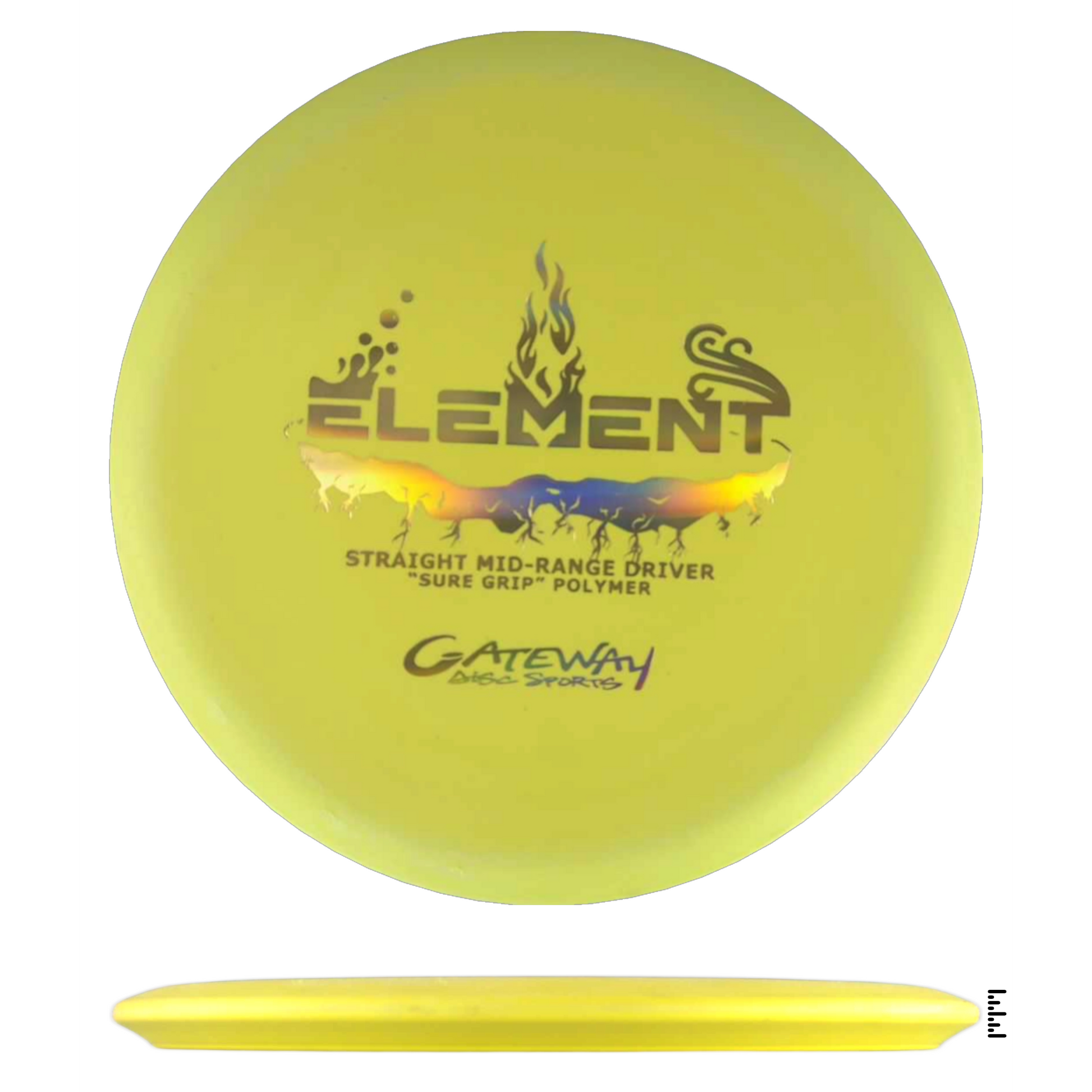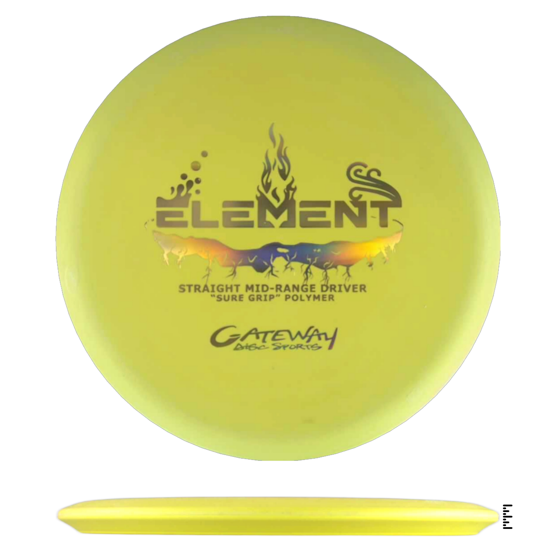 The Gateway Element is a great all around midrange disc. This disc will hold any angle you put it on with unbelievable glide. If you throw it flat it will go extremely straight will very little fade at the end of its flight. Anhyzers will keep turning, and hard-thrown hyzers will flip up to flat.