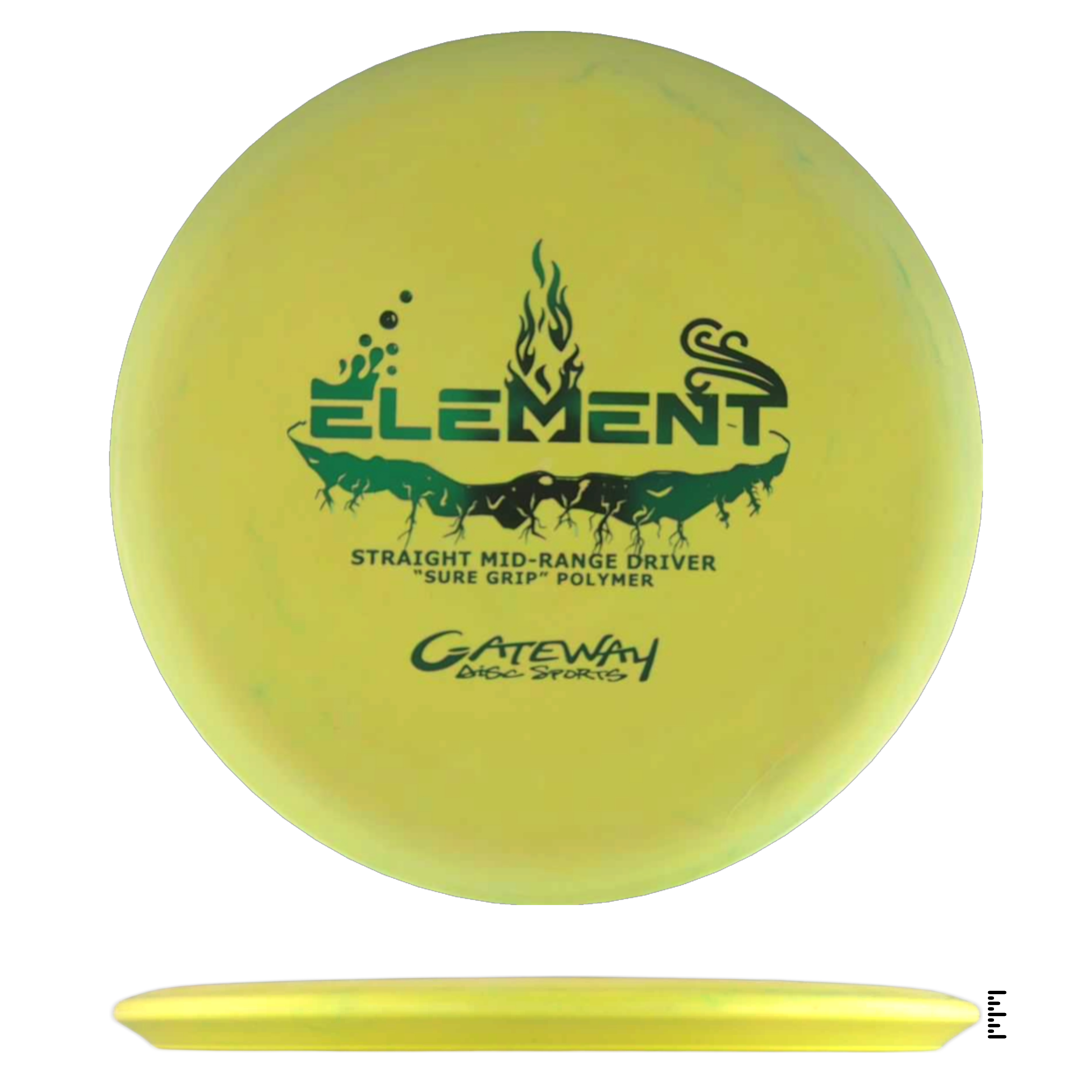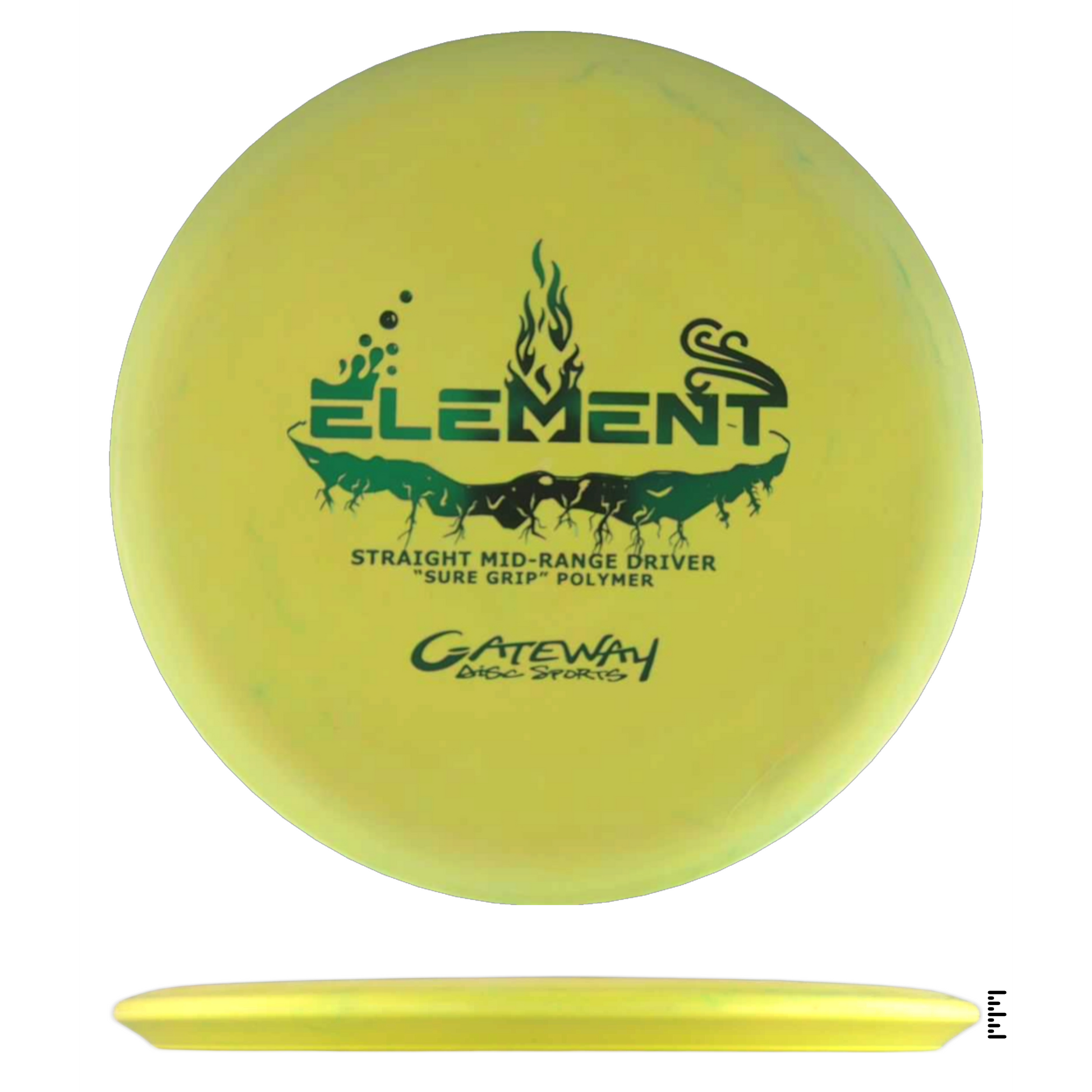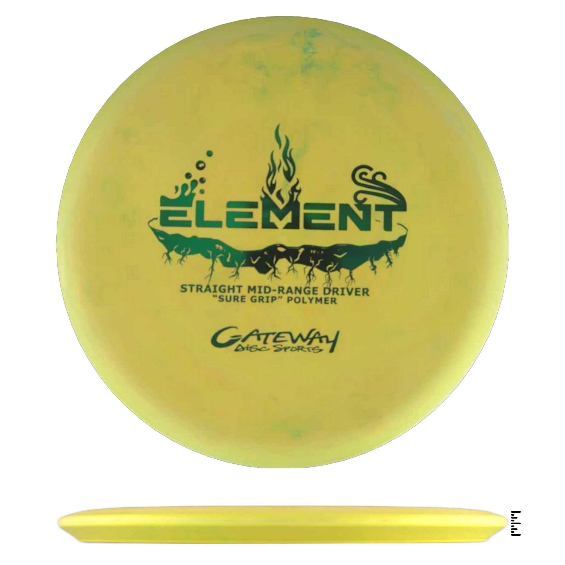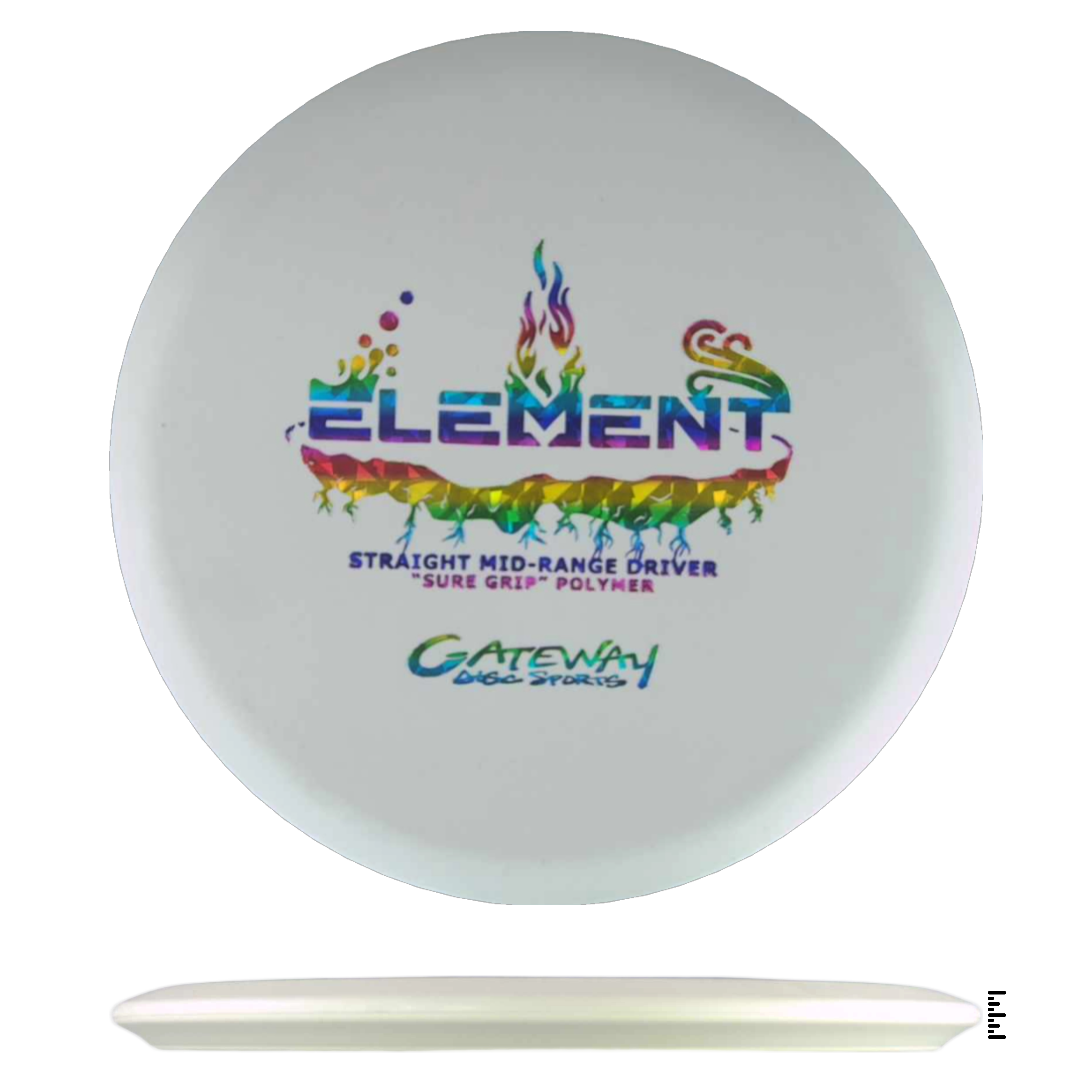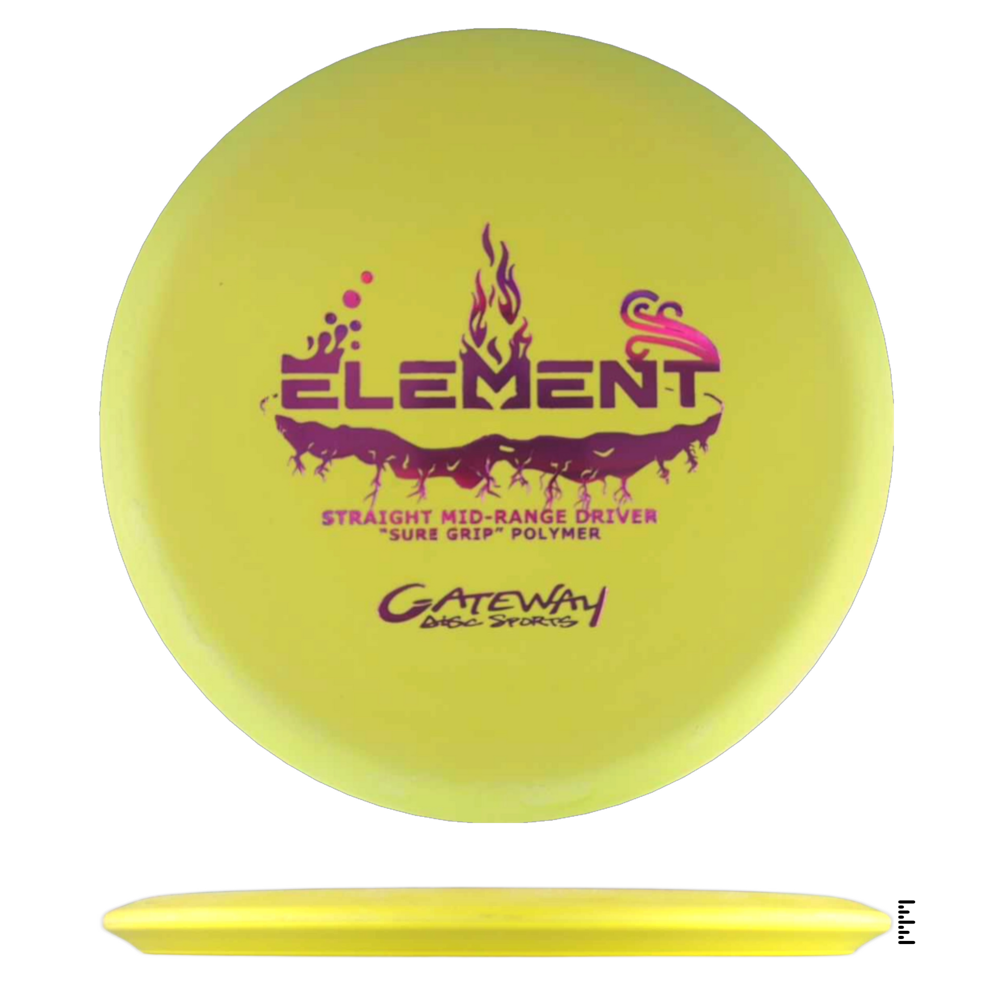 The Gateway Element is a great all around midrange disc. This disc will hold any angle you put it on with unbelievable glide. If you throw it flat it will go extremely straight will very little fade at the end of its flight. Anhyzers will keep turning, and hard-thrown hyzers will flip up to flat.