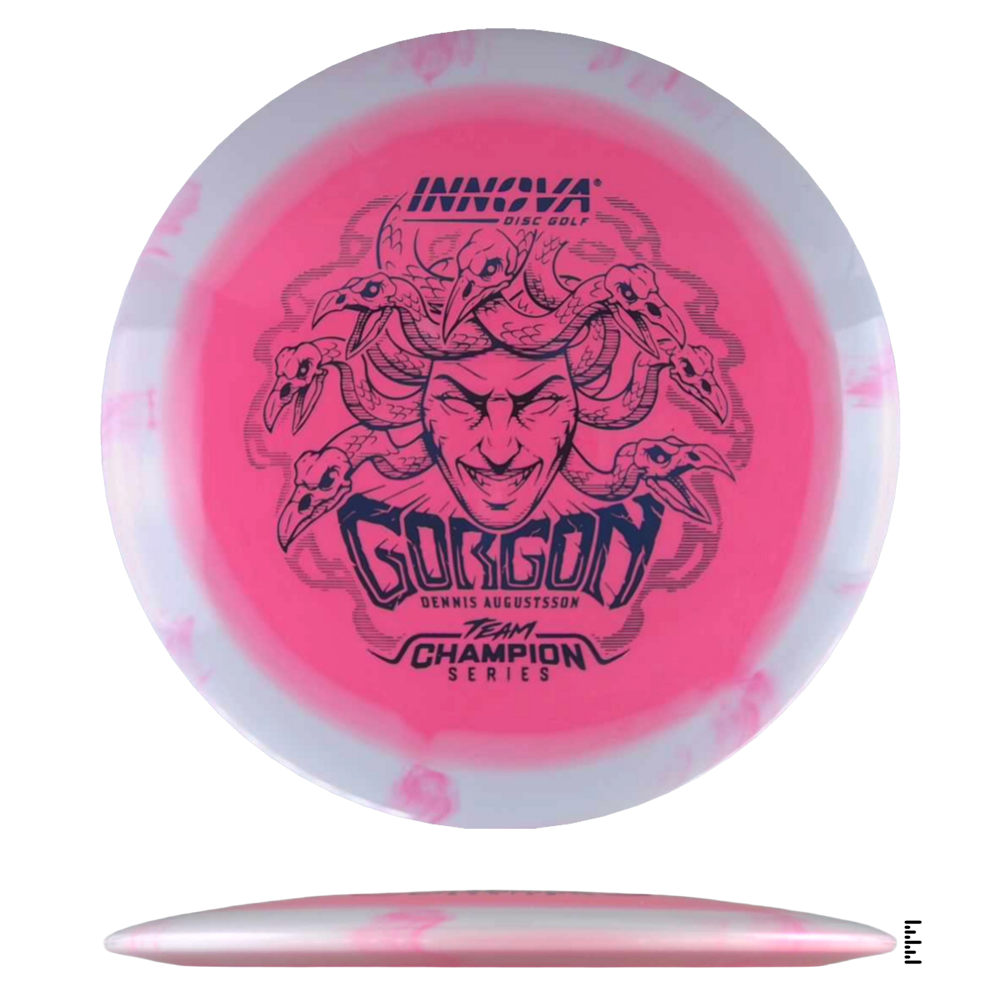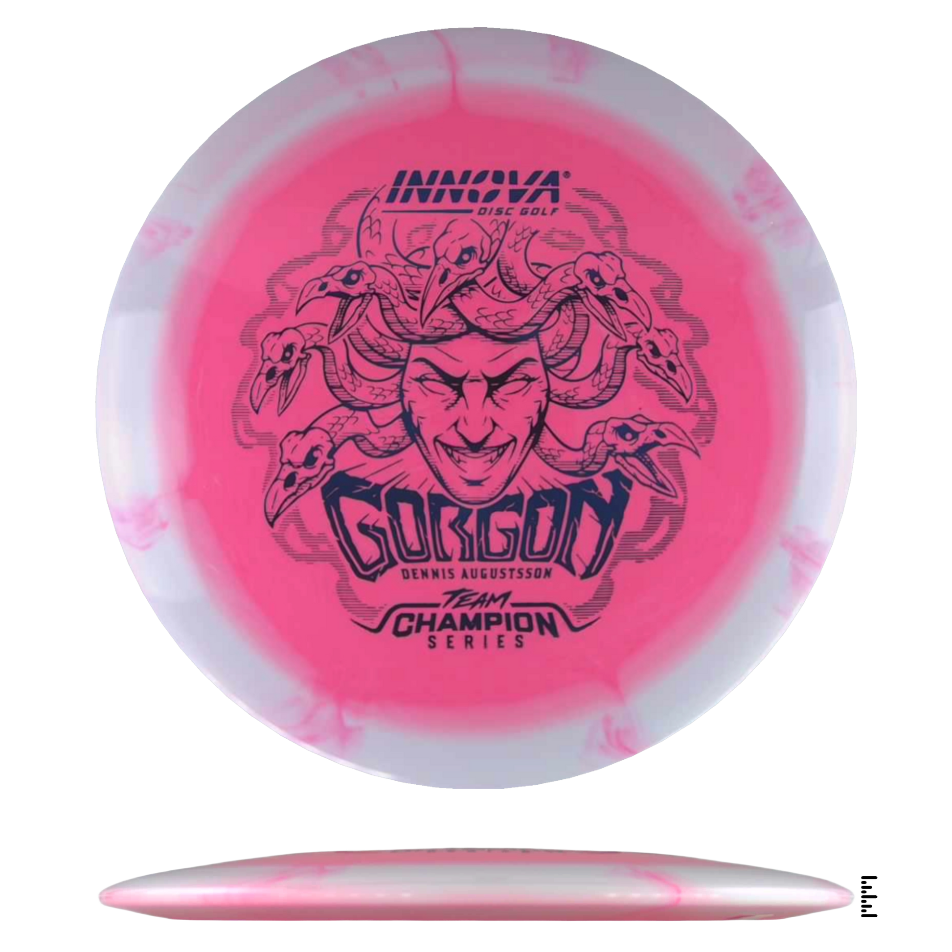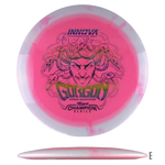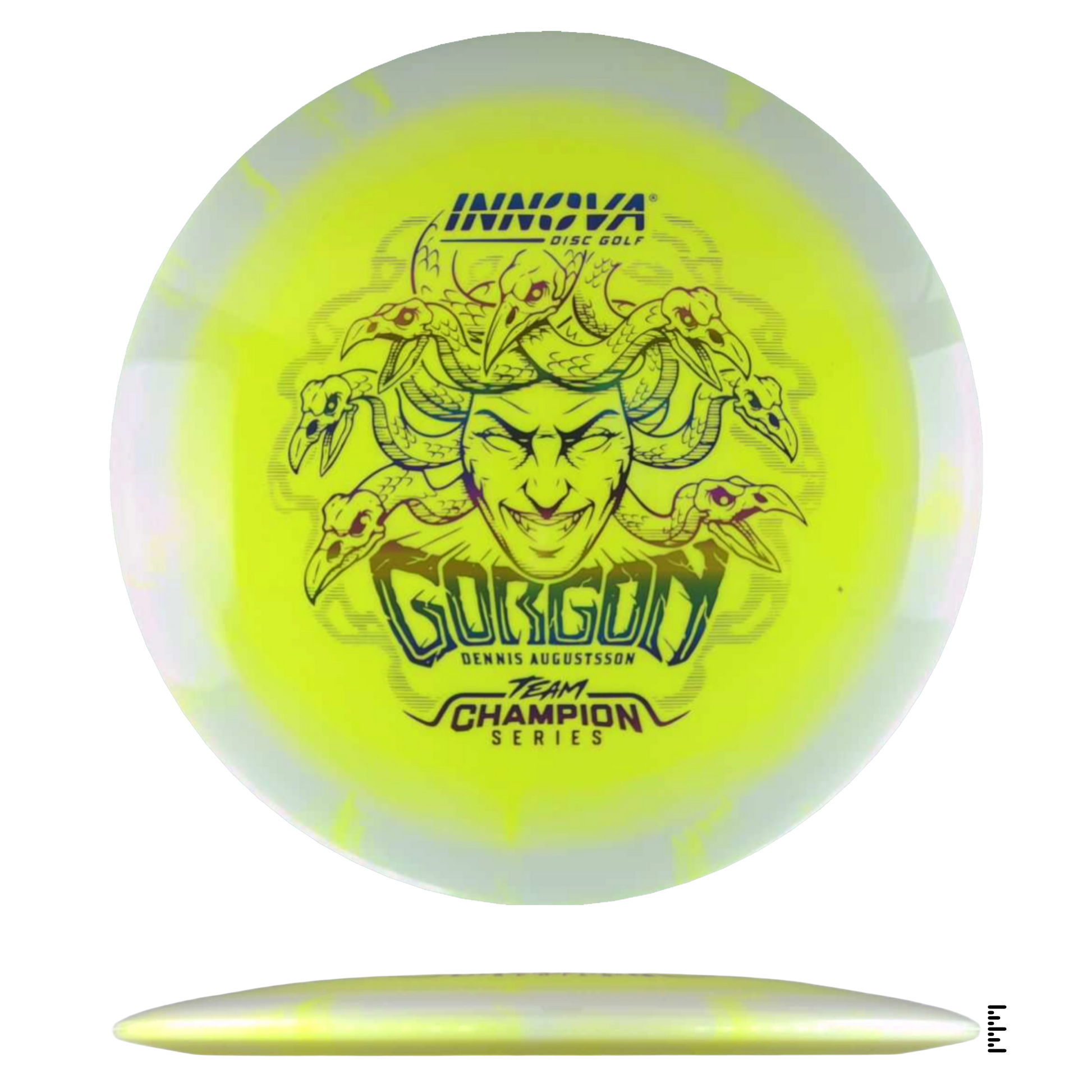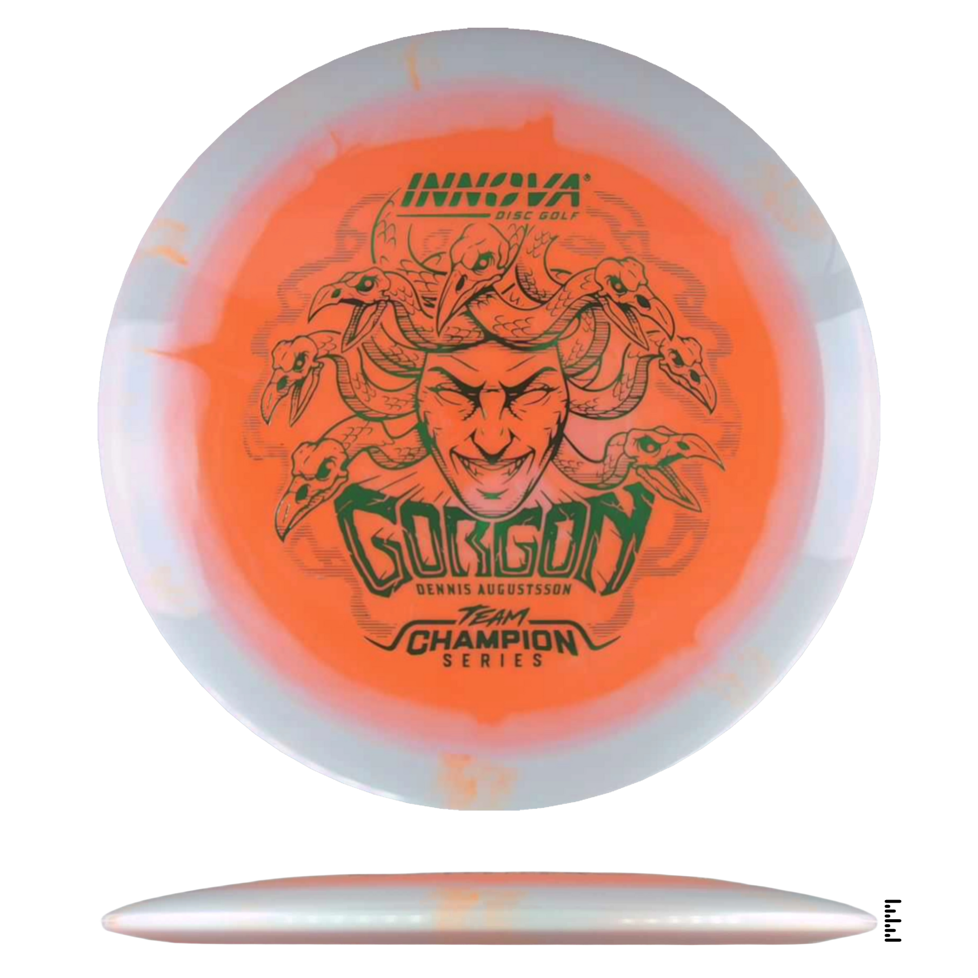 The Innova Gorgon is a driver that combines the control and feel of a fairway driver with the reach of a distance driver. Expect super straight flights with a soft fade at the end of the flight. When thrown with some power, you'll get a late turn, followed by just enough fade to bring it back toward the center of the fairway. More than anything, the Gorgon wants to glide for days. Aim for the basket and give it a rip.