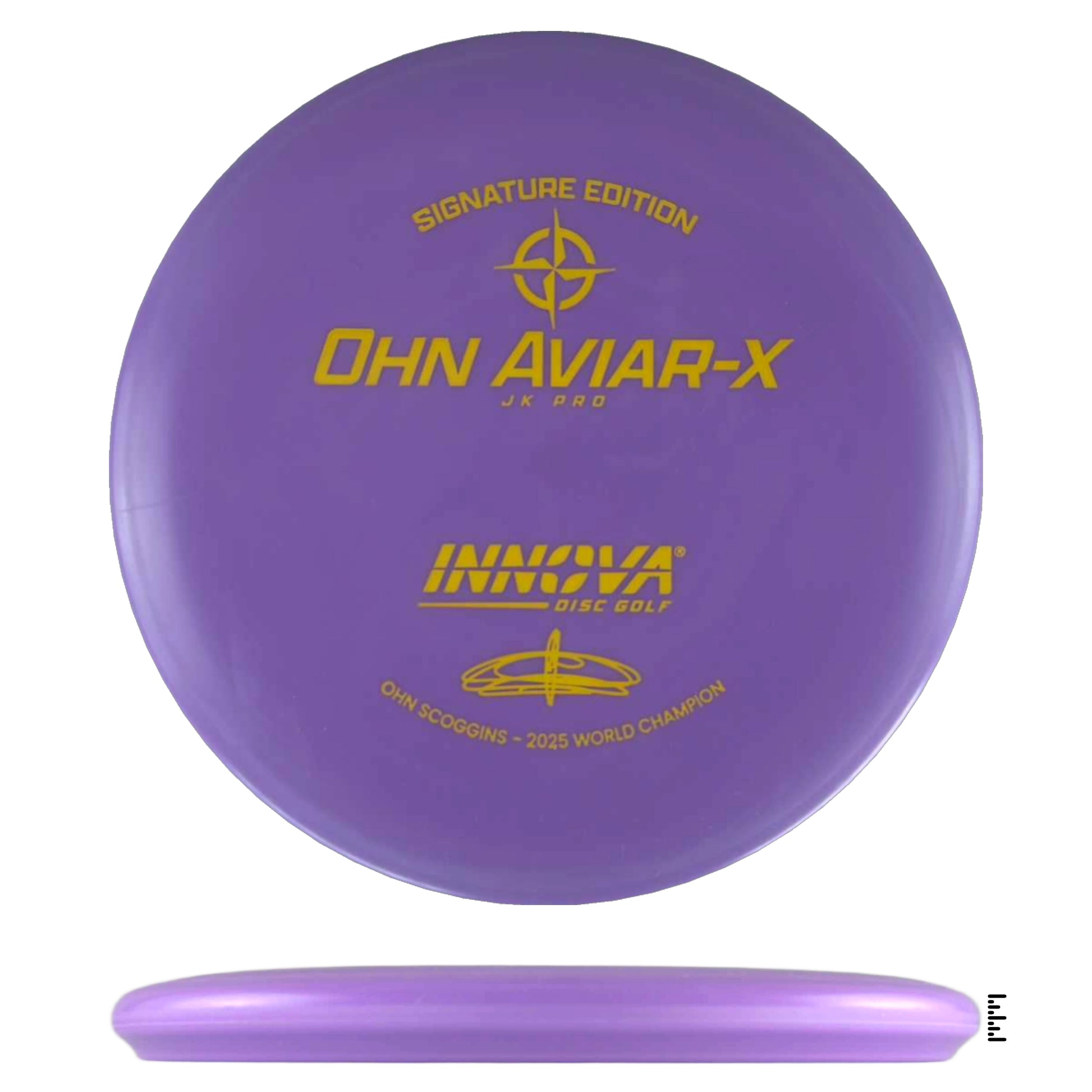 The Innova Ohn Aviar-X uses the Aviar Driver mold and the soft, grippy JK Pro plastic. This beaded putter helped Ohn to her historic 2025 season which included two PDGA World Championships.