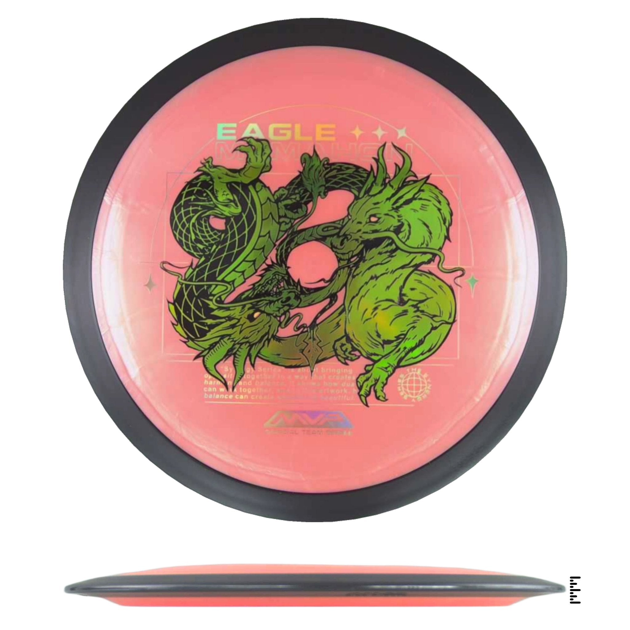 The MVP Dimension is a very high speed overstable driver designed for pure distance. In 2025, Team MVP's Eagle McMahon has selected the Plasma Dimension as his Team Series disc. Eagle loves his Dimension and with such high speed and strong high-speed stability, the Dimension thrives when you give it every ounce of power you have.