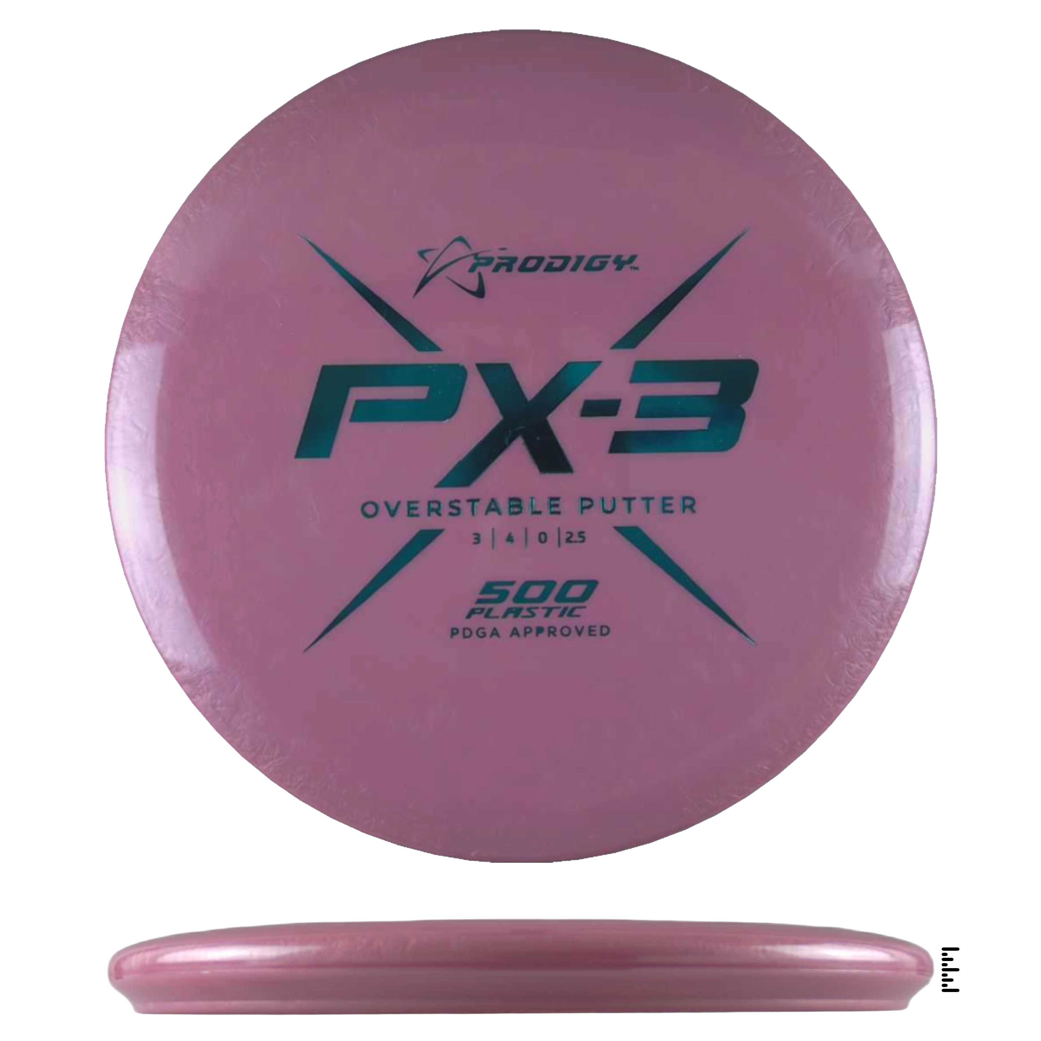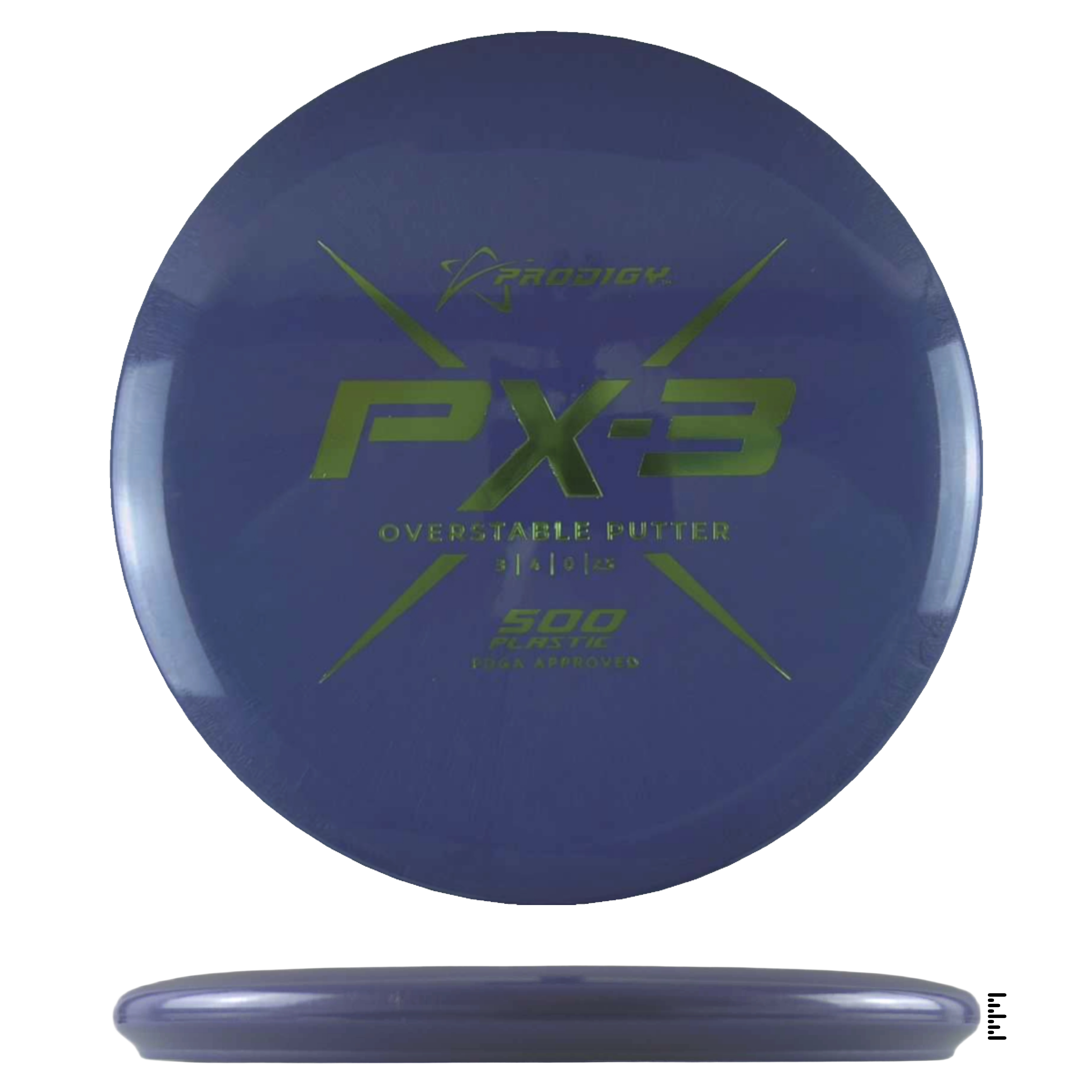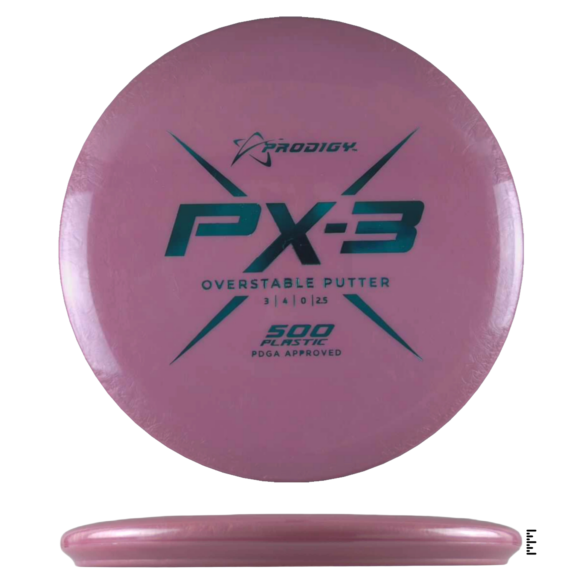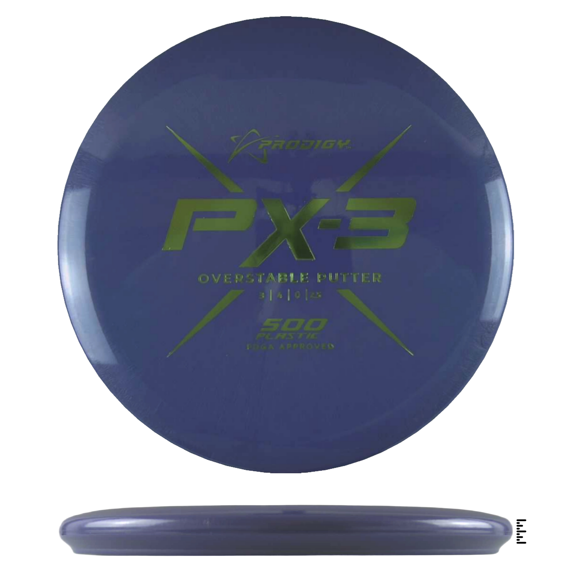 The PX-3 is an overstable, beaded putter that will help players throw accurate, consistent shots. It resists turning over at high speeds and glides forward before a predictable overstable finish kicks in at the end of its flight. The PX-3 has a larger bead than the PA-3 and is useful for both throwing and putting.