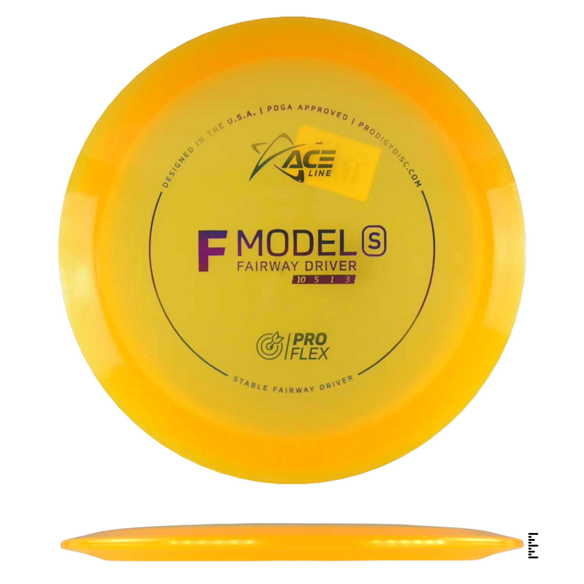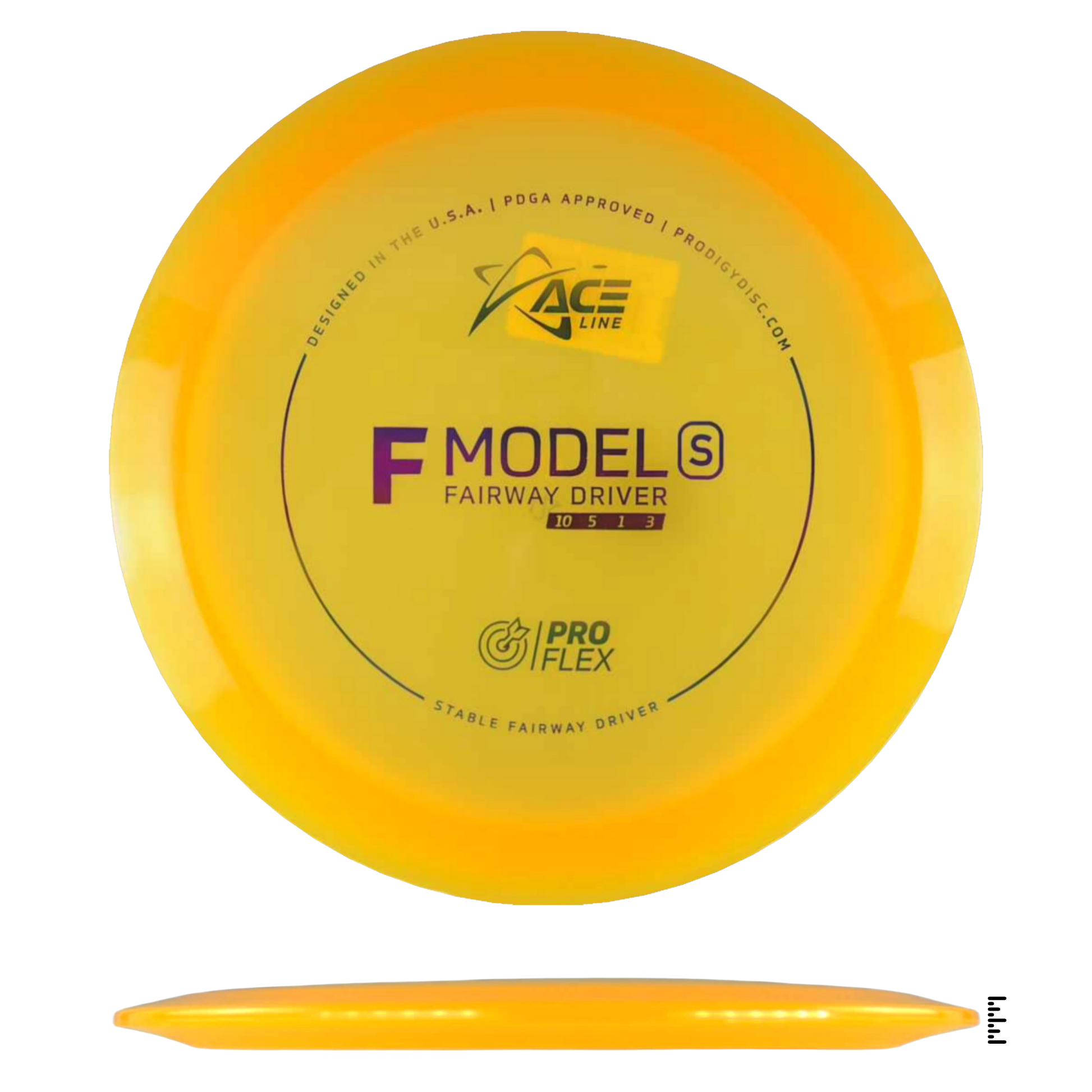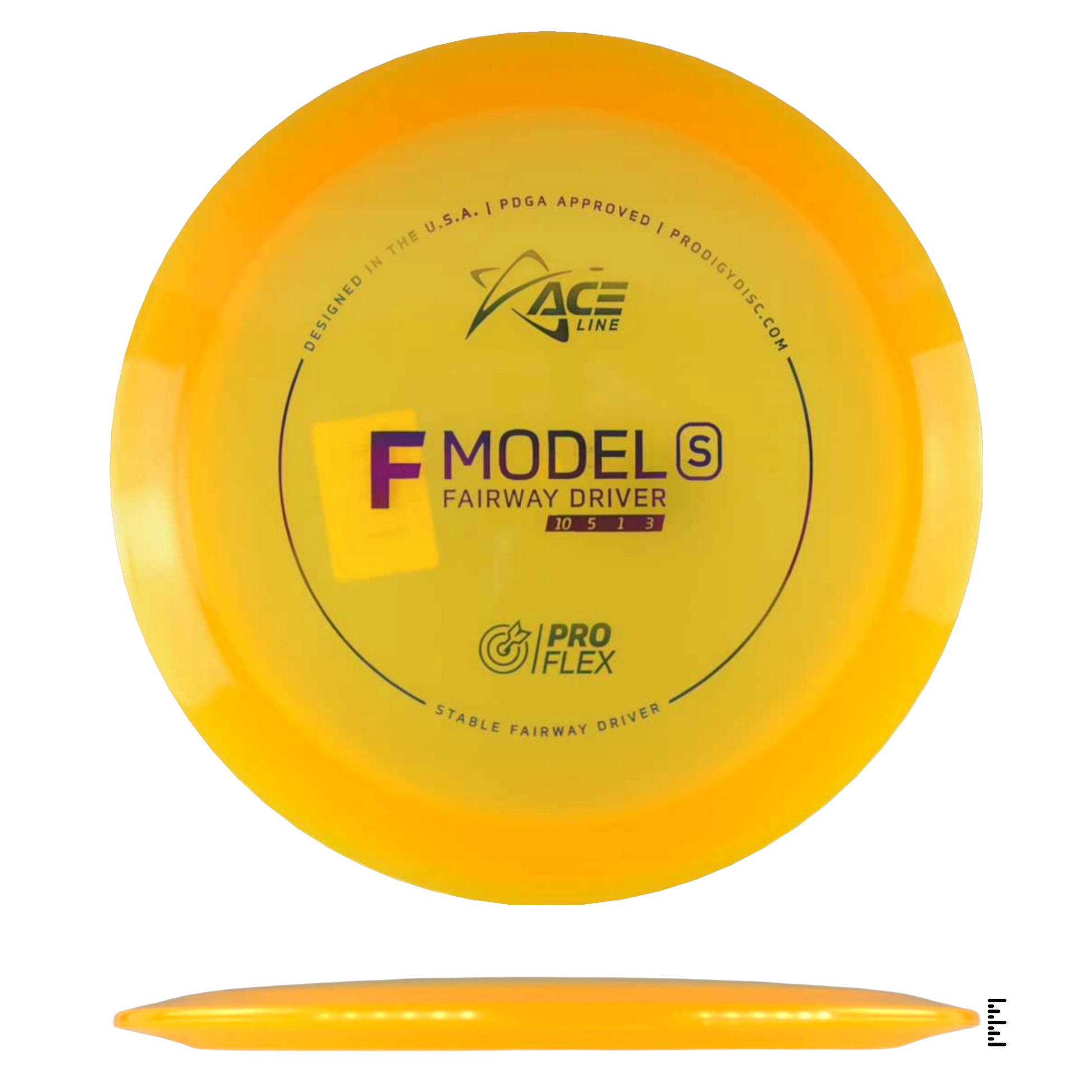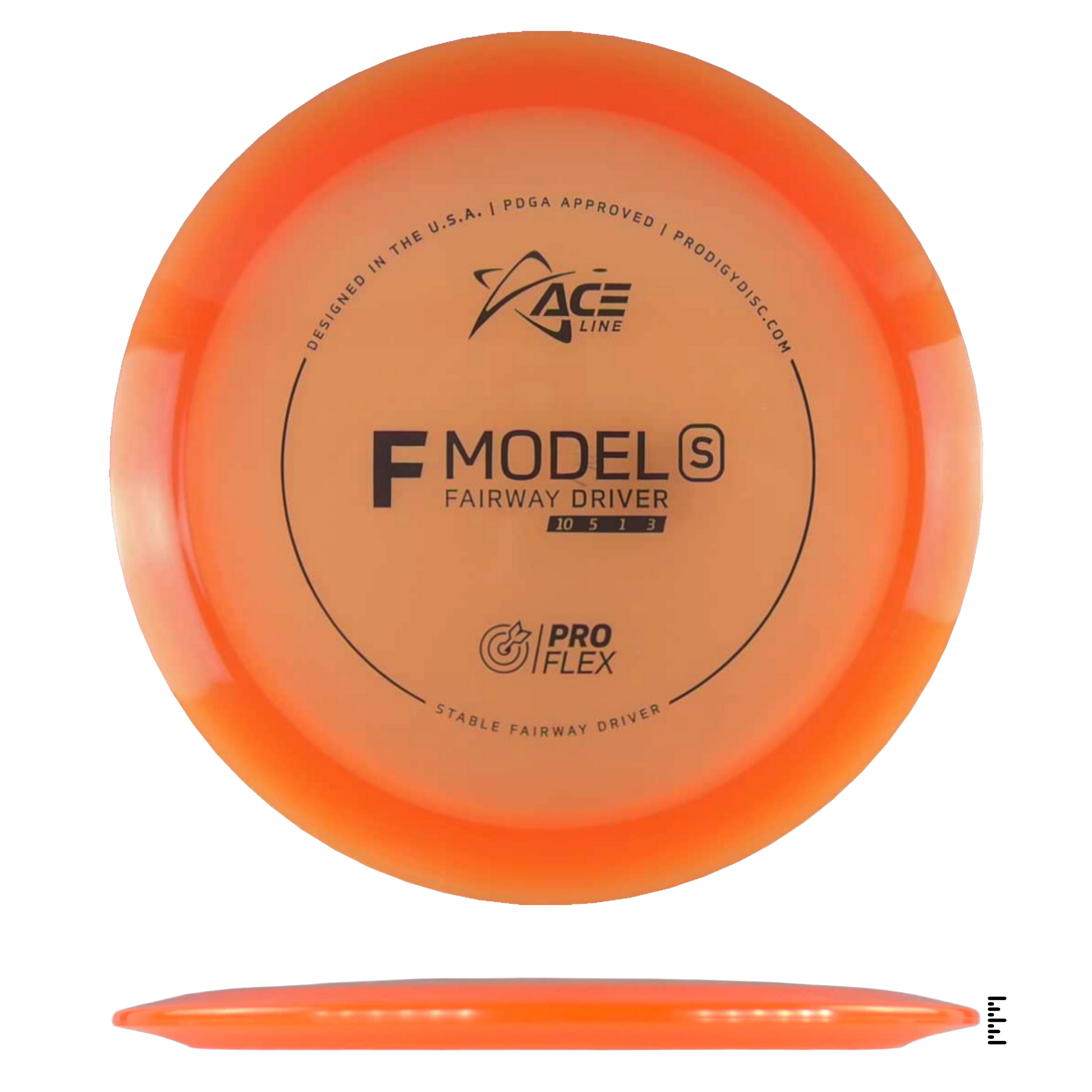 The F Model S has a stable flight and is ready to navigate any fairway with pinpoint accuracy and incredible control. This disc will be perfect for learning how to throw hyzerflip shots that fly straight as an arrow. Thrown hard with a slight hyzer angle, the disc will pop up to flat and ride straight with a mild fade. Players can also get a slight turn by throwing it flat.