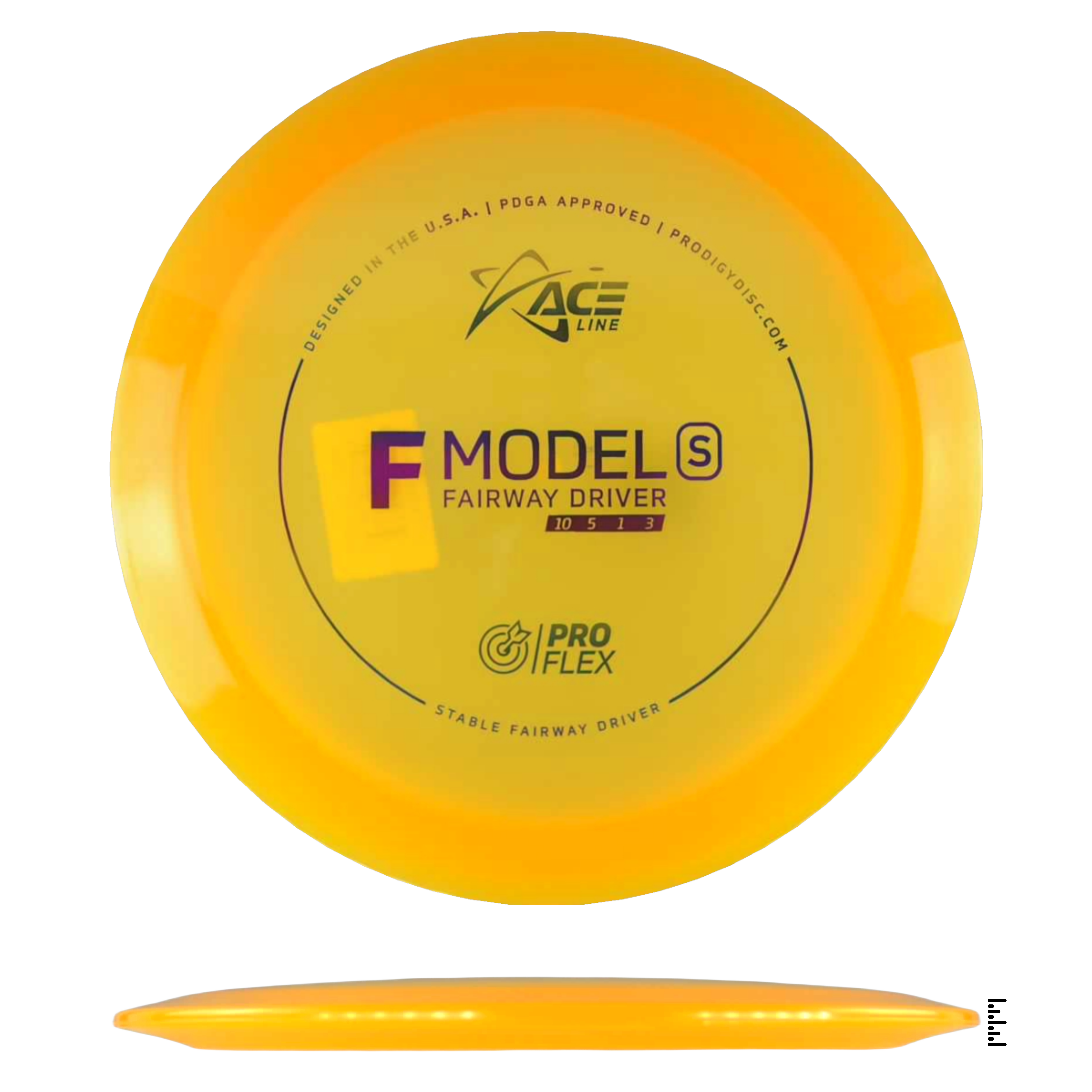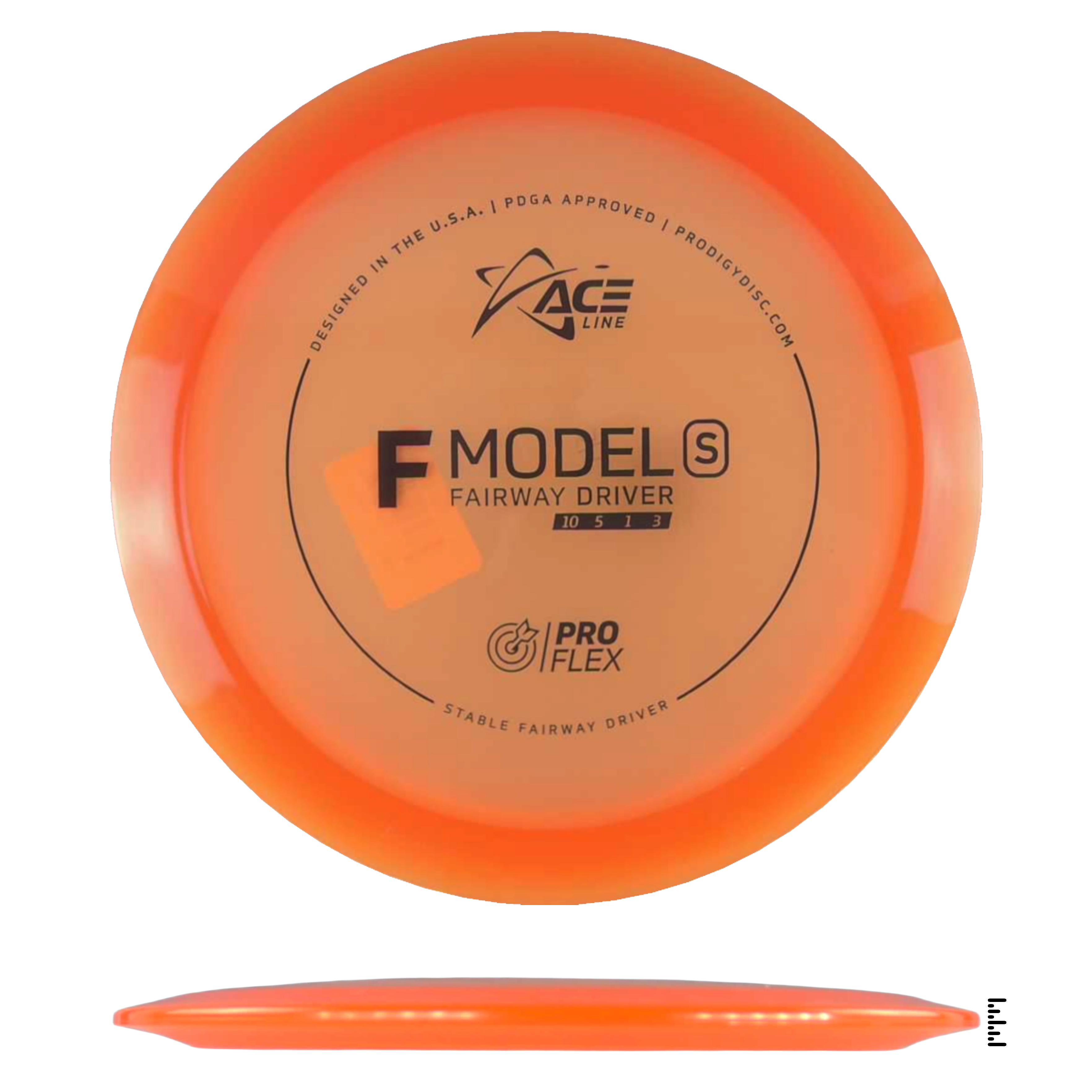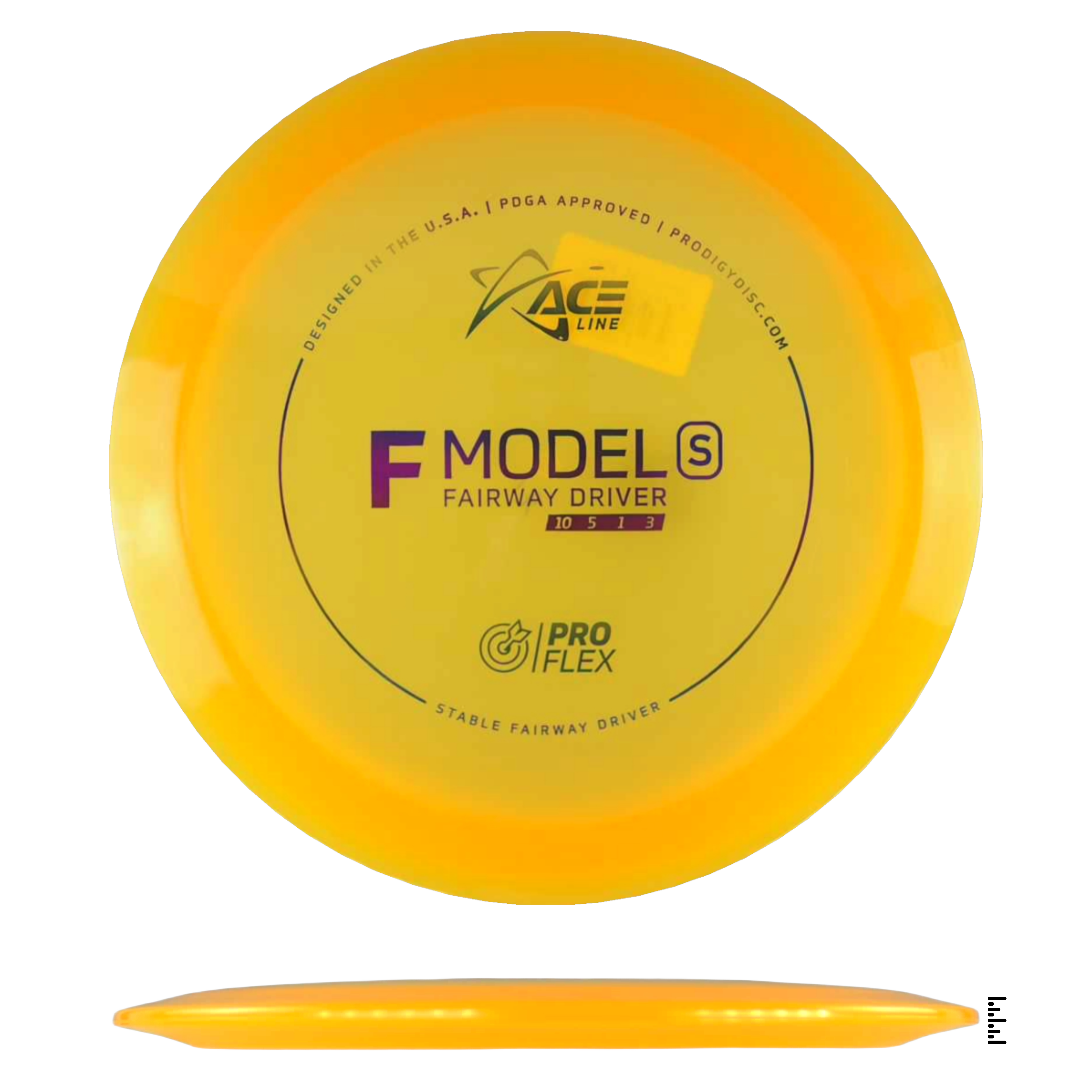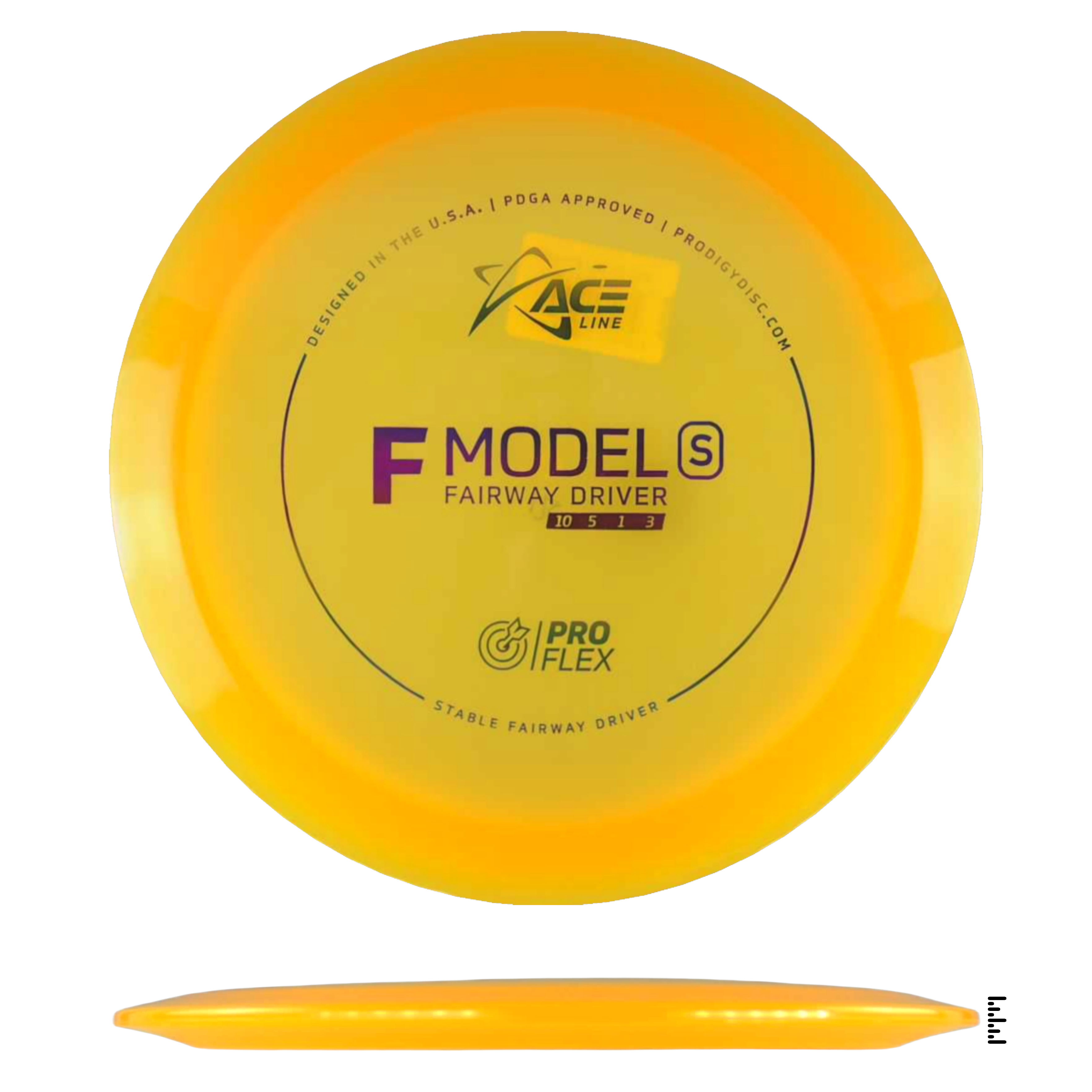The F Model S has a stable flight and is ready to navigate any fairway with pinpoint accuracy and incredible control. This disc will be perfect for learning how to throw hyzerflip shots that fly straight as an arrow. Thrown hard with a slight hyzer angle, the disc will pop up to flat and ride straight with a mild fade. Players can also get a slight turn by throwing it flat.