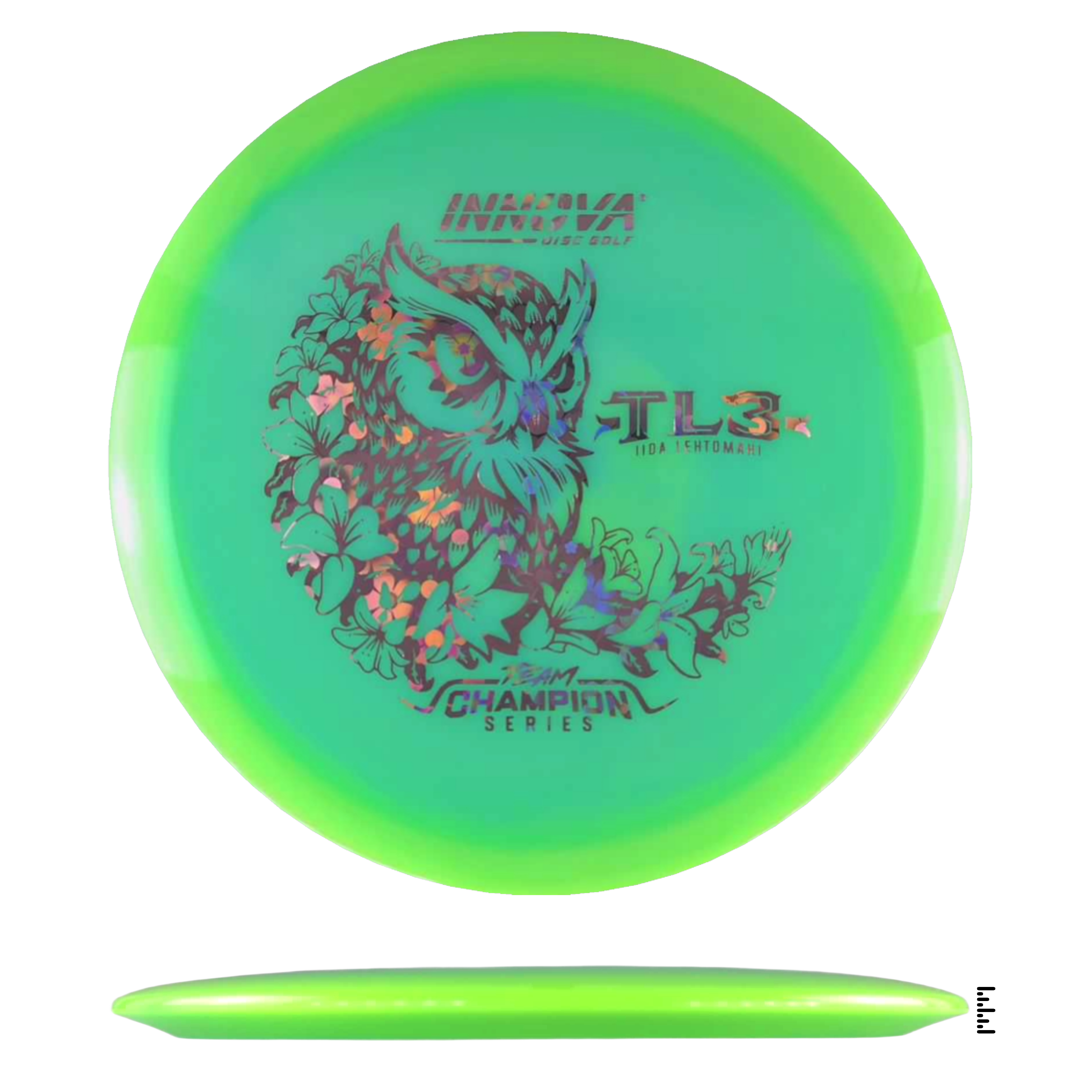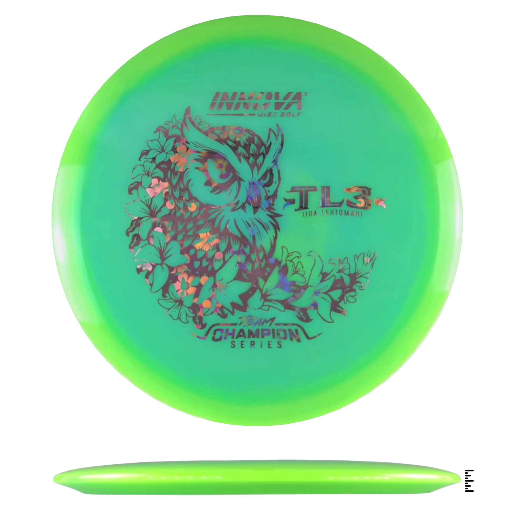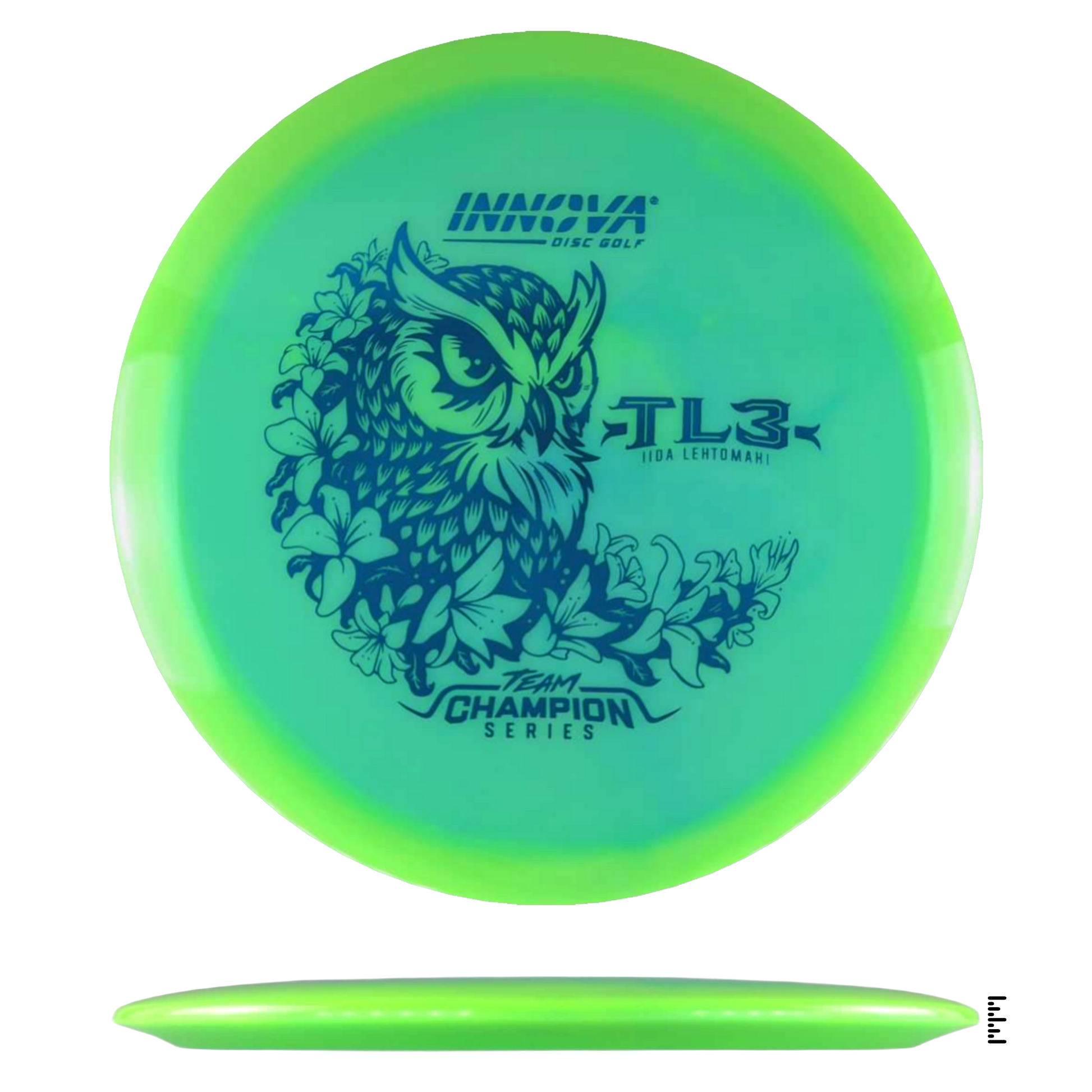 TL3 represents the evolution of the traditional and straight flying TeeBird-L, also known as TL. Like in other Innova 3-models, familiar and highly liked mold has received a new flight plate, which gives the 3-models a lower profile. Lower profile makes the disc more faster, and that’s why TL3 has a speed rating 8 instead of traditional TL’s 7. TL3 has a straight and trusty flight like TL, and it holds the release angle great. This is possibly the best, controllable, straight flying fairway driver with a minimal fade, that there is.