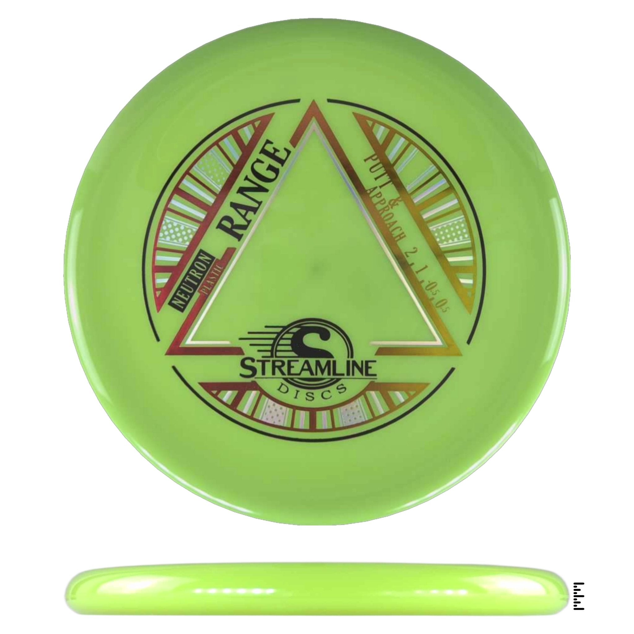 The Streamline Discs Range is officially a stock product in the Streamline lineup. With a very unique flight, the Range stands out on the course. It’s a straight-to-stable putter with just a hint of turn and a hint of fade. While it doesn’t bring any glide to the table, it does bring great accuracy.