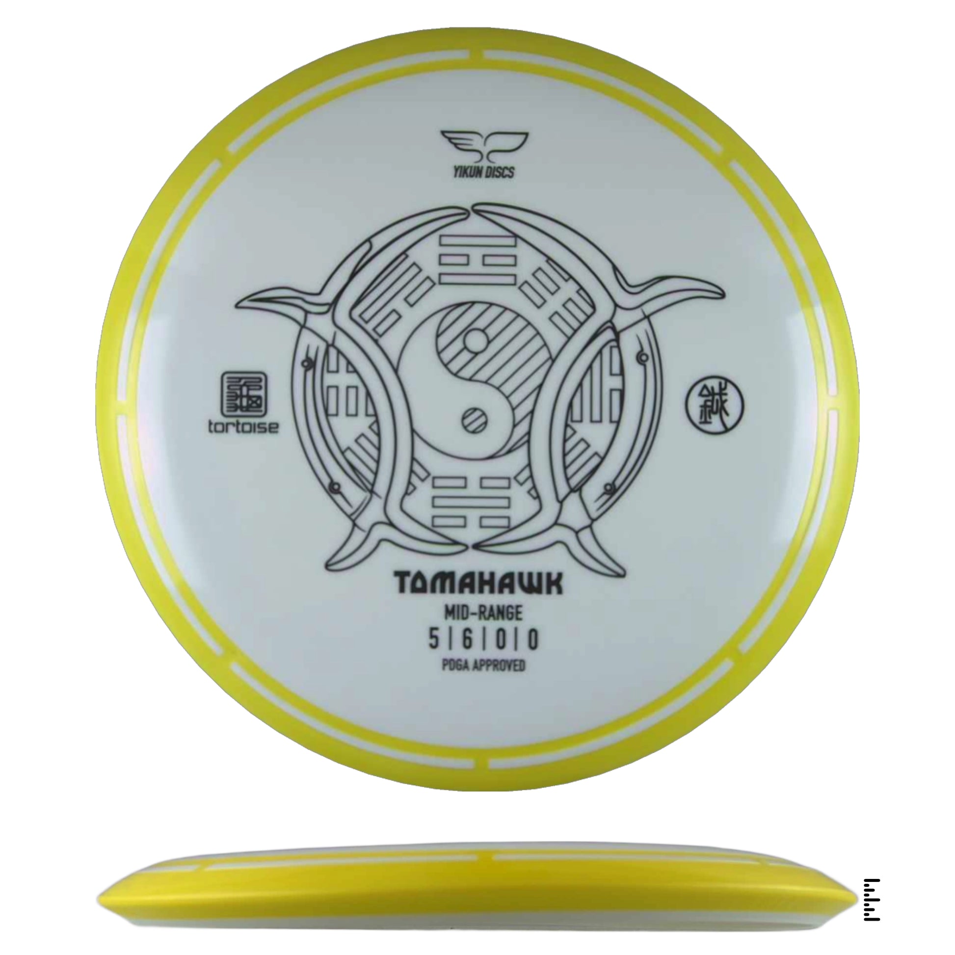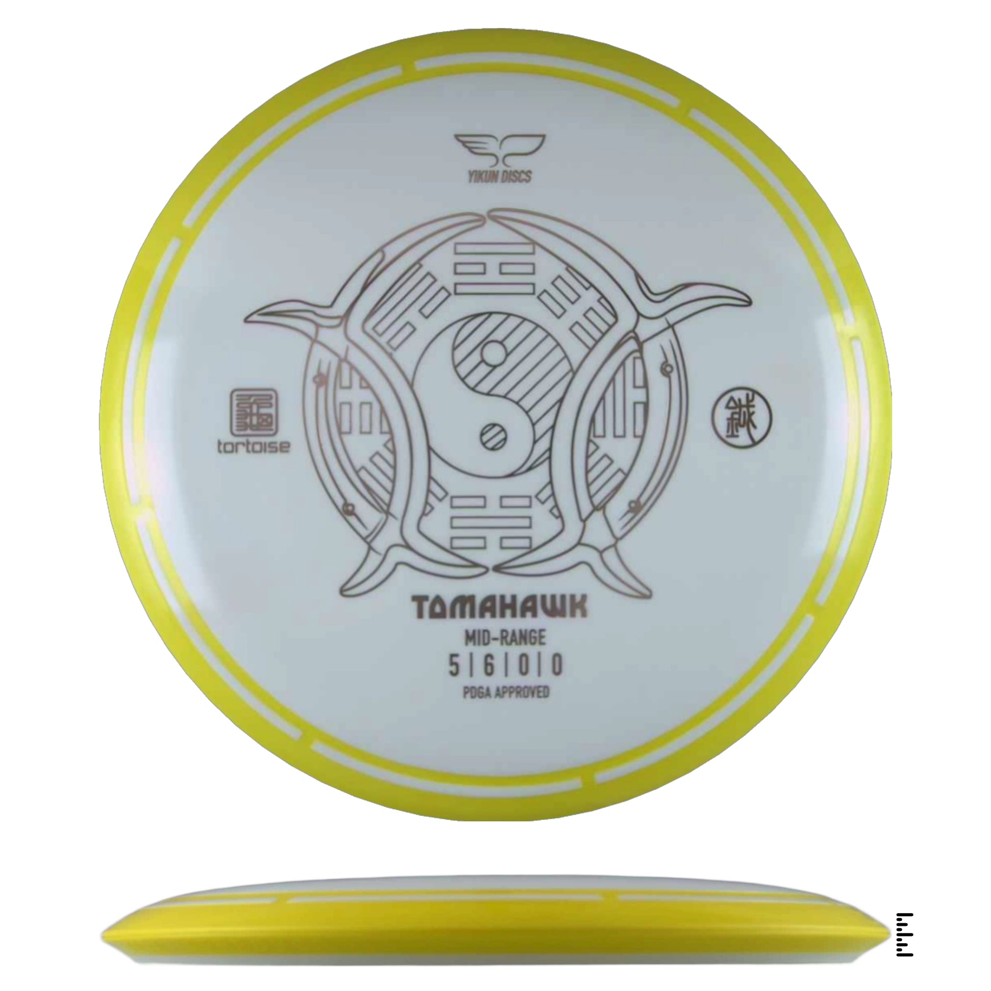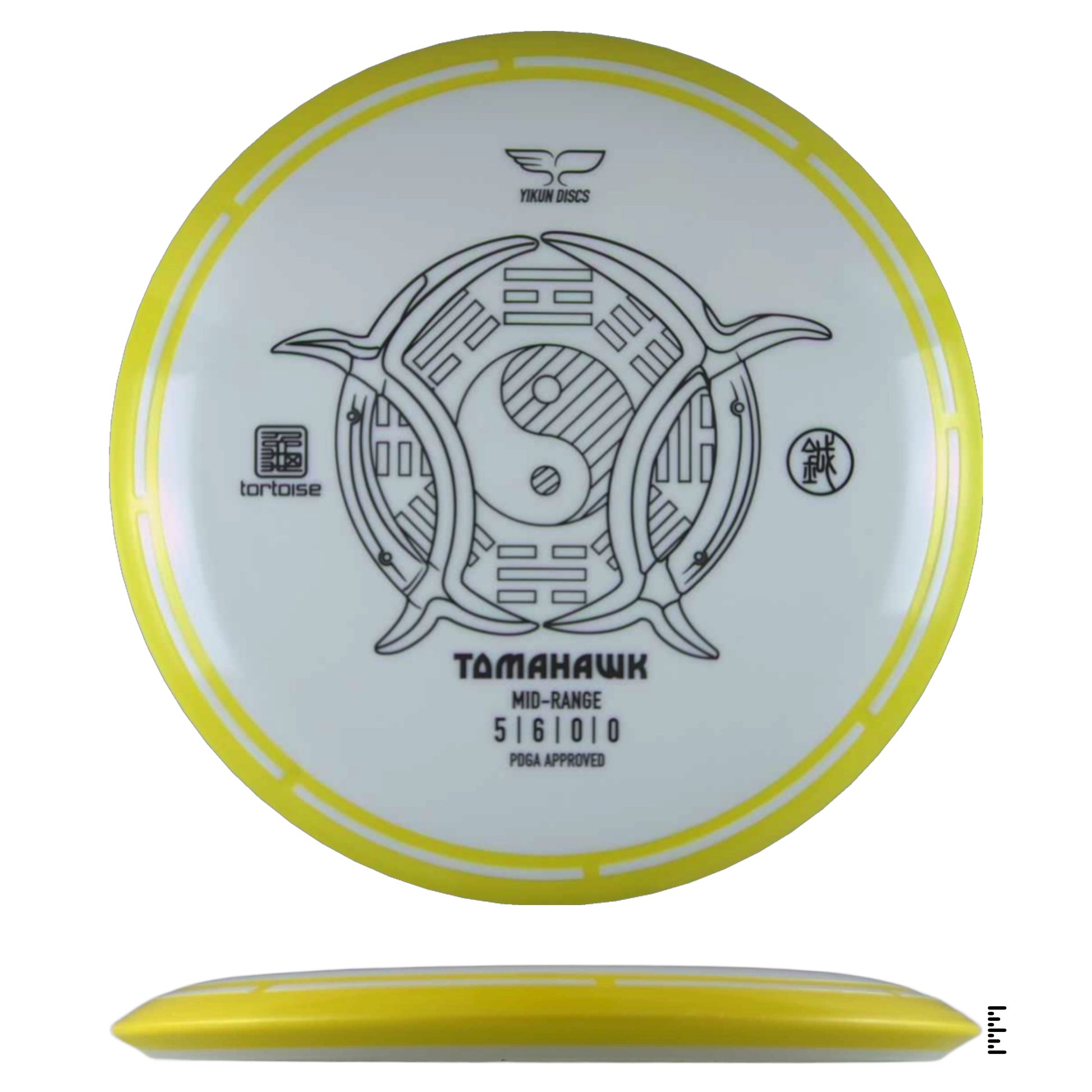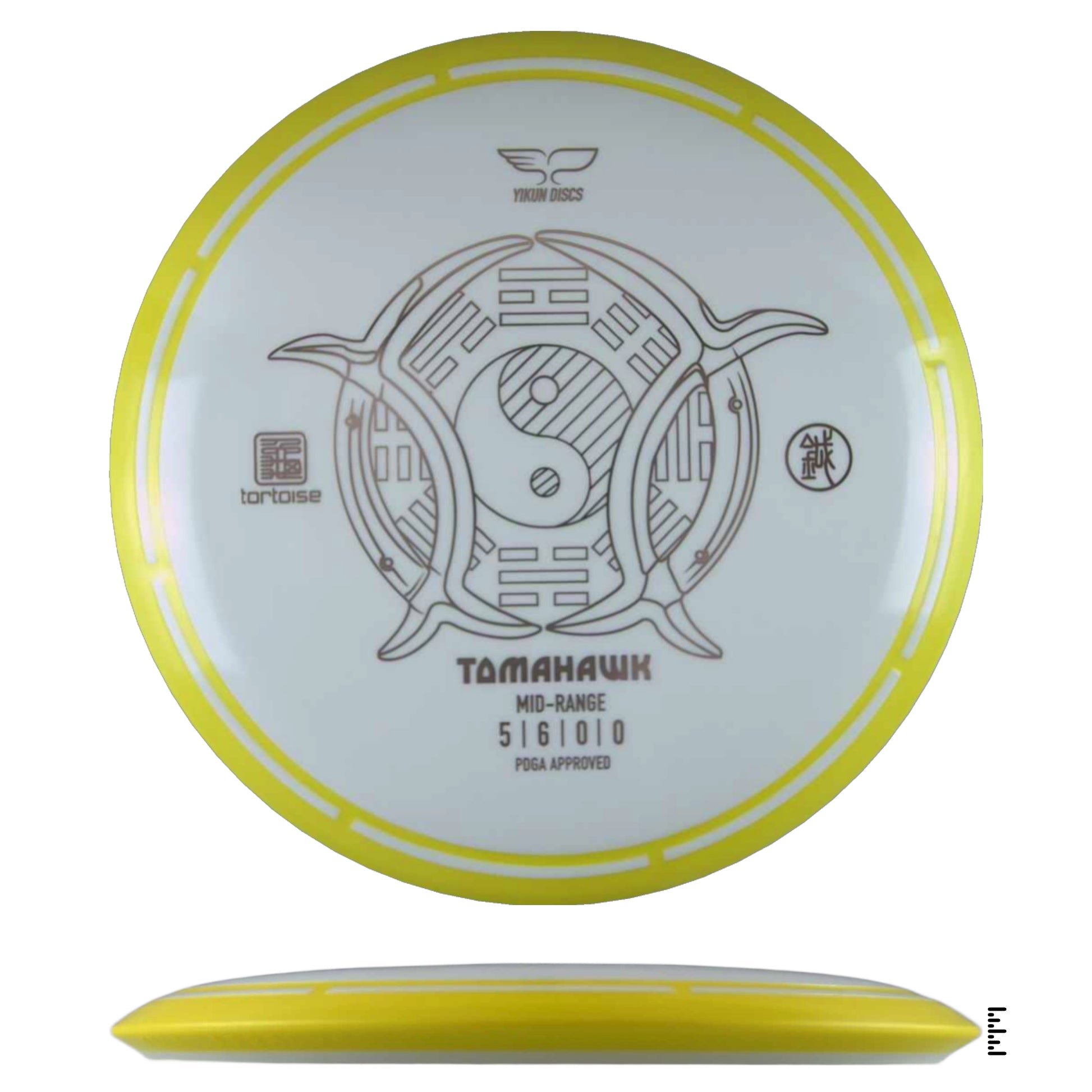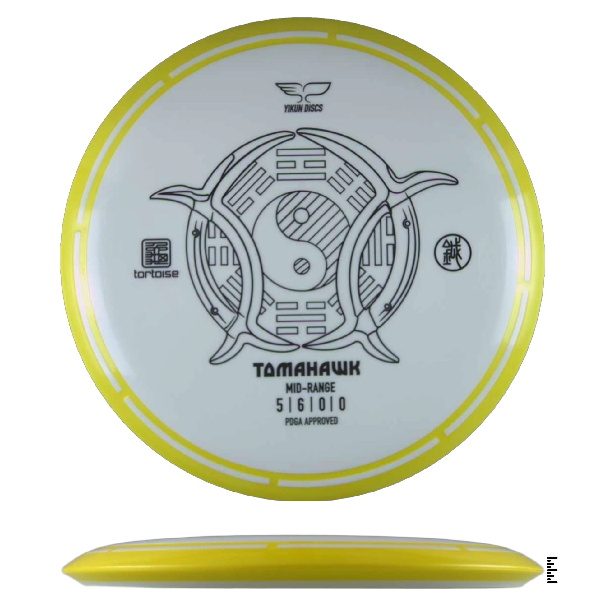A very straight flying midrange with Yikun's overmold design. Designed to be controlled in many different types of shots. At lower speeds, you'll get a smooth, straight flight. When powered up, expect a little turn and a gradual anhyzer type flight.