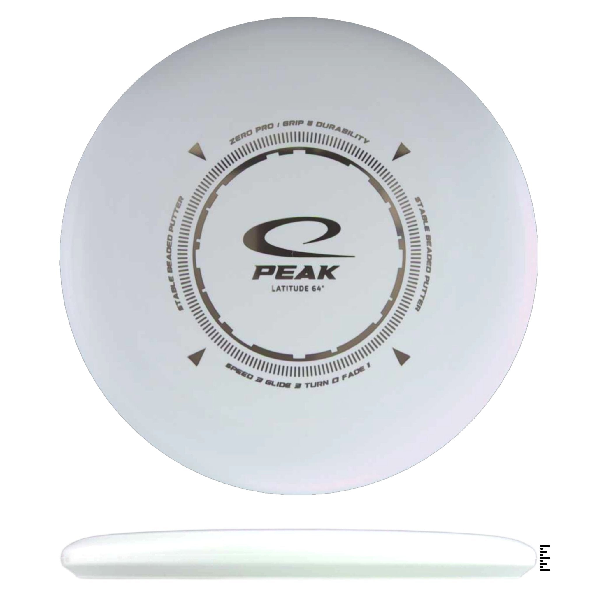 The Latitude 64 Peak is a low-profile, beaded putter that builds on top of another popular putter from Latitude 64. Taking keys from the Latitude 64 Pure, the Peak has a very similar flight, but with a small bead on the bottom of the rim. The Pure is a very popular throwing putter due to it's predictable flight, stability and finish. The Peak is designed for all the same results, but scratches the itch for those who like a beaded putter.